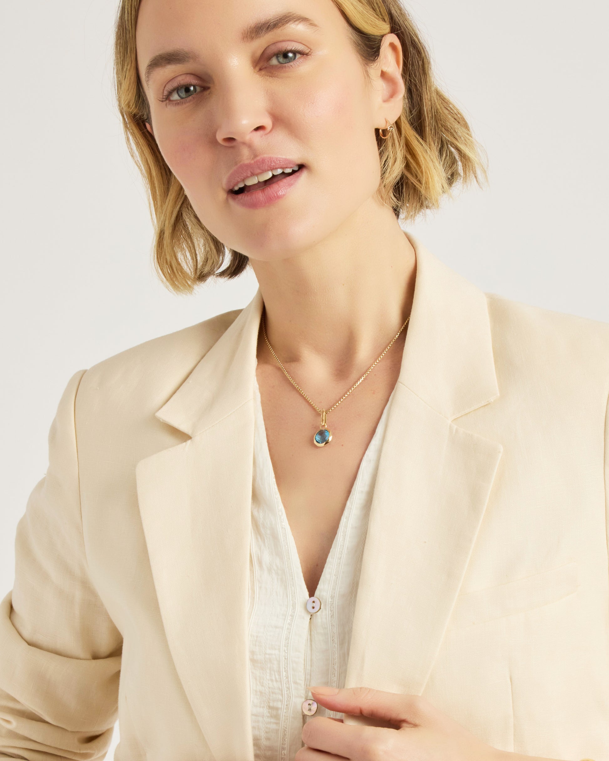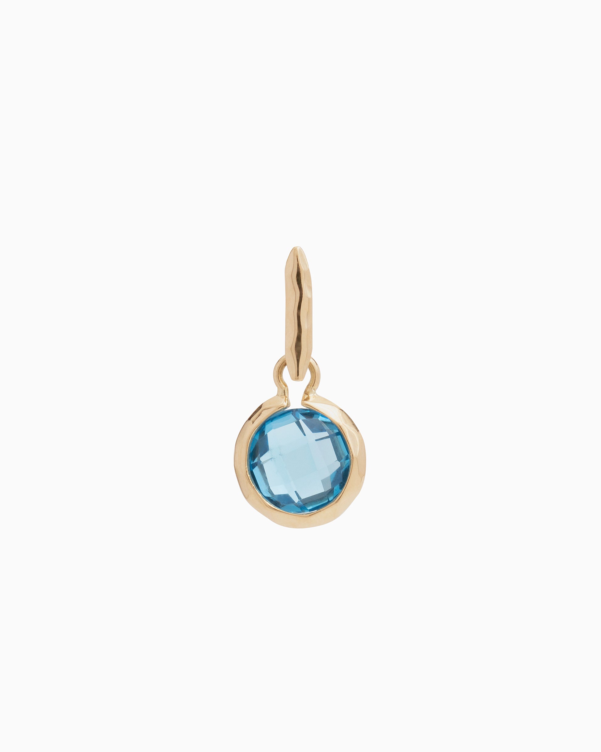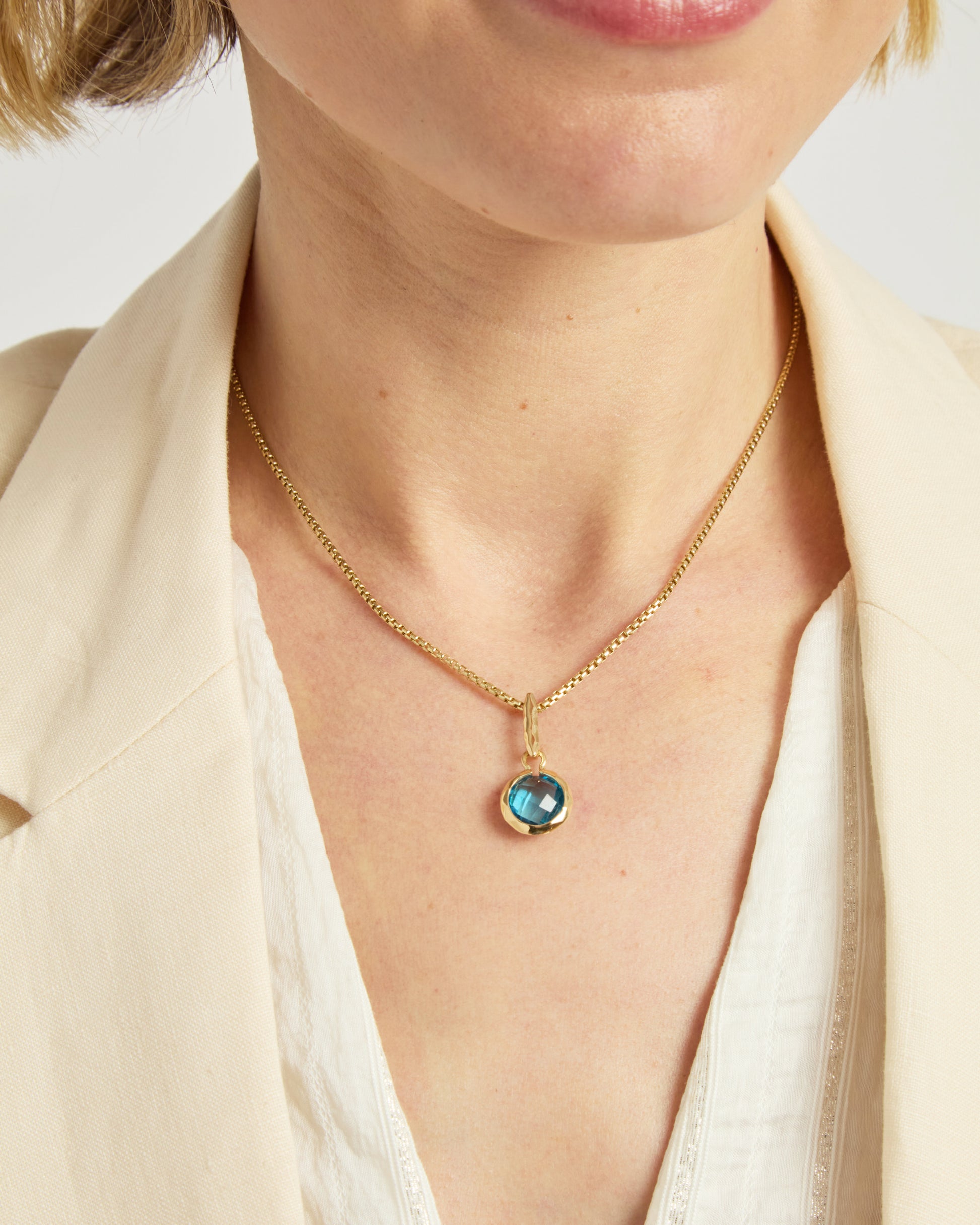 This simple yet stylish Circle Stone Pendant features 14K solid gold encompassing a faceted circle Hampton blue topaz stone visible from both sides of the pendant. This piece is the perfect addition to your everyday jewelry collection. Wear this style alone for a sophisticated look or stack with others to create a statement look. Pair with your favorite chain, sold separately.