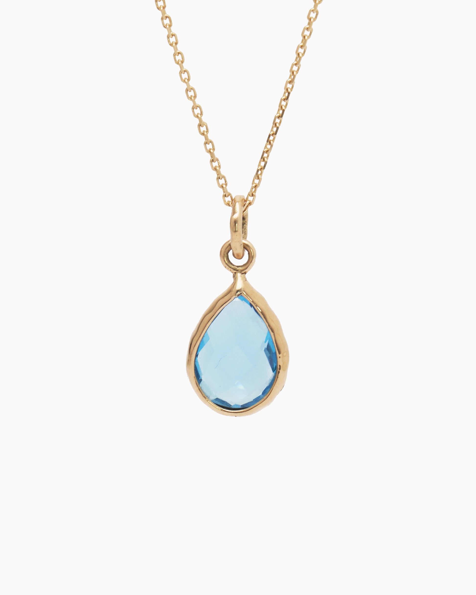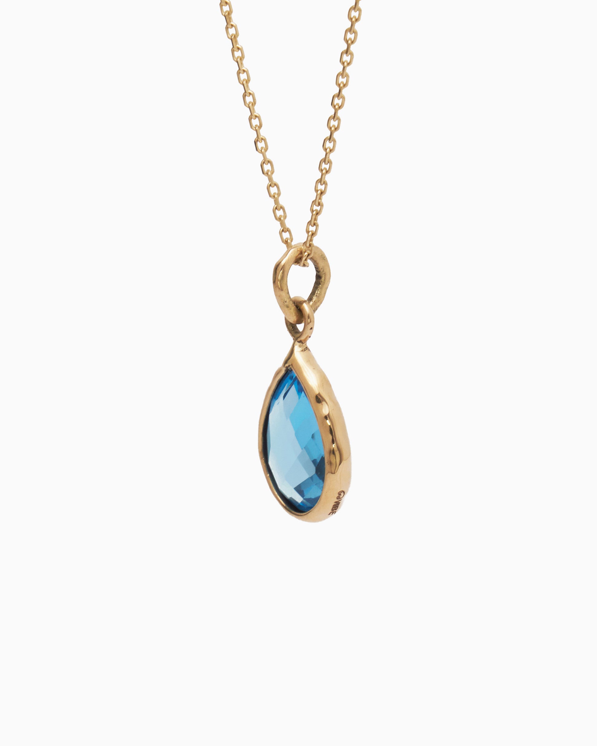 The Dewdrop Pendant boasts a distinctively timeless design, featuring a pear-shaped Hampton blue topaz stone cradled in 14K solid gold. Whether worn on its own for understated elegance or paired with a pair of Dewdrop Stone Earrings for a coordinated look, this pendant adds a touch of sophistication to any outfit.