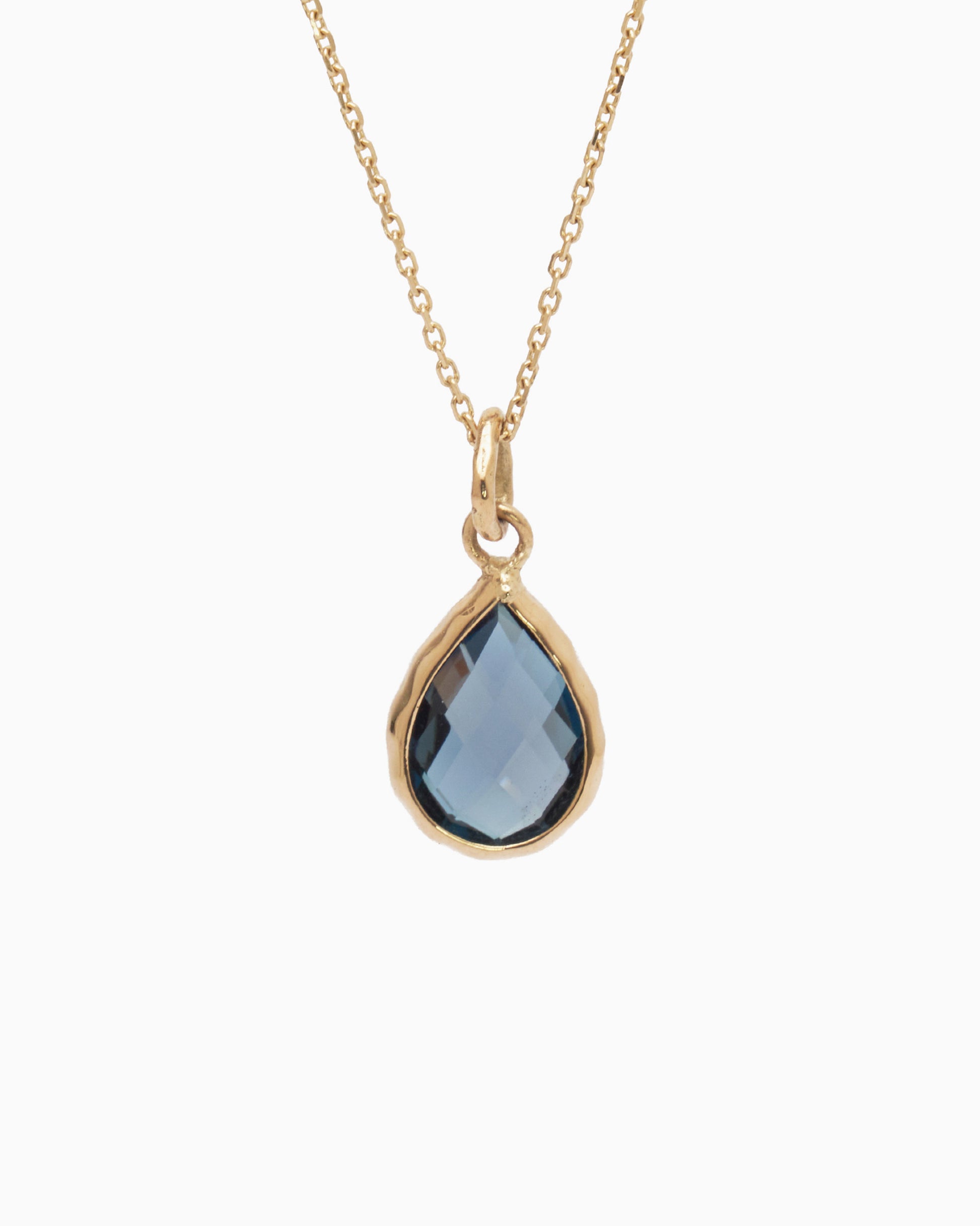 The Dewdrop Pendant boasts a distinctively timeless design, featuring a pear-shaped London blue topaz stone cradled in 14K solid gold. Whether worn on its own for understated elegance or paired with a pair of Dewdrop Stone Earrings for a coordinated look, this pendant adds a touch of sophistication to any outfit.