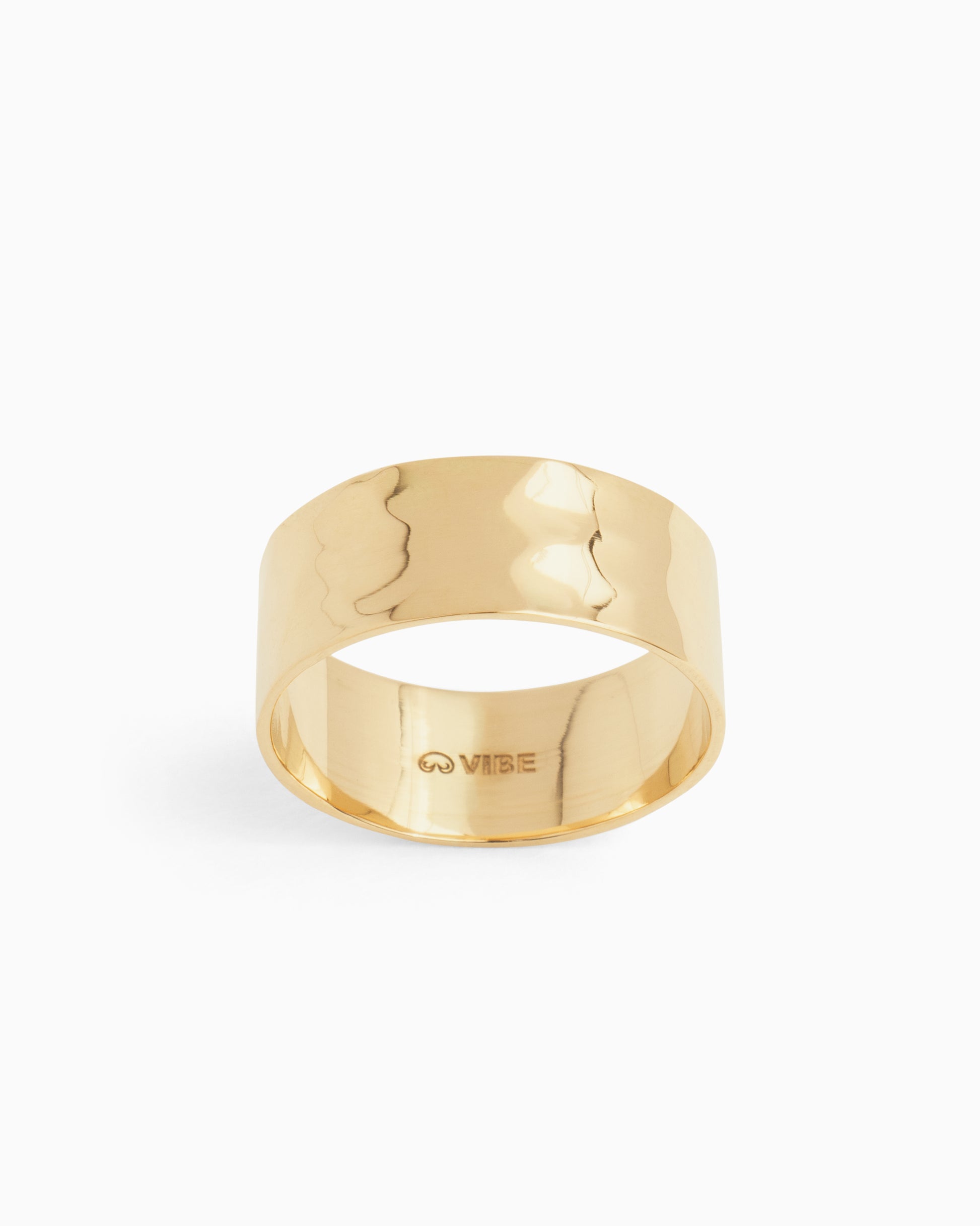 The Hammered Band Ring is a classic, minimal design crafted in solid 14K gold with a smooth, fluid surface and soft hammered texture. Polished to a bold shine, this versatile ring is perfect worn solo, stacked, or even as a modern wedding band. A timeless staple that speaks to Vibe’s signature balance of elegance and ease.