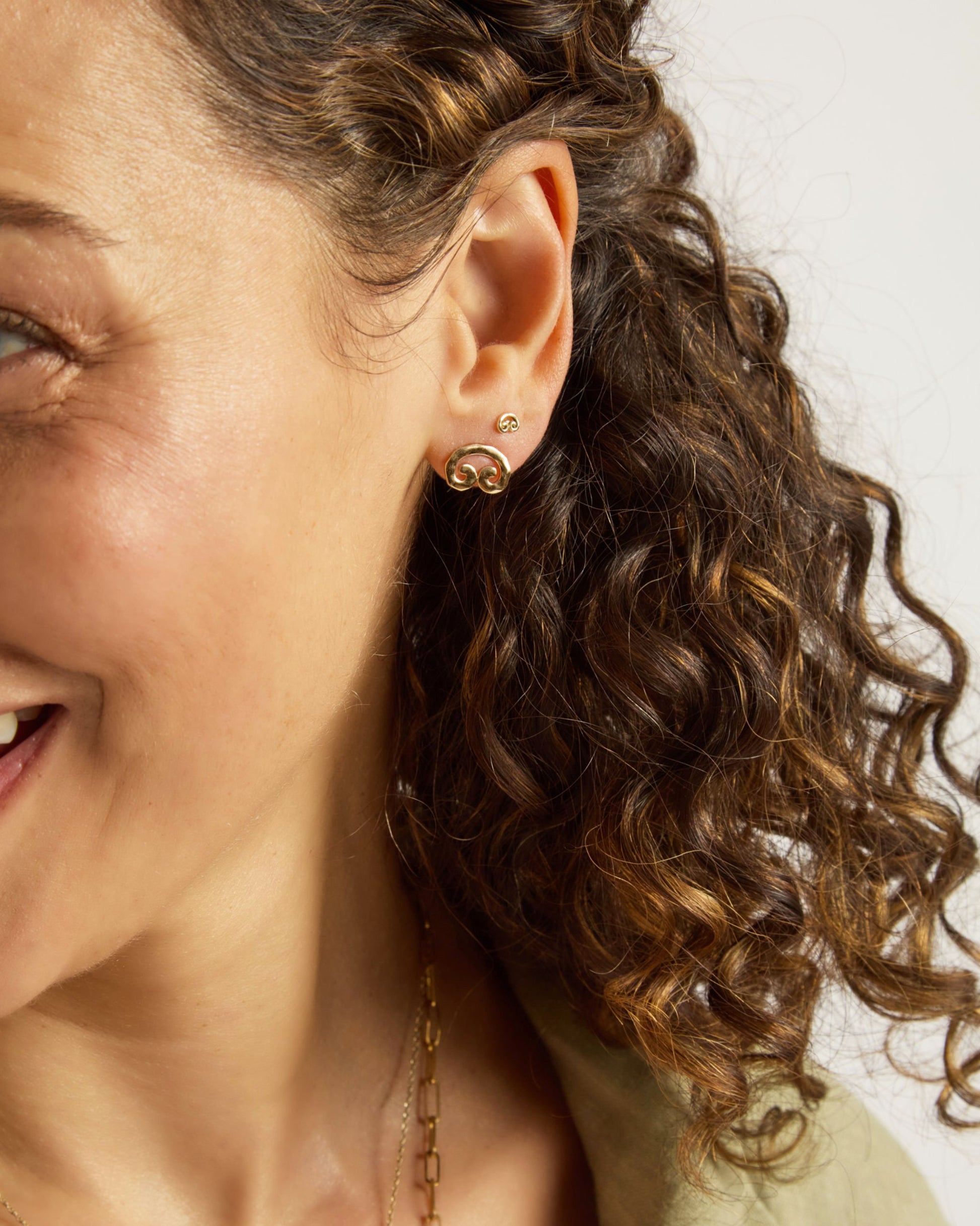 Vibe's simple, handcrafted 14K solid gold St. John Petroglyph Studs highlight the most well-known Taino Indian tribe carving, which, archaeologists tell us, is exclusive to St. John. St. Johnians and visitors, from around the world, will recognize this design immediately and know the history behind it. Available in four sizes.