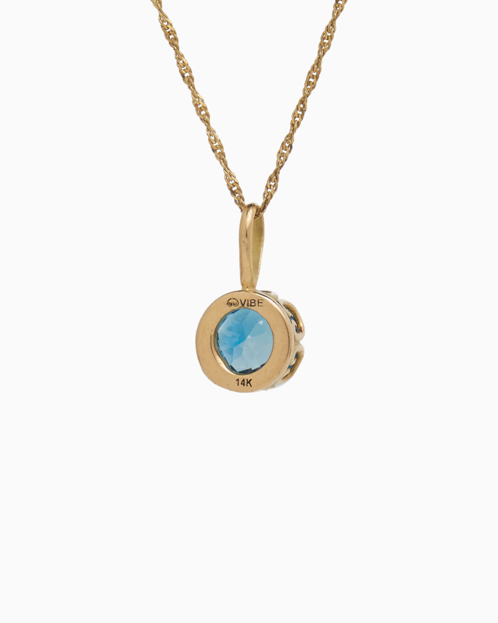 Crafted in 14K solid gold, the Princess Petroglyph Stone Pendant features a faceted London blue topaz stone encircled by intricate petroglyphs. Its unique design adds a touch of elegance to any outfit, and pairs wonderfully with our Princess Petroglyph Stone Studs.
