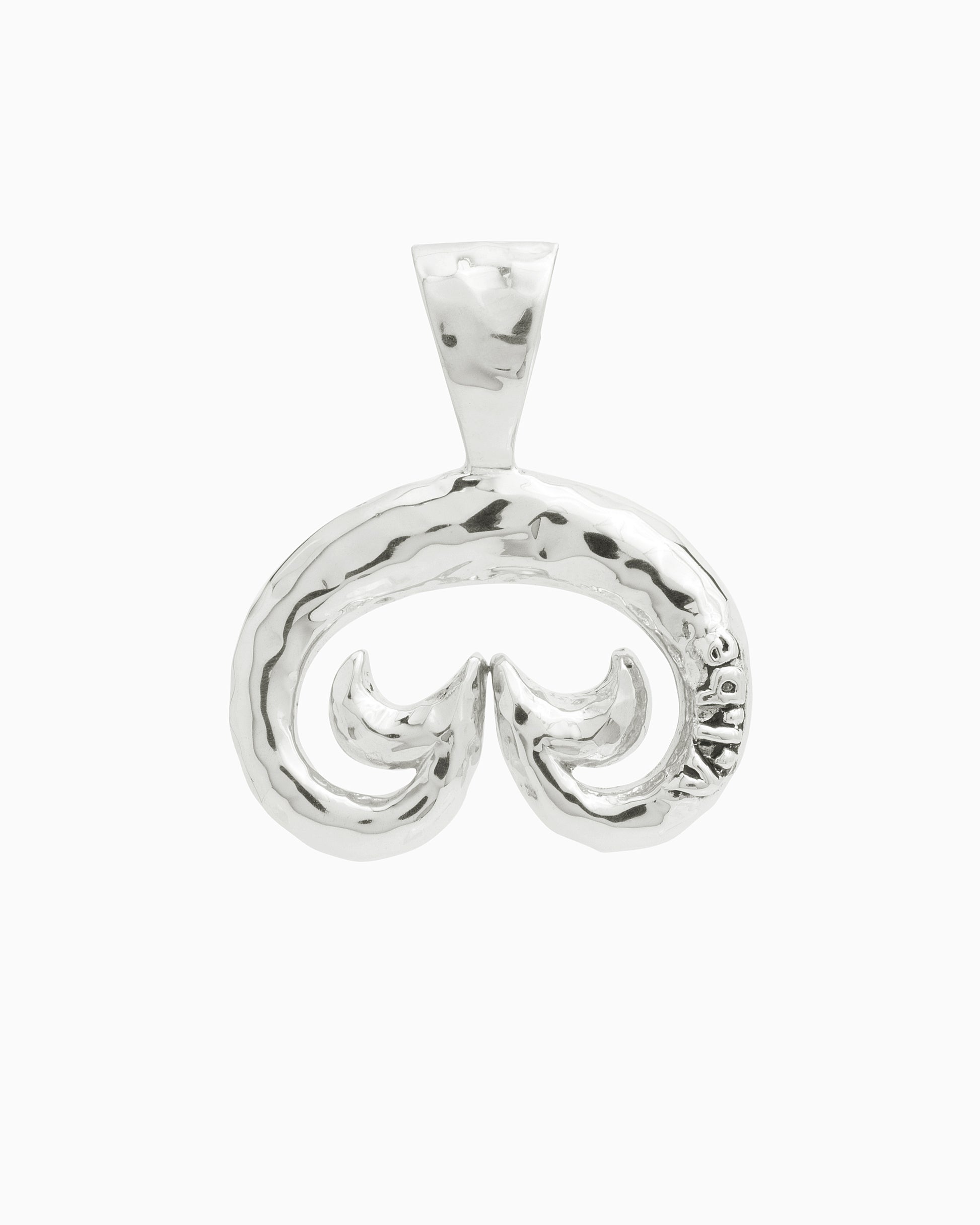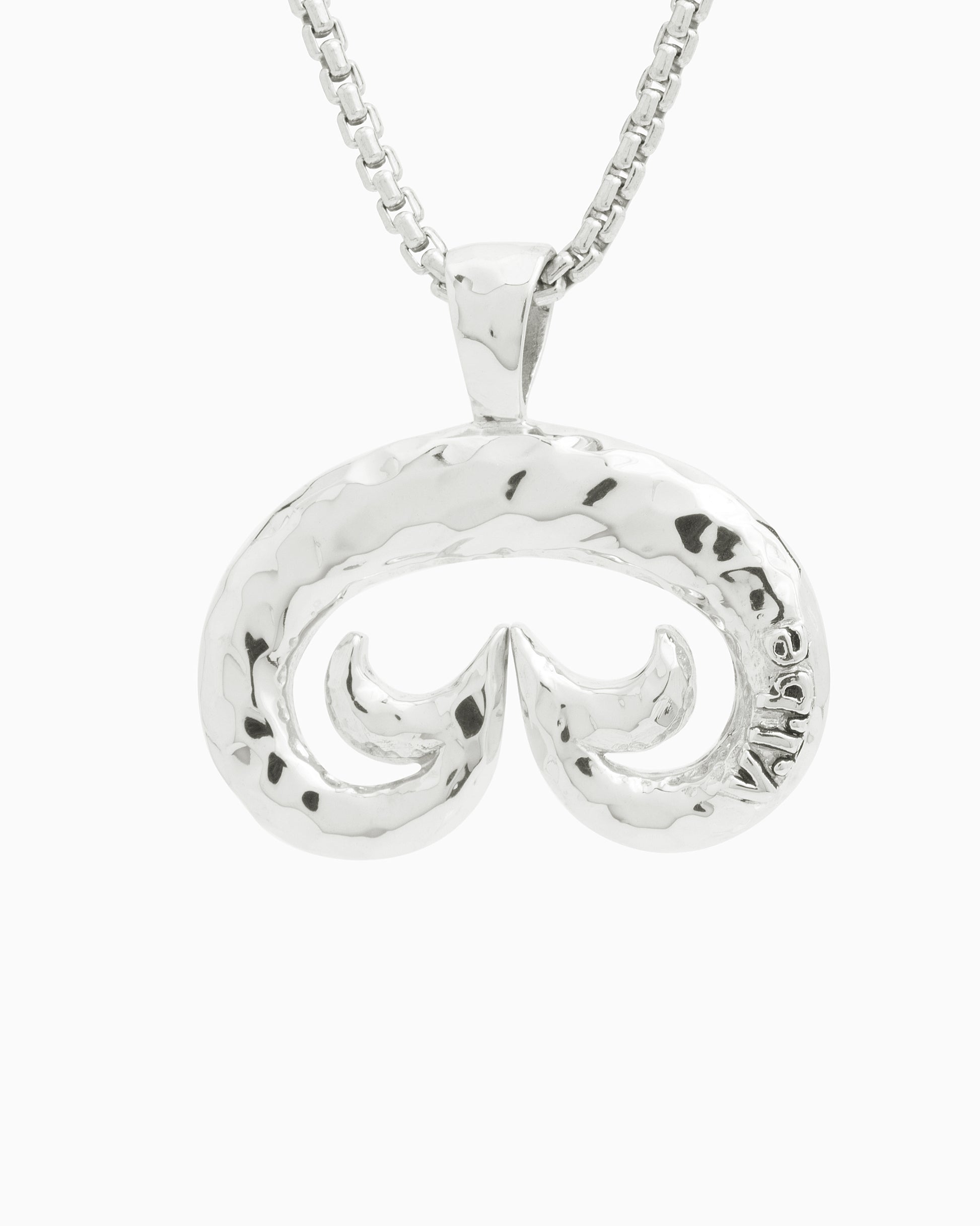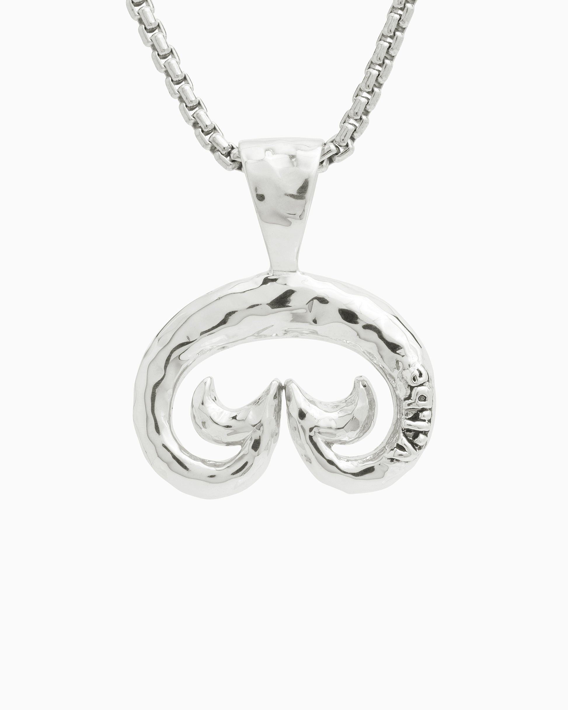 The Hammered Petroglyph Pendant is handcrafted in sterling silver and proudly showcases the symbolic island petroglyph with its surface delicately hammered to evoke the tranquil rhythm of ocean currents. Pair with your favorite chain, sold separately.