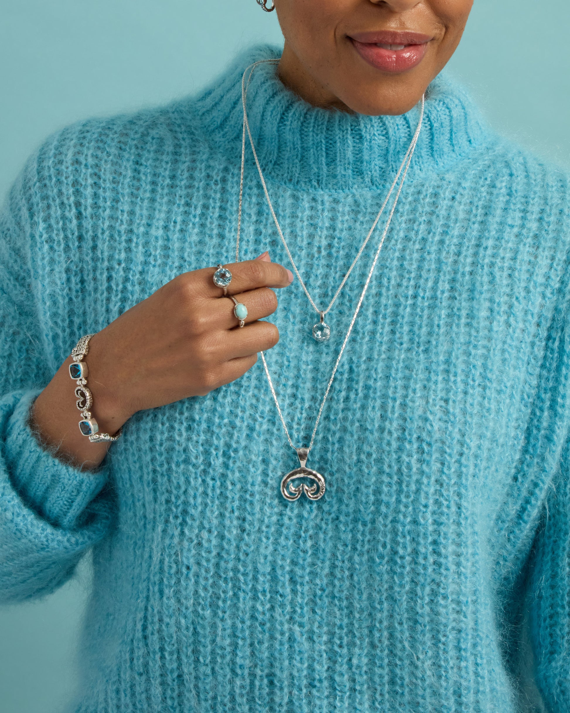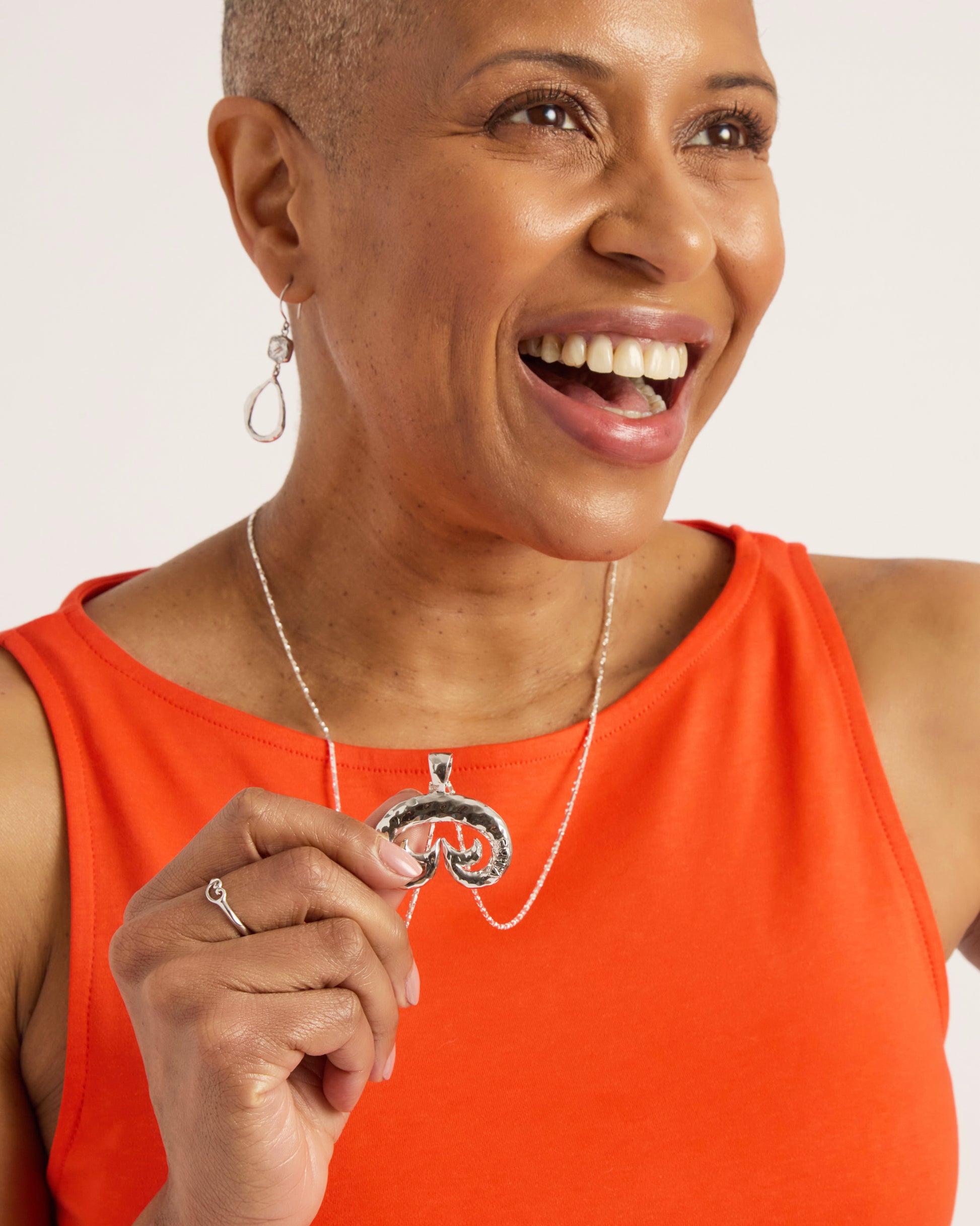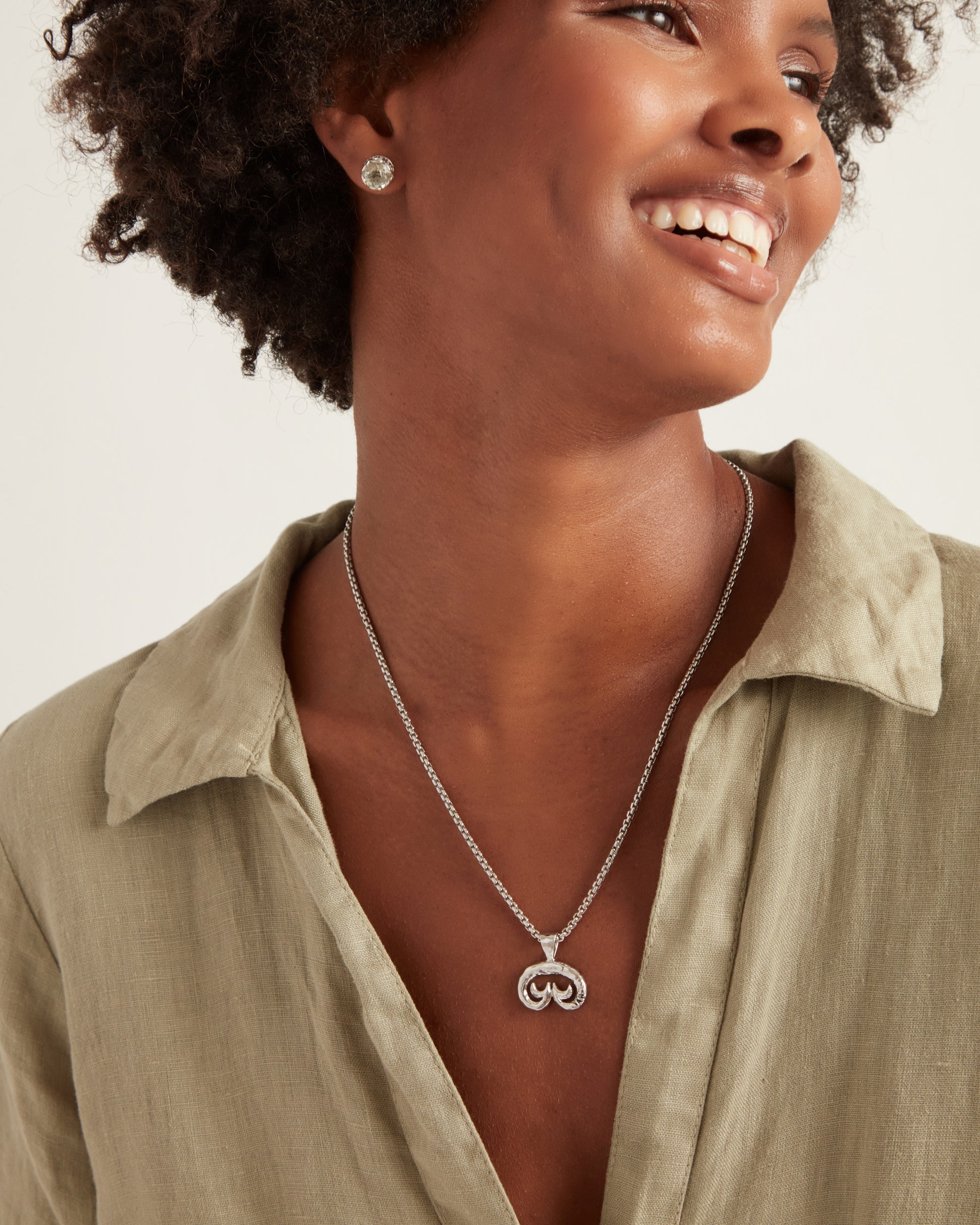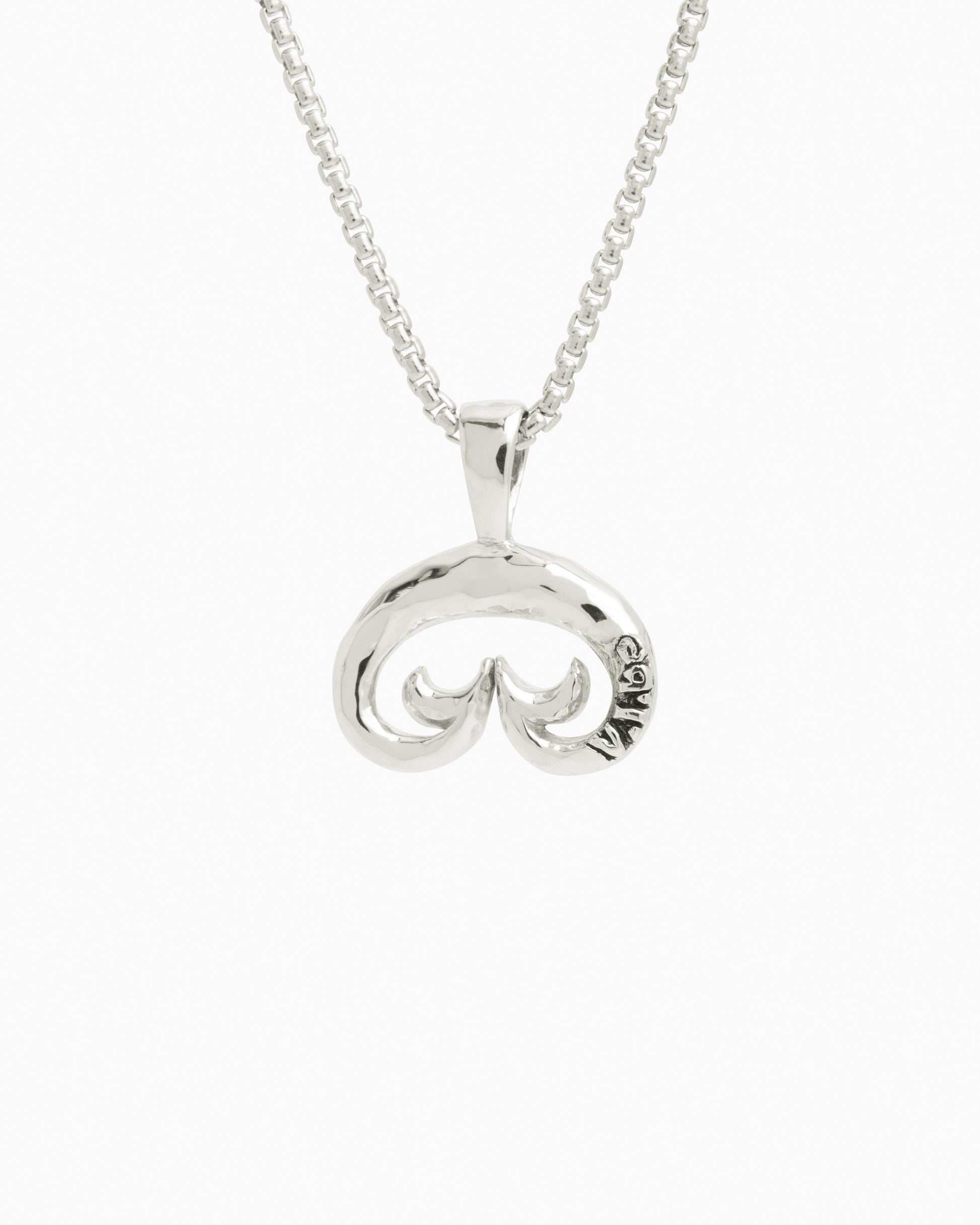 The Hammered Petroglyph Pendant is handcrafted in sterling silver and proudly showcases the symbolic island petroglyph with its surface delicately hammered to evoke the tranquil rhythm of ocean currents. Pair with your favorite chain, sold separately.