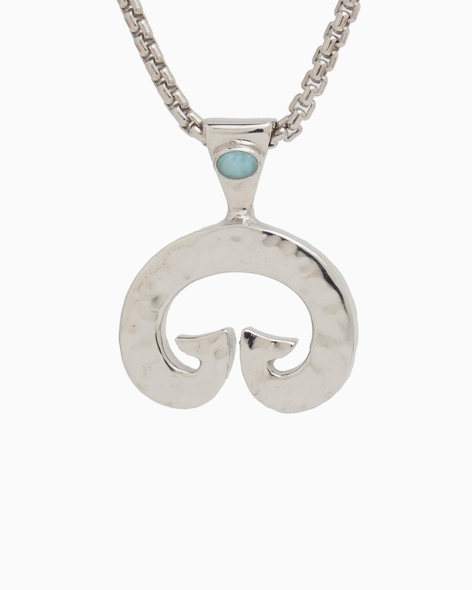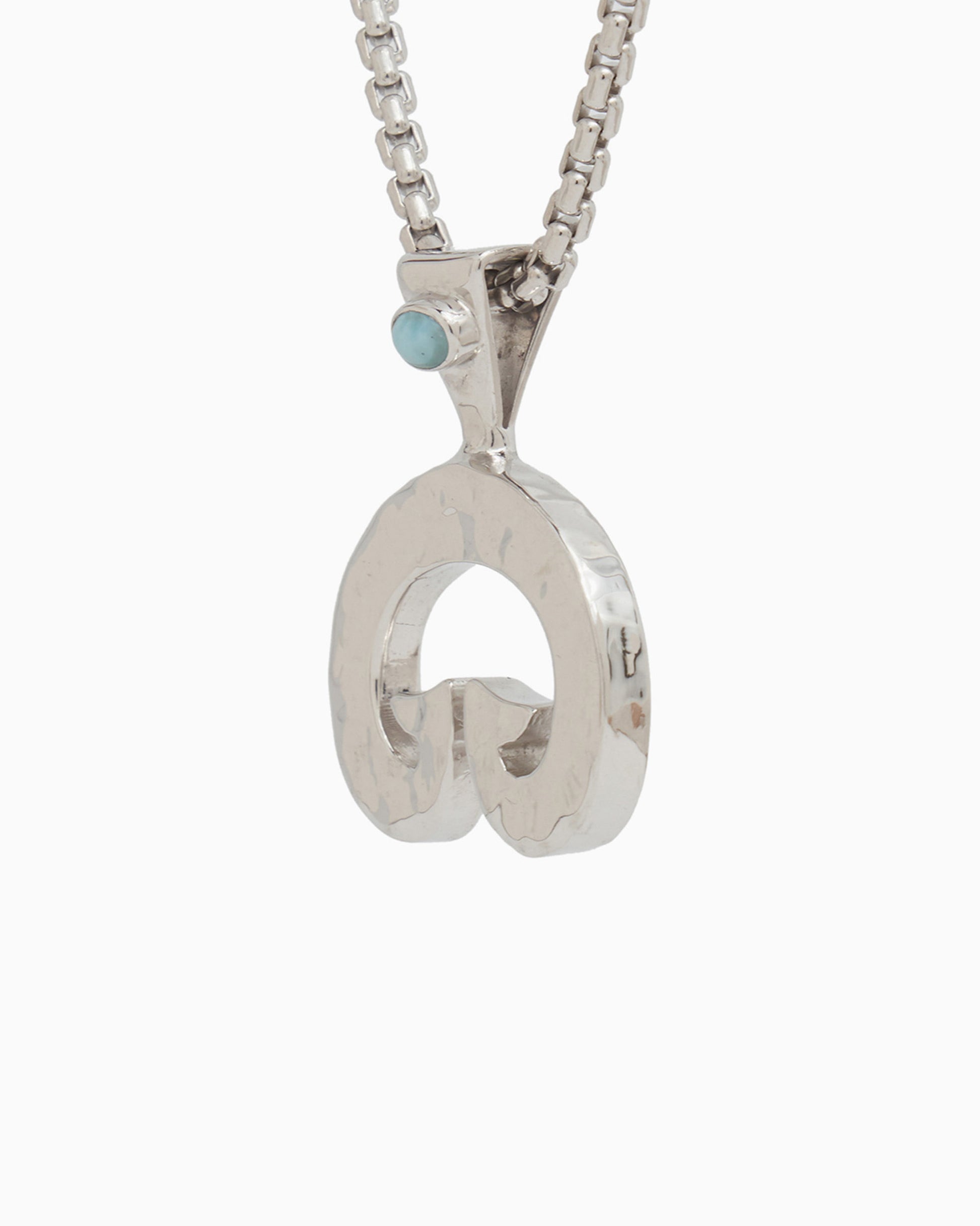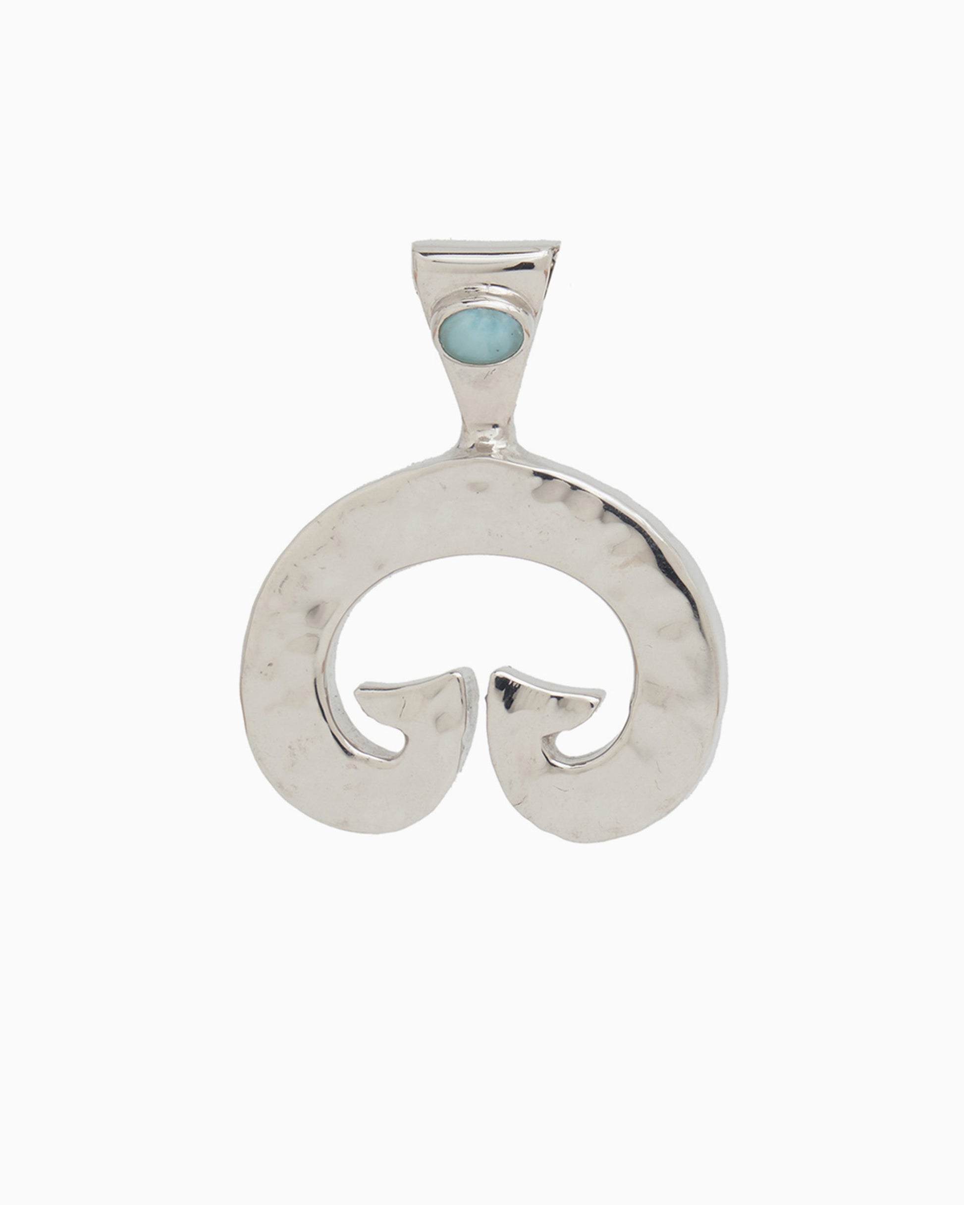 The Hammered Petroglyph Pendant is the perfect addition to your collection, making a bold statement. Handcrafted in gently hammered sterling silver, the petroglyph features an oval larimar cabochon on the bail of the pendant. Pair with your favorite chain, sold separately.