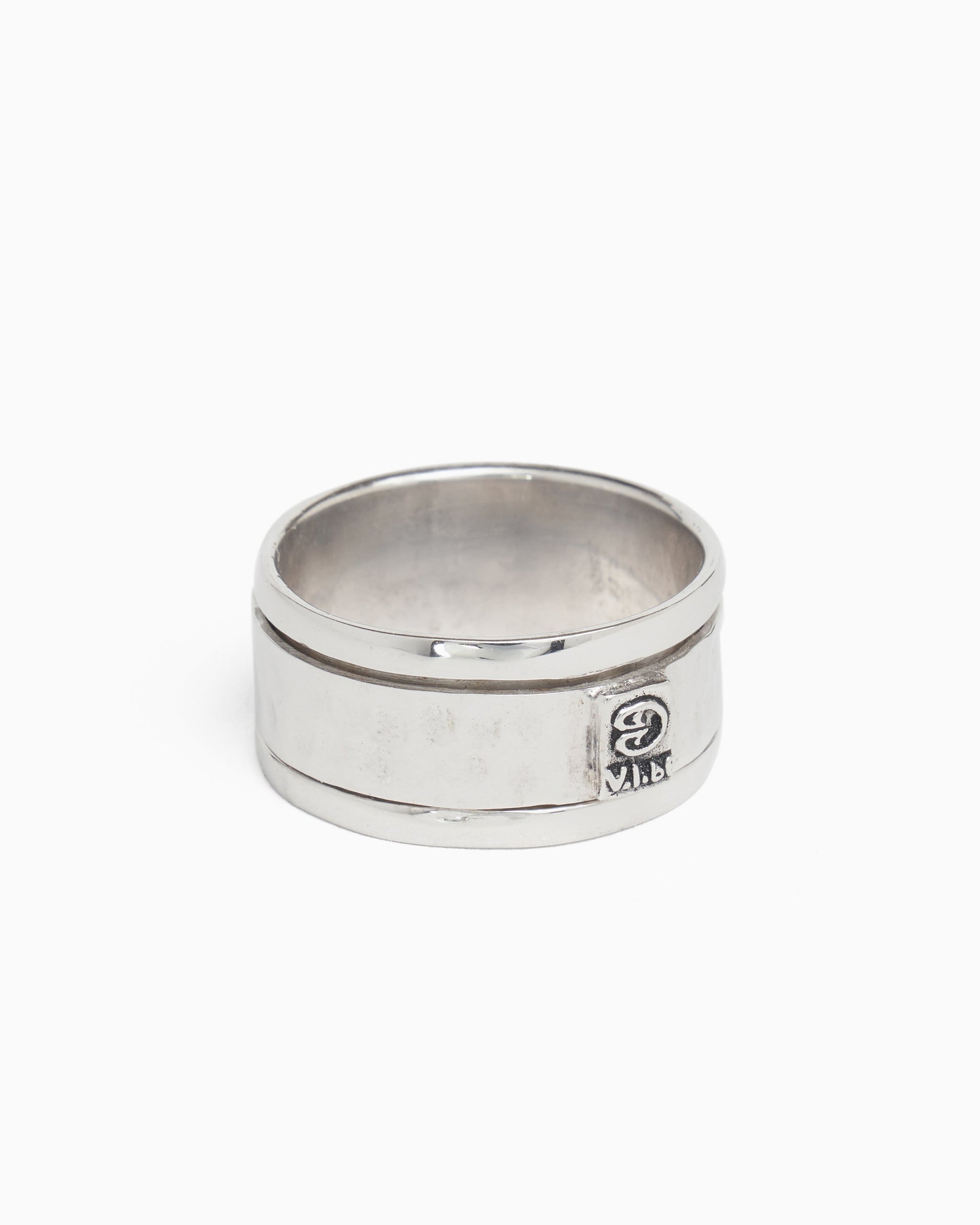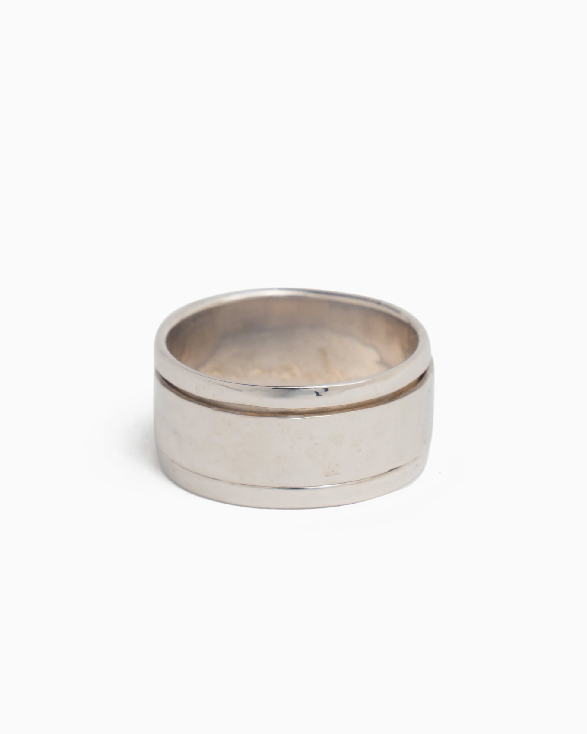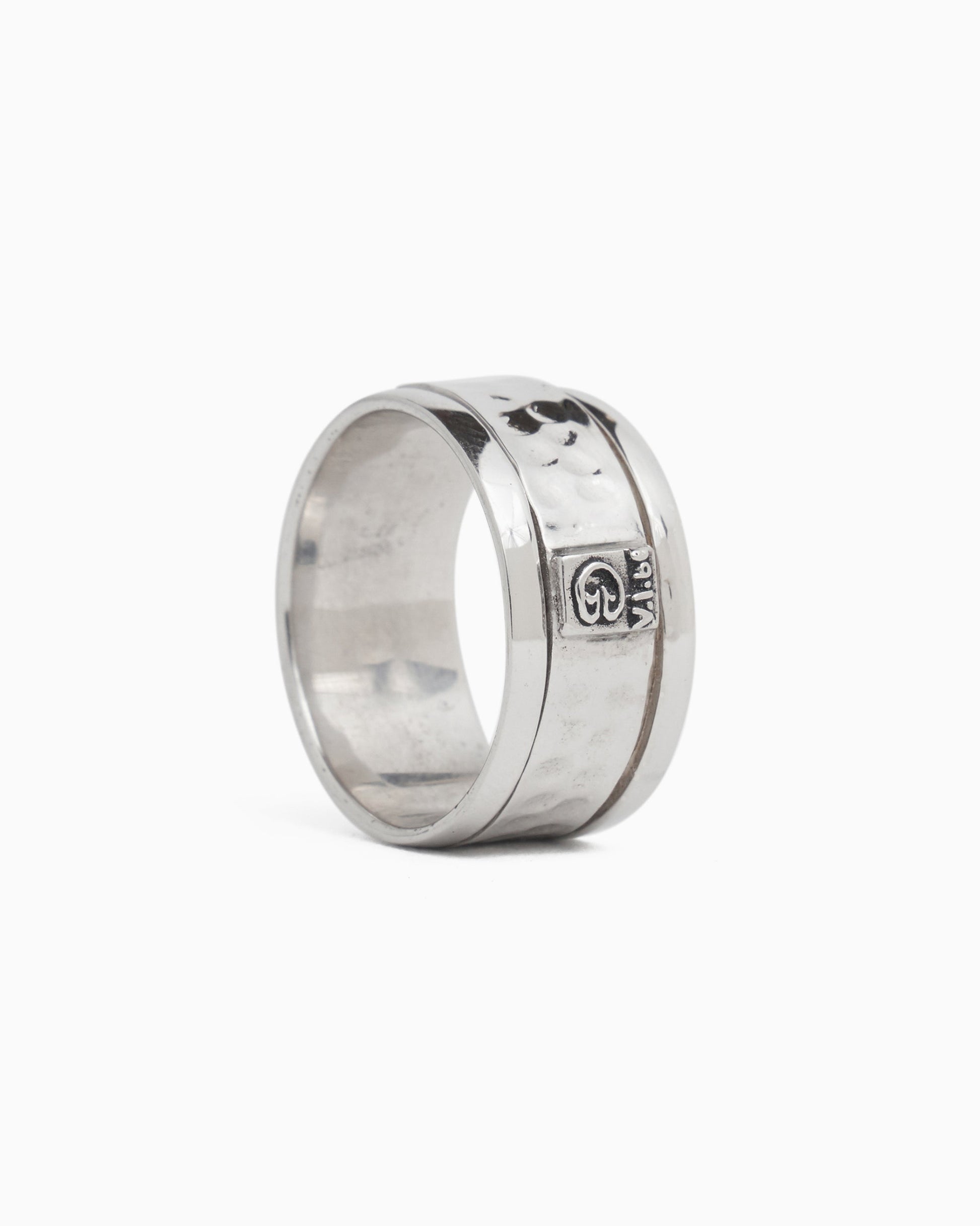 The distinctive Hammered Spinner Ring is handcrafted from gently hammered sterling silver. This ring is tailored for individuals seeking more than just a statement piece; its spinning band adds a playful touch to your look, making it a unique choice.