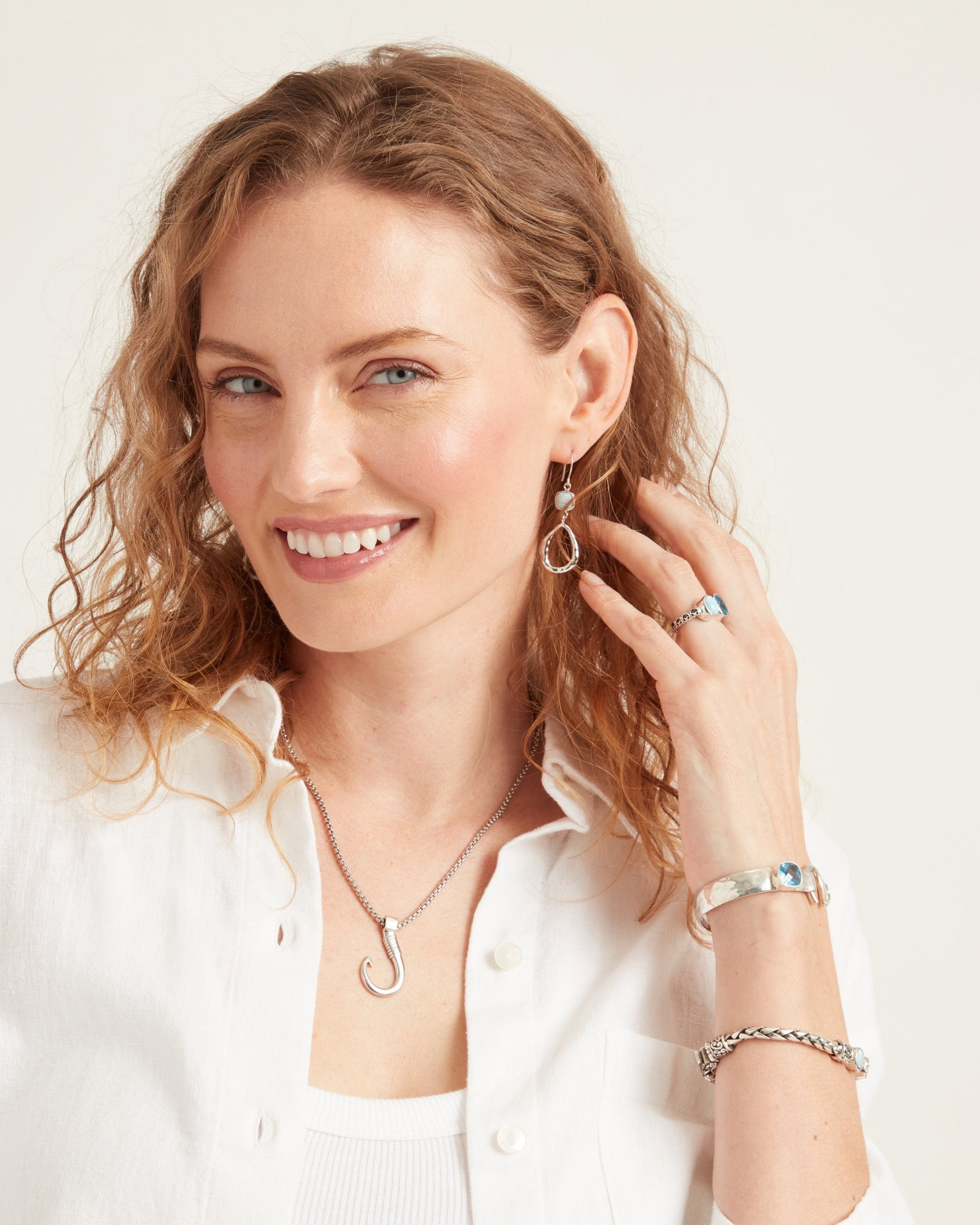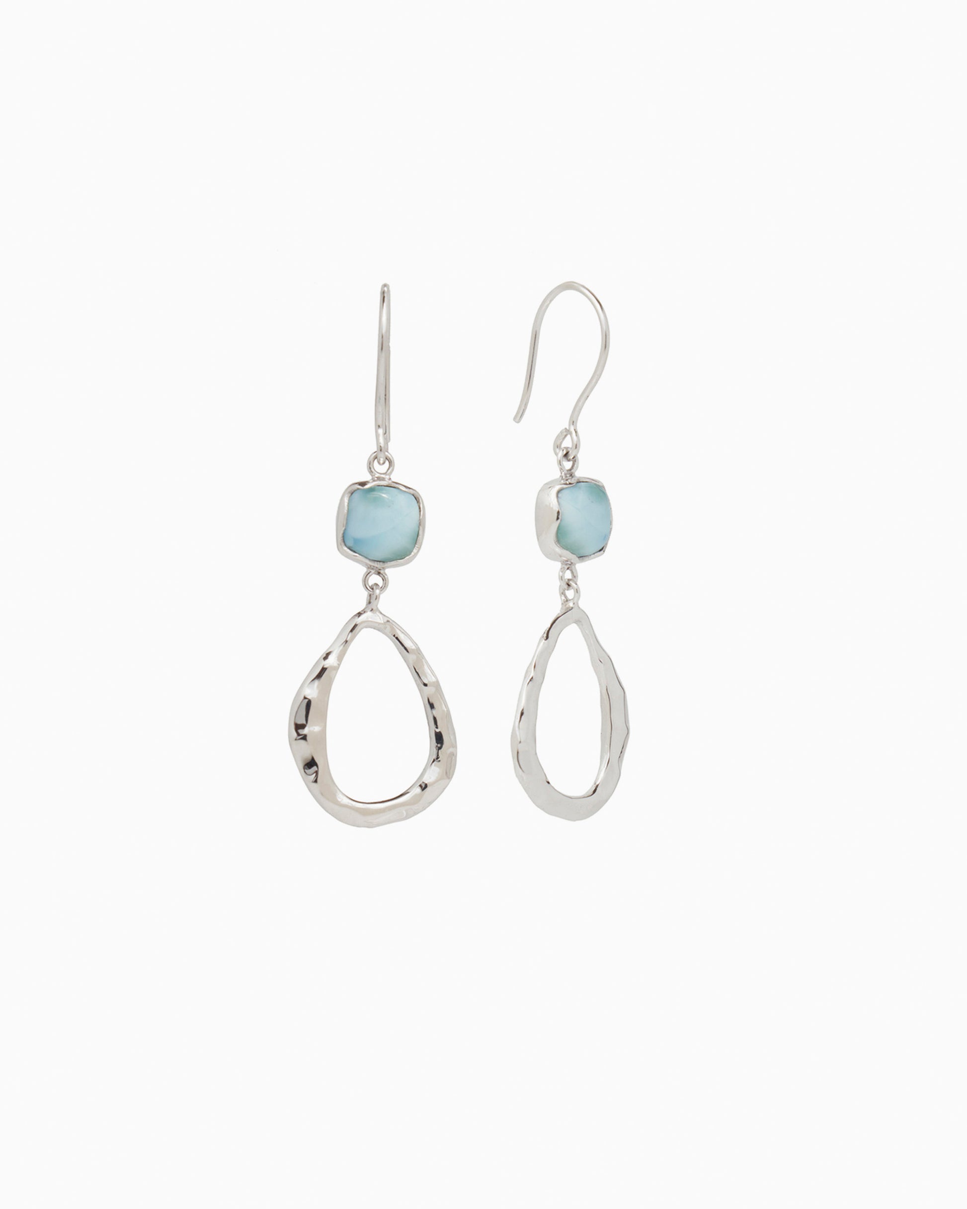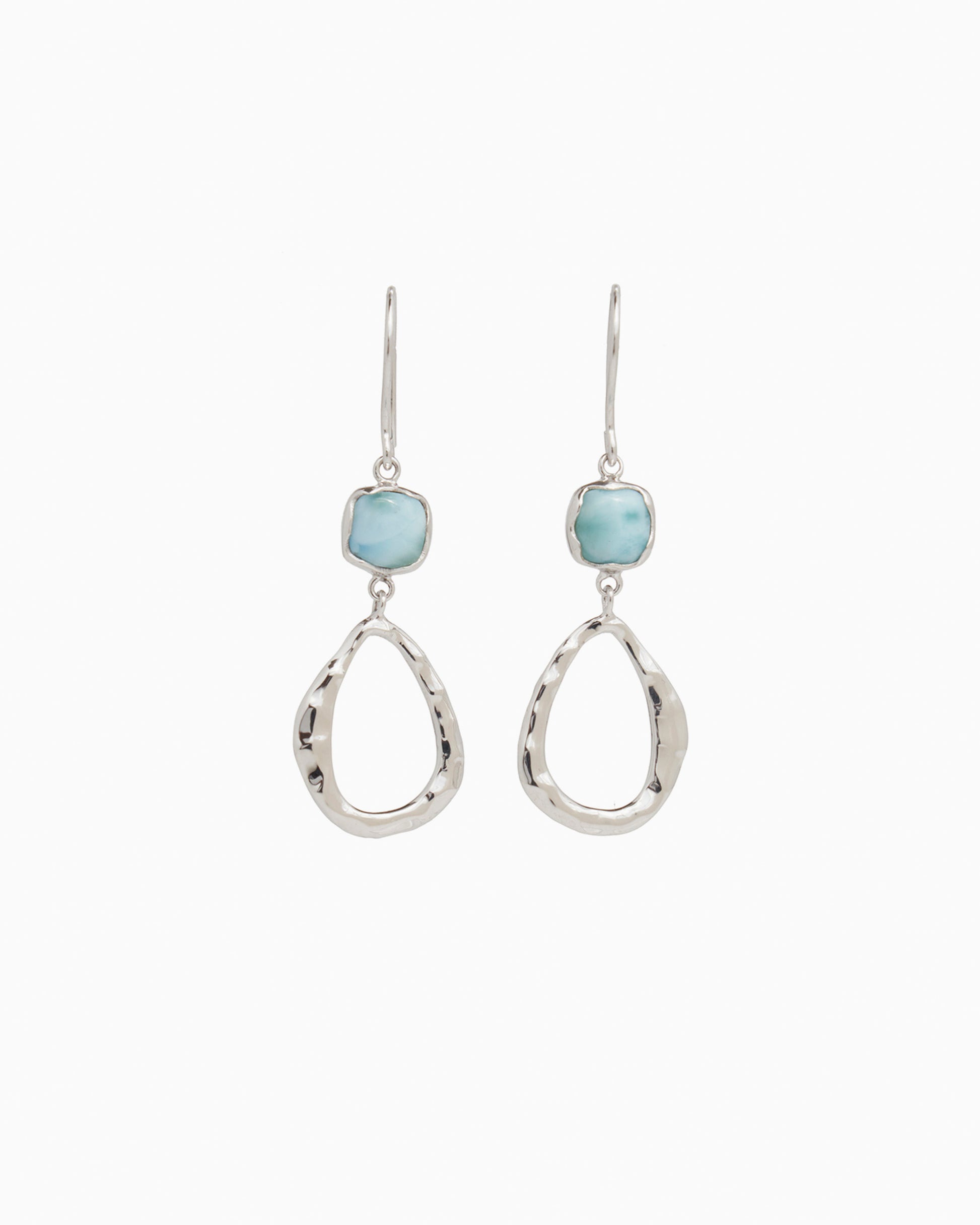 The Island Rain Drop Earrings are handcrafted with gently hammered sterling silver. Showcasing a square larimar cabochon stacked over a sterling silver teardrop, this piece adds a touch of timeless allure to its unique design. Elevate your jewelry collection with these earrings, which effortlessly blend classic elegance with distinctive detailing.