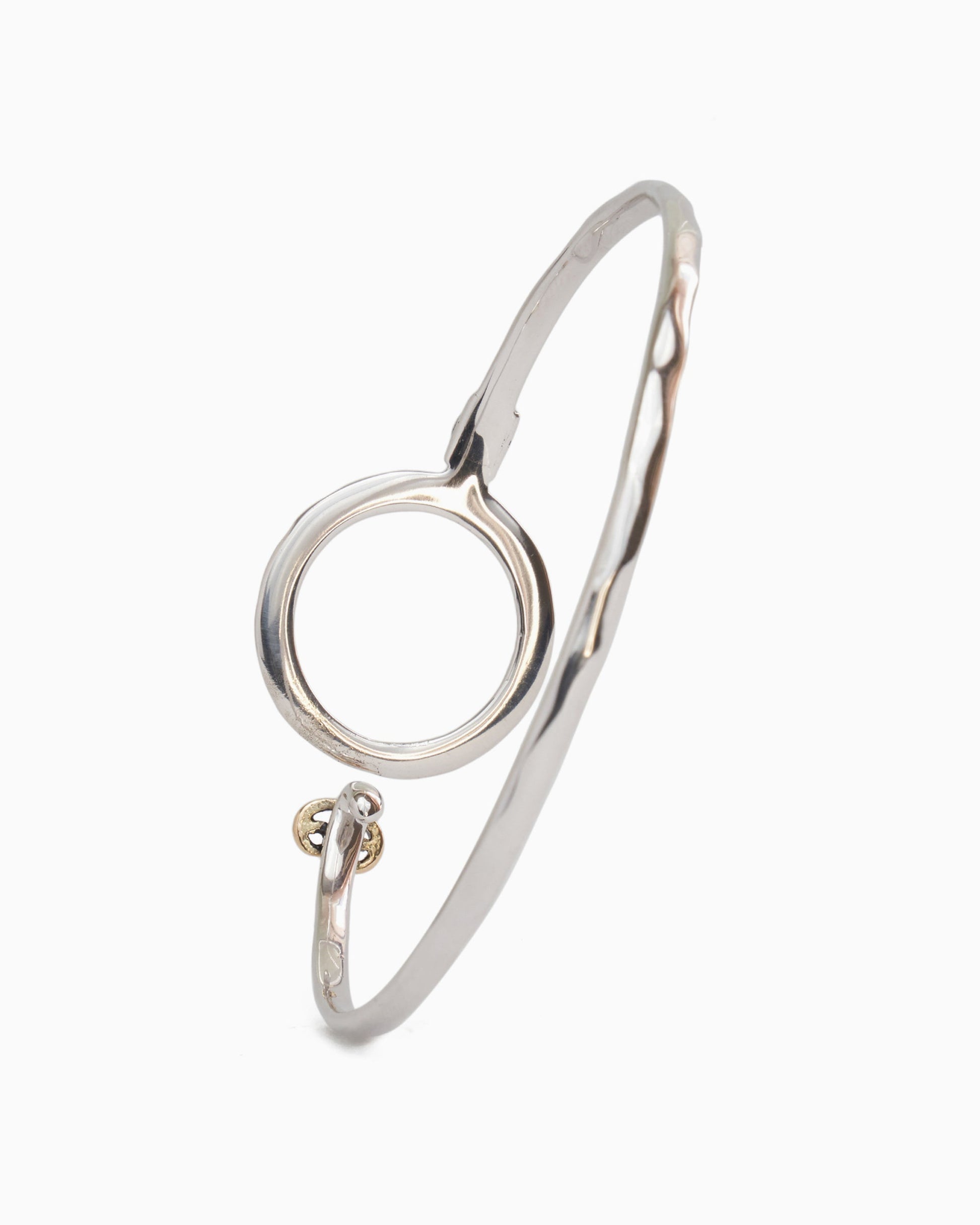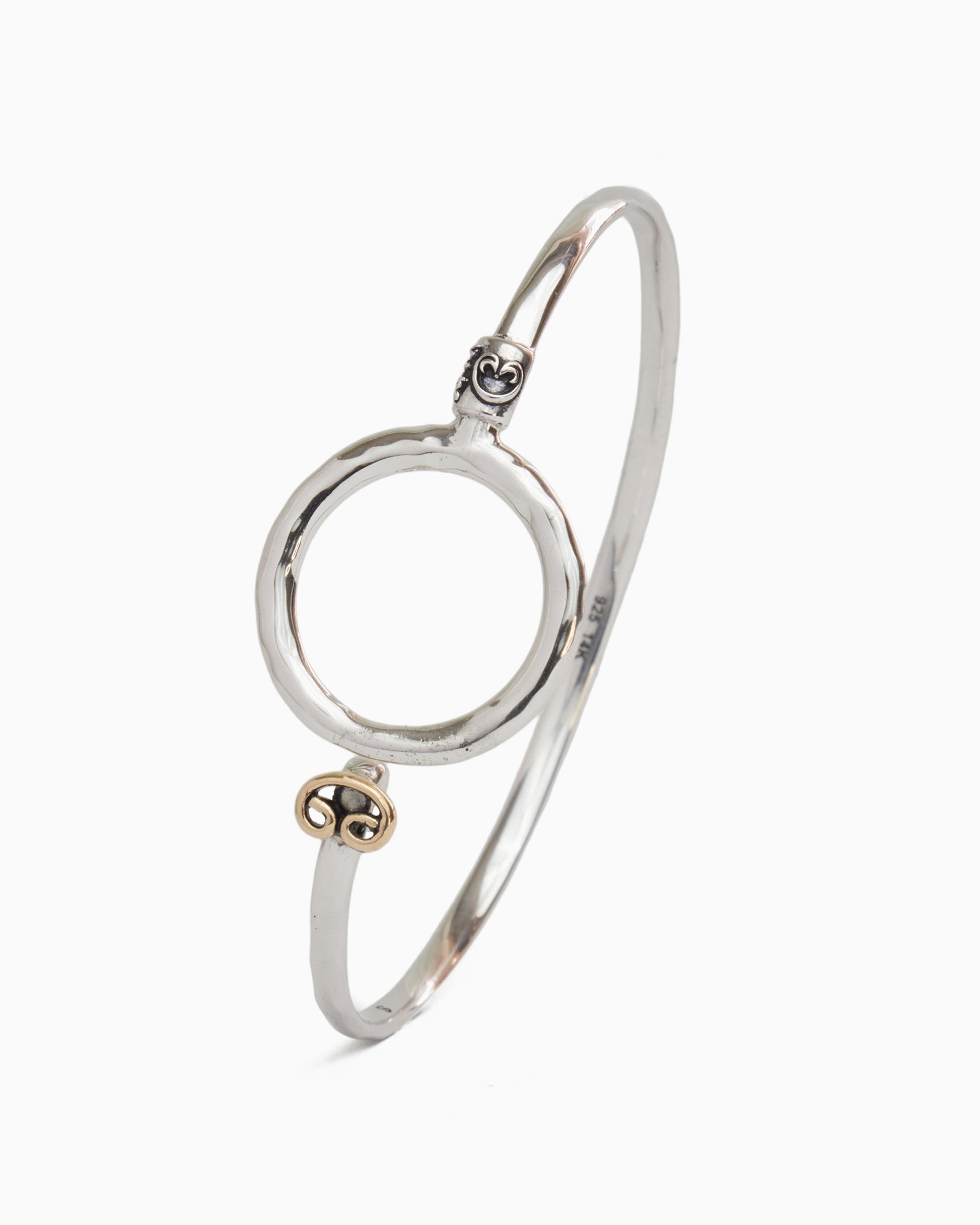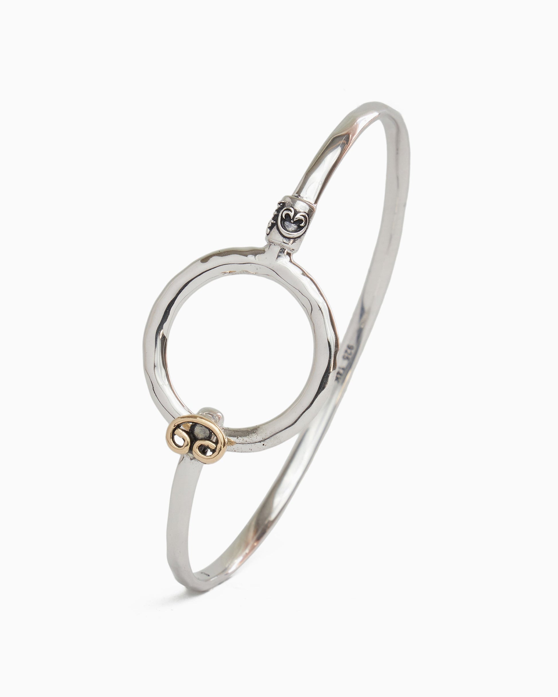 The Large One Love Hook Bracelet, with a gently hammered sterling silver band and an infinite circle, is inspired by the boundless nature of love. And as the perfect finishing touch, it proudly showcases the iconic and well-loved St. John petroglyph in 14K solid gold.