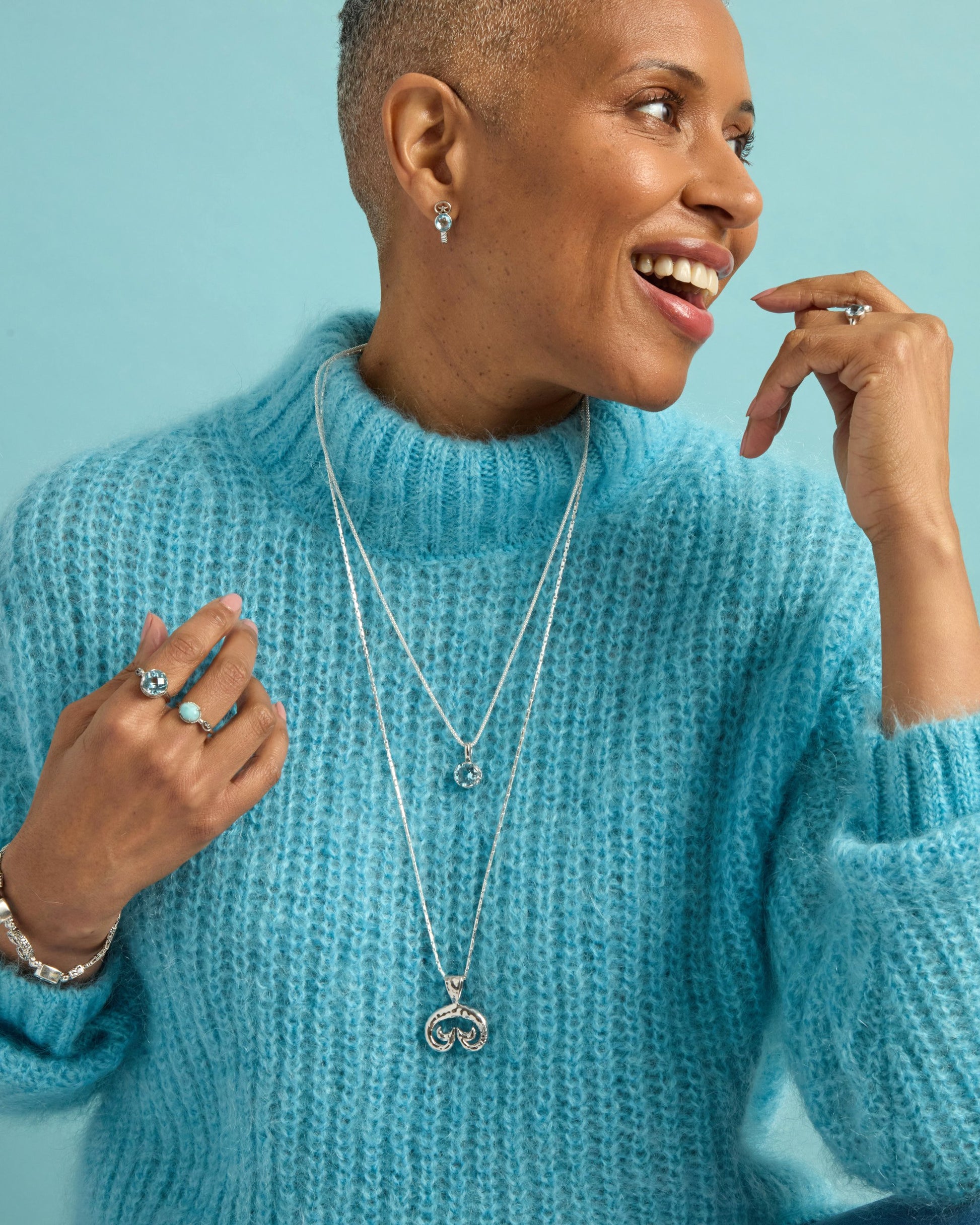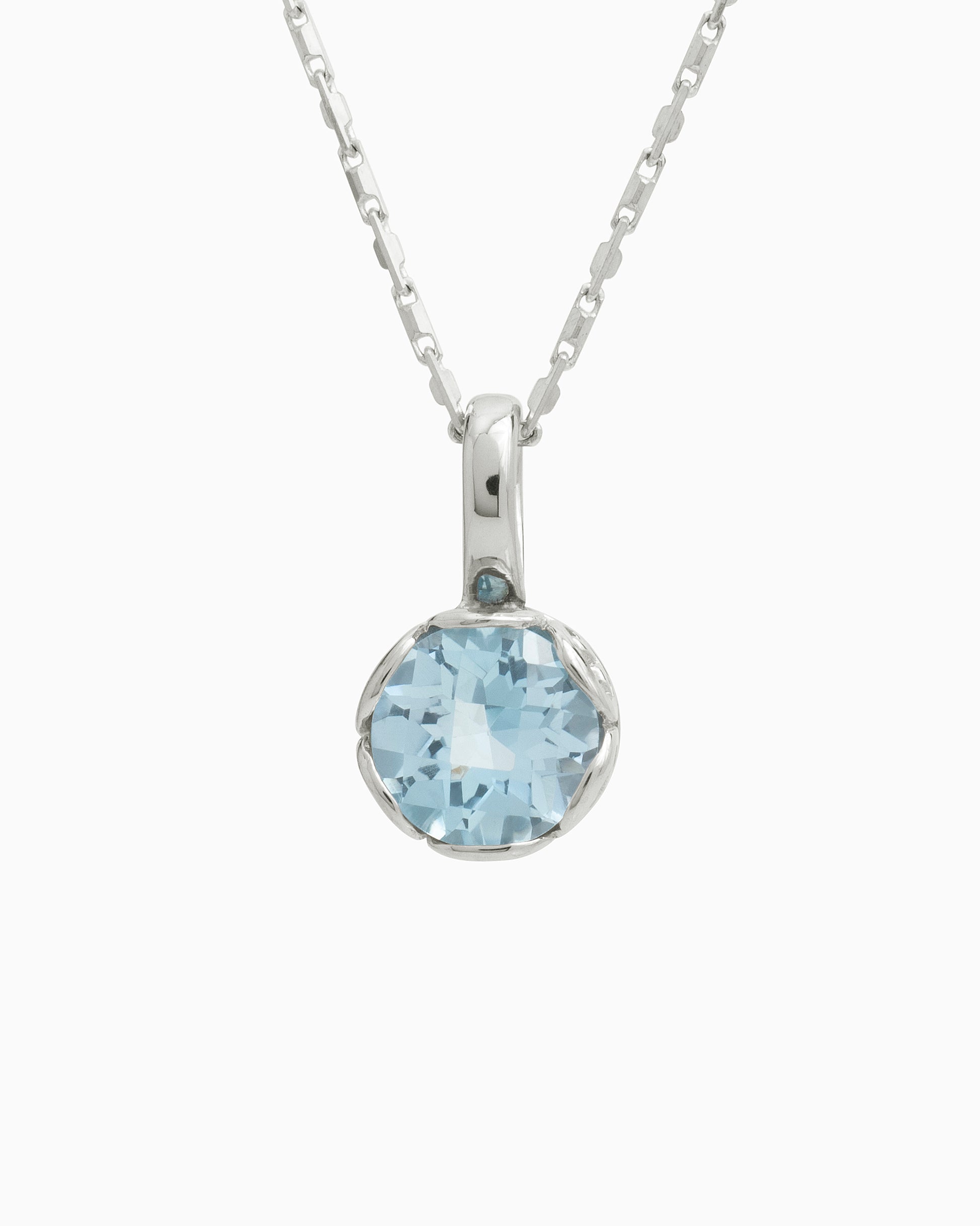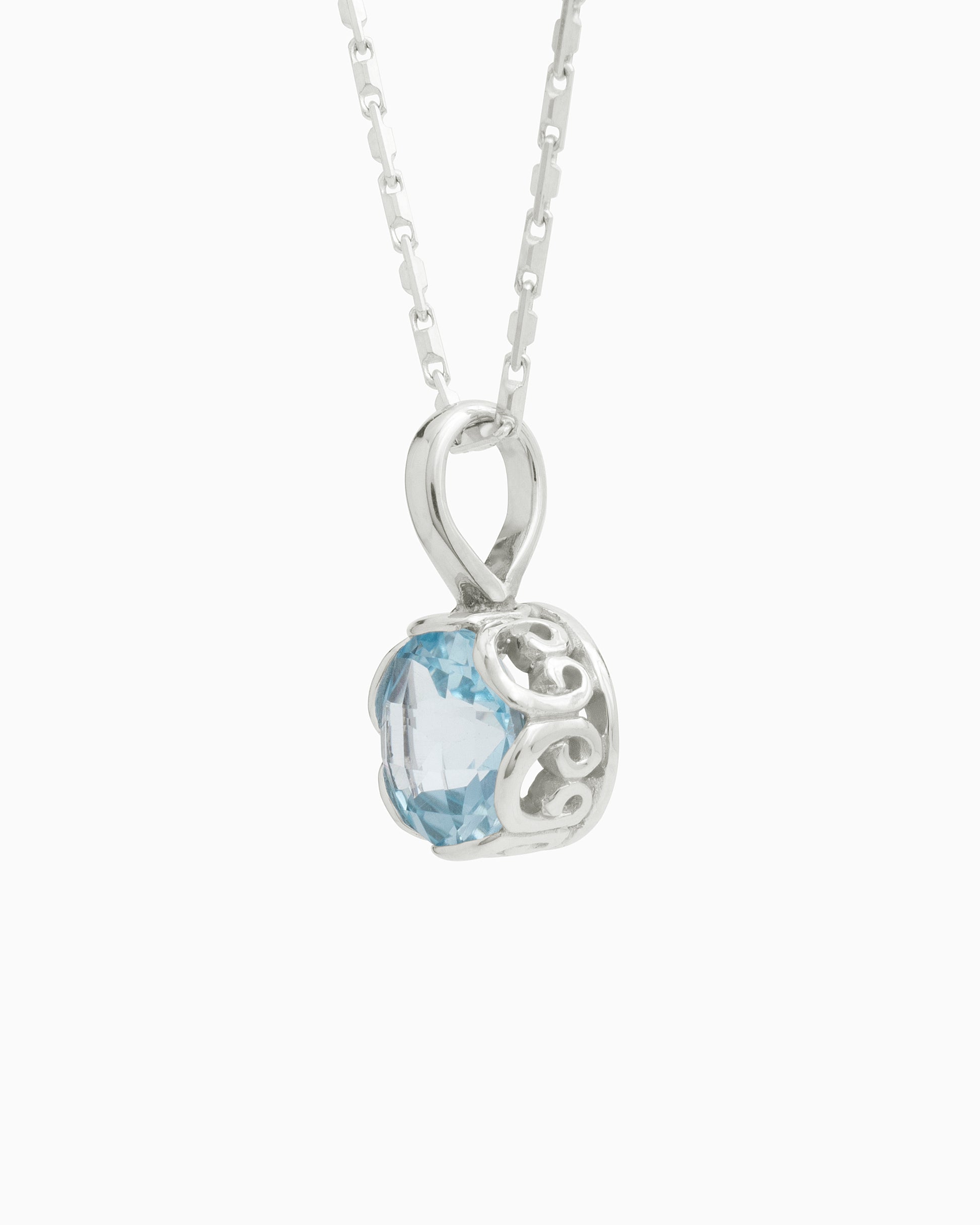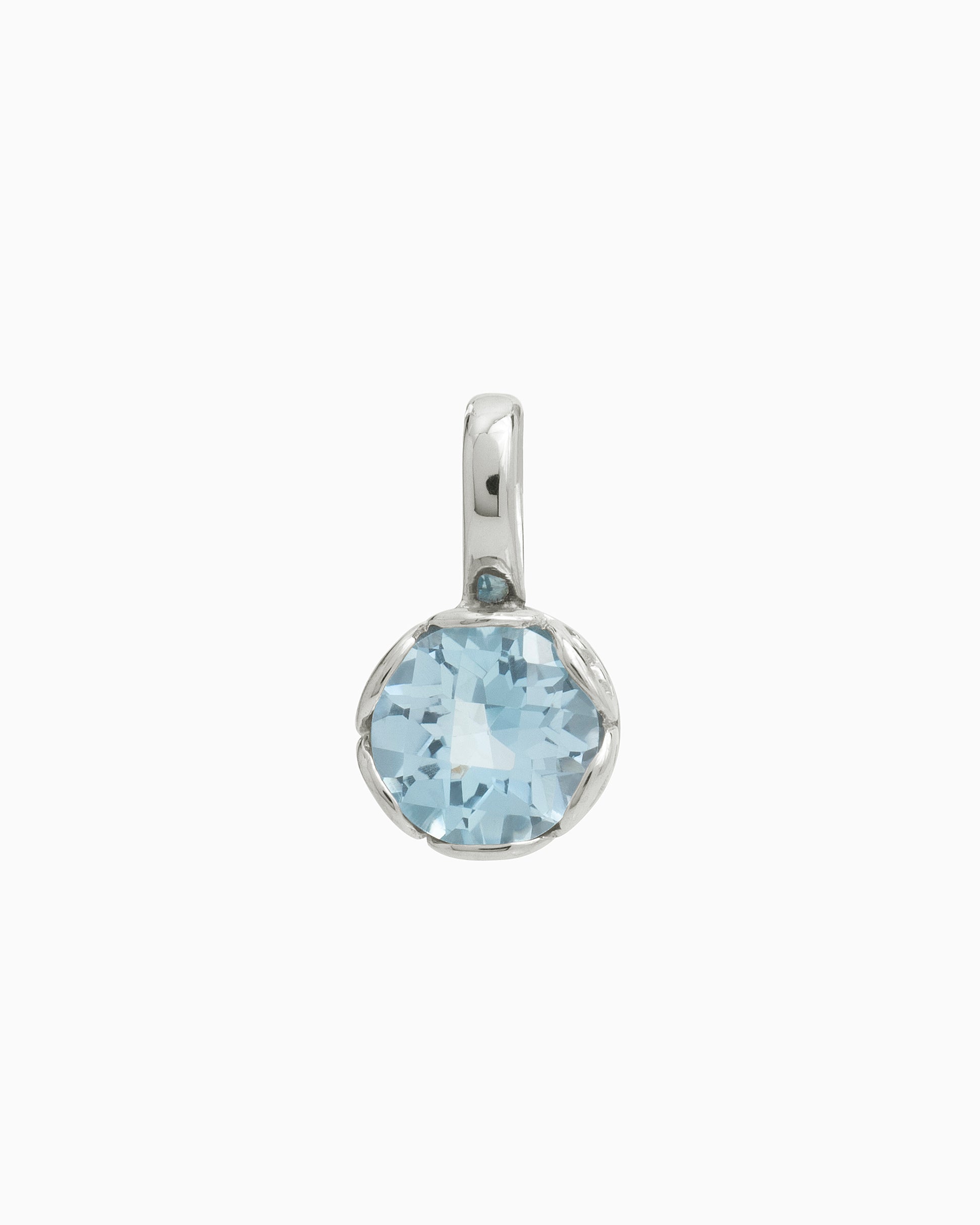 Crafted in sterling silver, the Large Princess Petroglyph Stone Pendant is a stunning statement piece that features a faceted blue topaz stone encircled by intricate petroglyphs. Its unique design adds a touch of elegance to any outfit and matches wonderfully with our Princess Stone Studs. Pair with your favorite chain, sold separately.