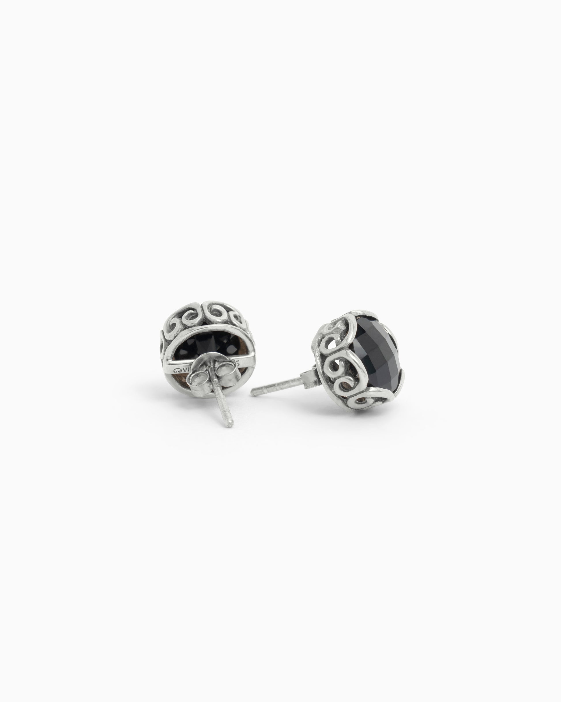 Perfect with any outfit, the Large Princess Petroglyph Stone Studs feature faceted black onyx stones encircled by intricate petroglyphs. Its unique design adds a touch of elegance to any outfit, and pairs wonderfully with our Large Princess Petroglyph Stone Pendant.