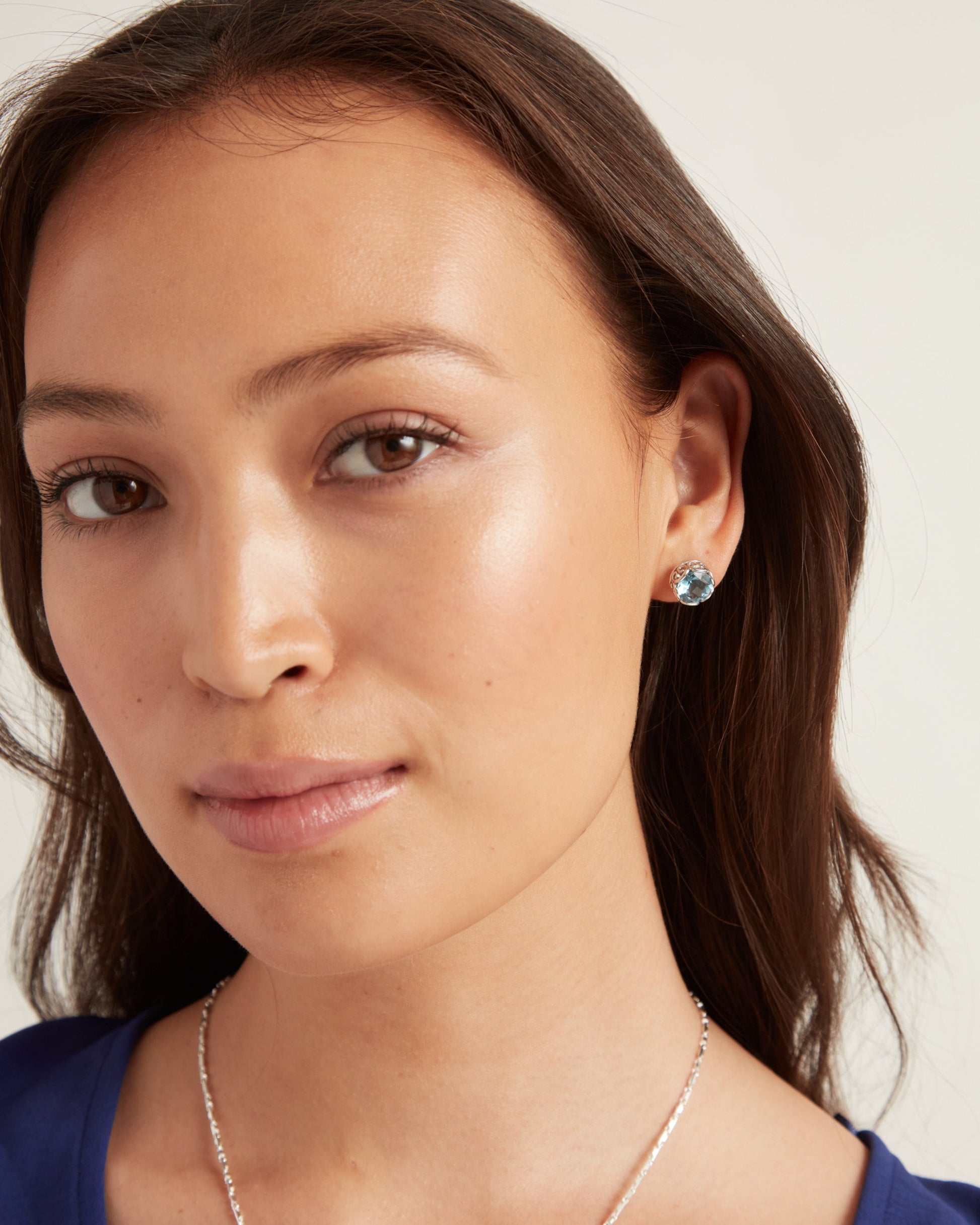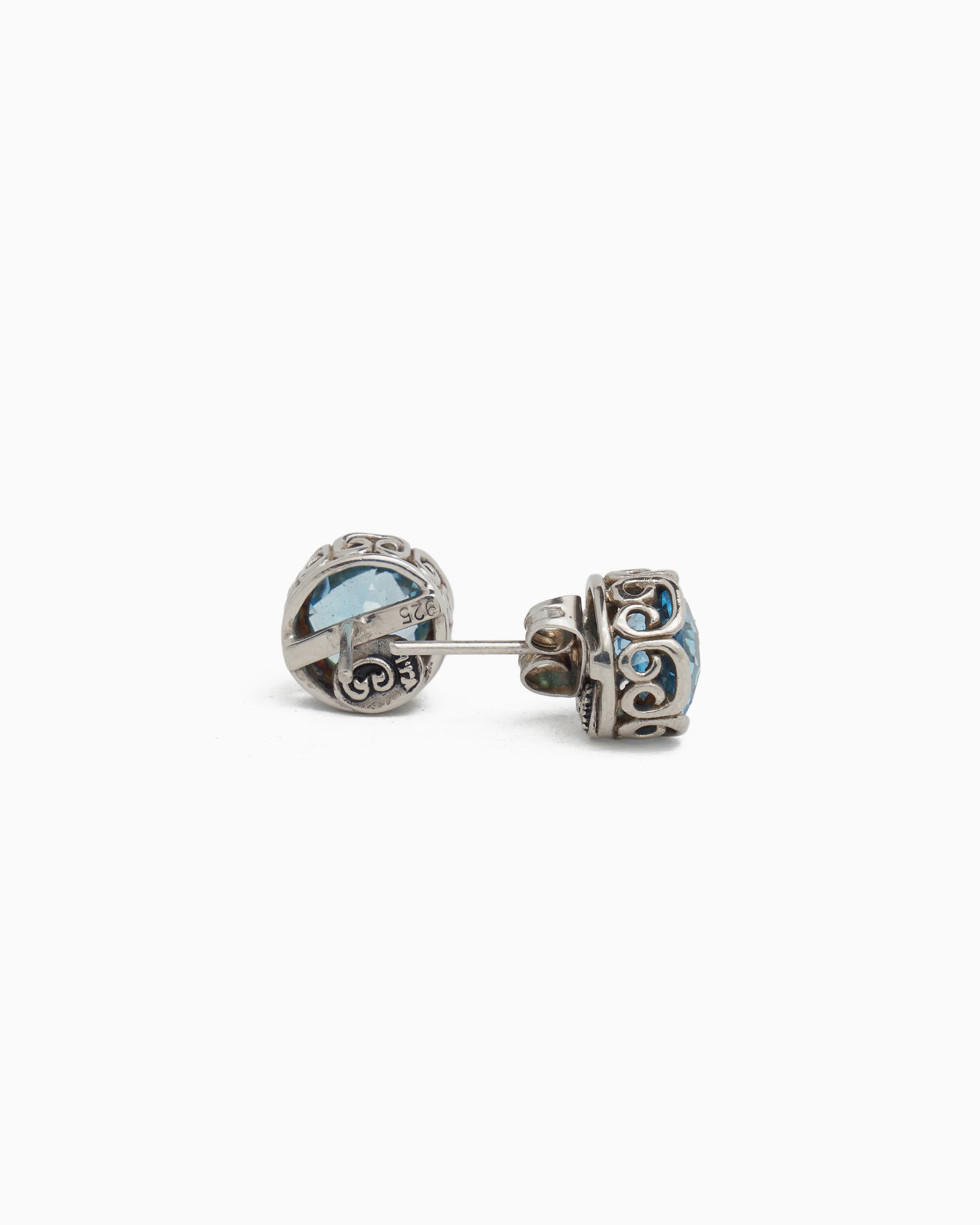 Perfect with any outfit, the Large Princess Petroglyph Stone Studs feature faceted Hampton blue topaz stones encircled by intricate petroglyphs. Its unique design adds a touch of elegance to any outfit, and pairs wonderfully with our Large Princess Petroglyph Stone Pendant.