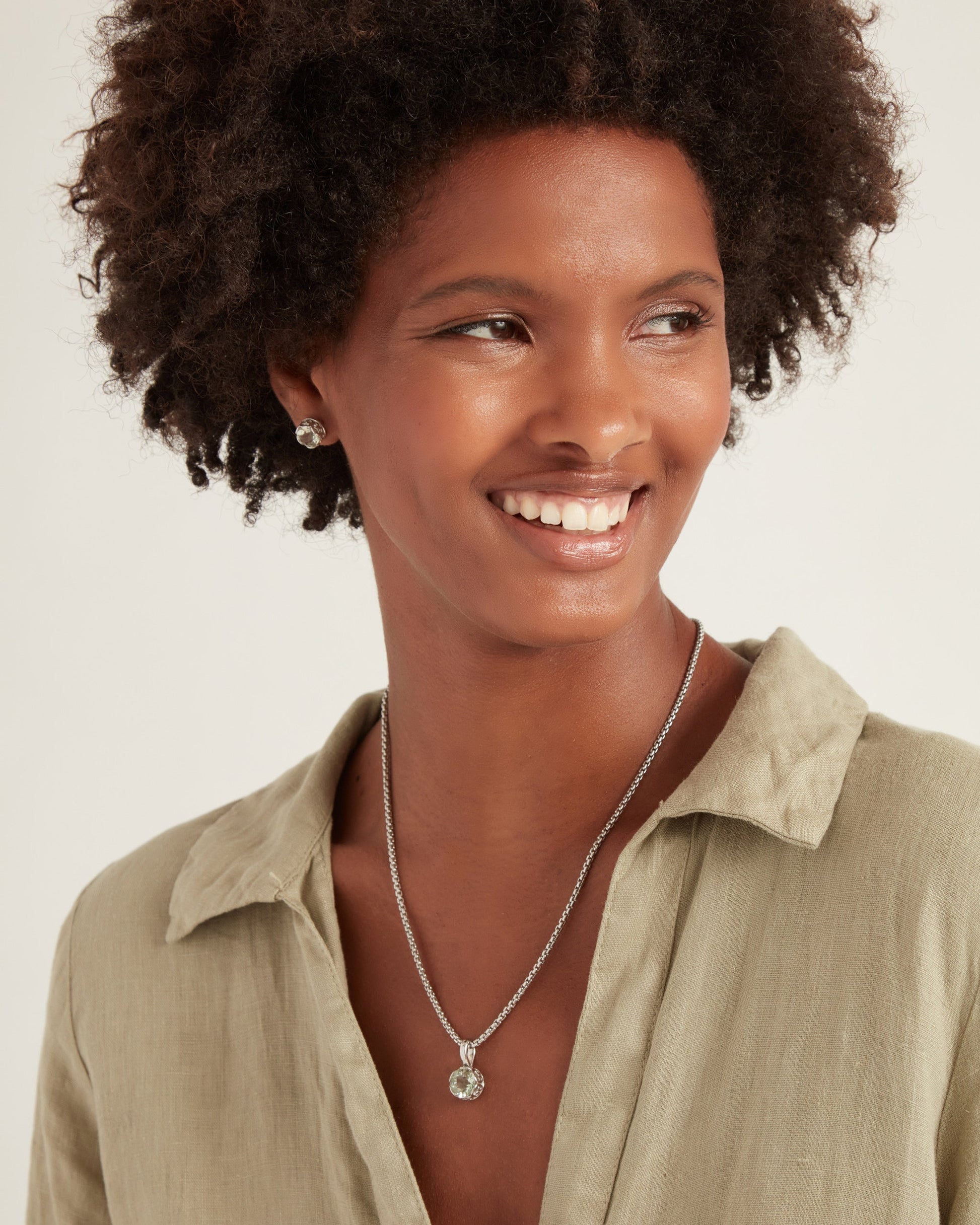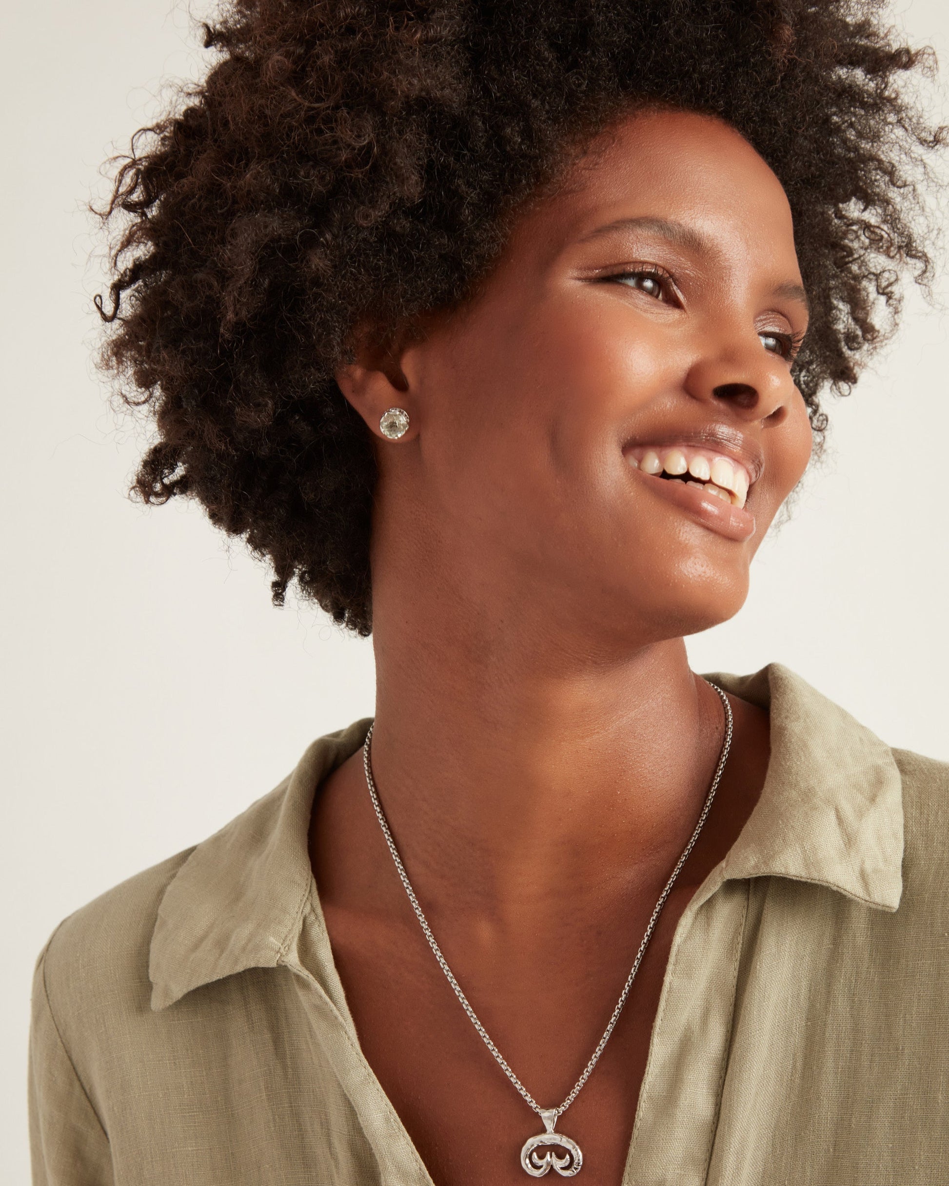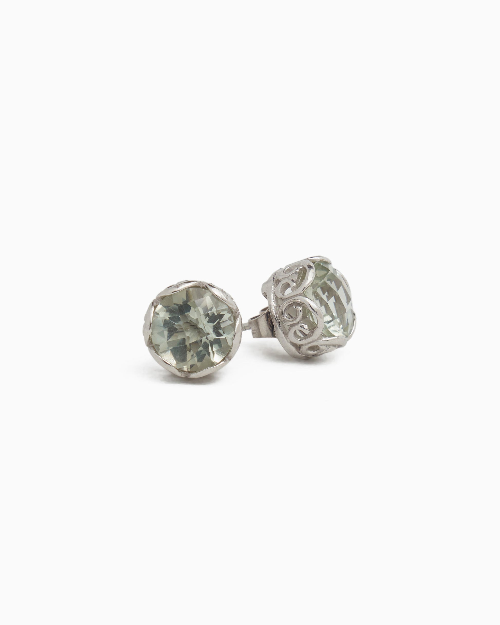 Perfect with any outfit, the Large Princess Petroglyph Stone Studs feature faceted prasiolite stones encircled by intricate petroglyphs. Its unique design adds a touch of elegance to any outfit, and pairs wonderfully with our Large Princess Petroglyph Stone Pendant.