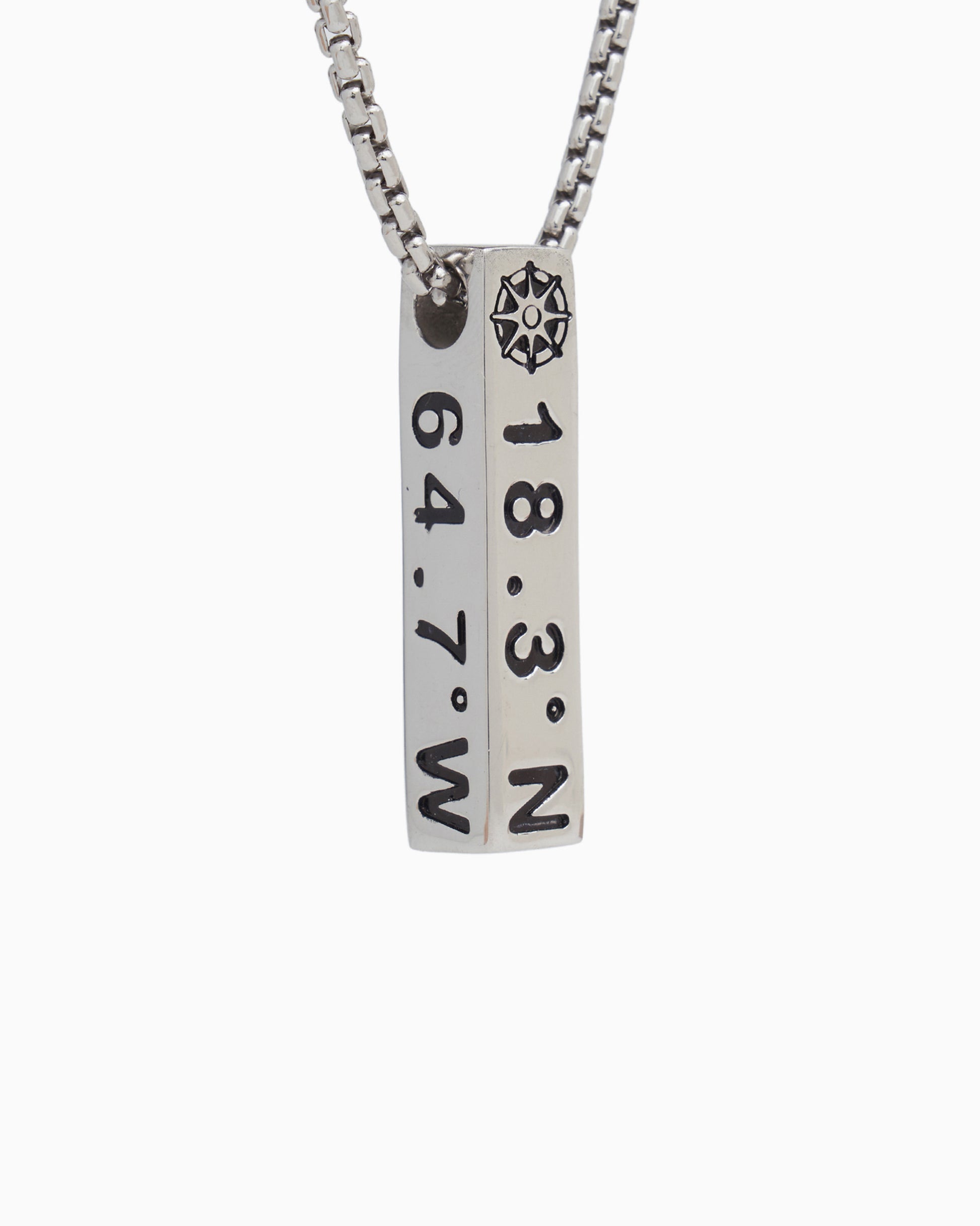 Find your way back to your happy place with the Large St. John Coordinates Pendant handcrafted from sterling silver. Featuring the St. John coordinates and a compass rose. Pair with your favorite chain, sold separately.