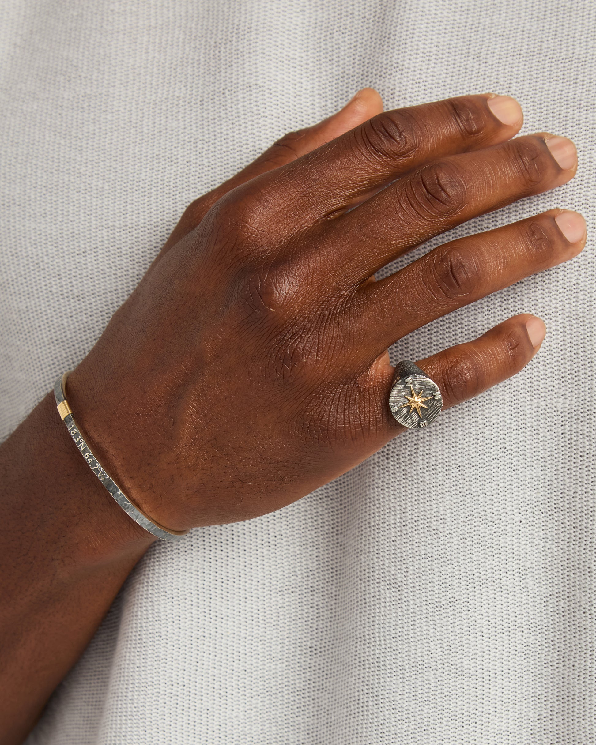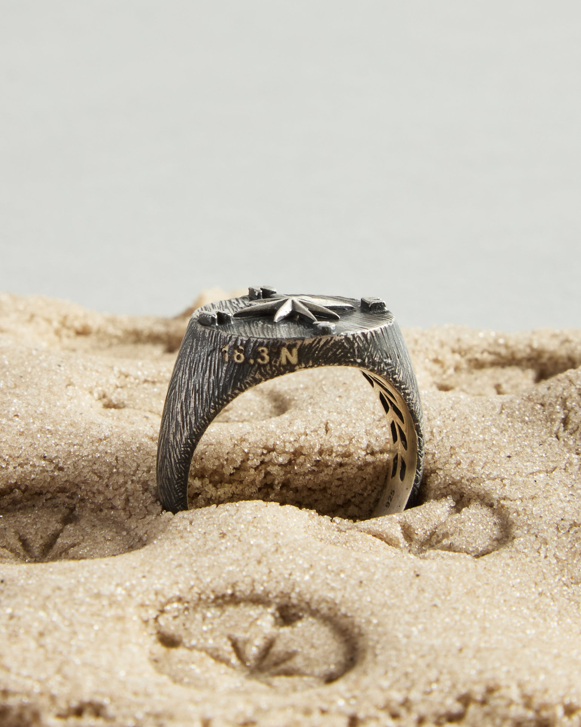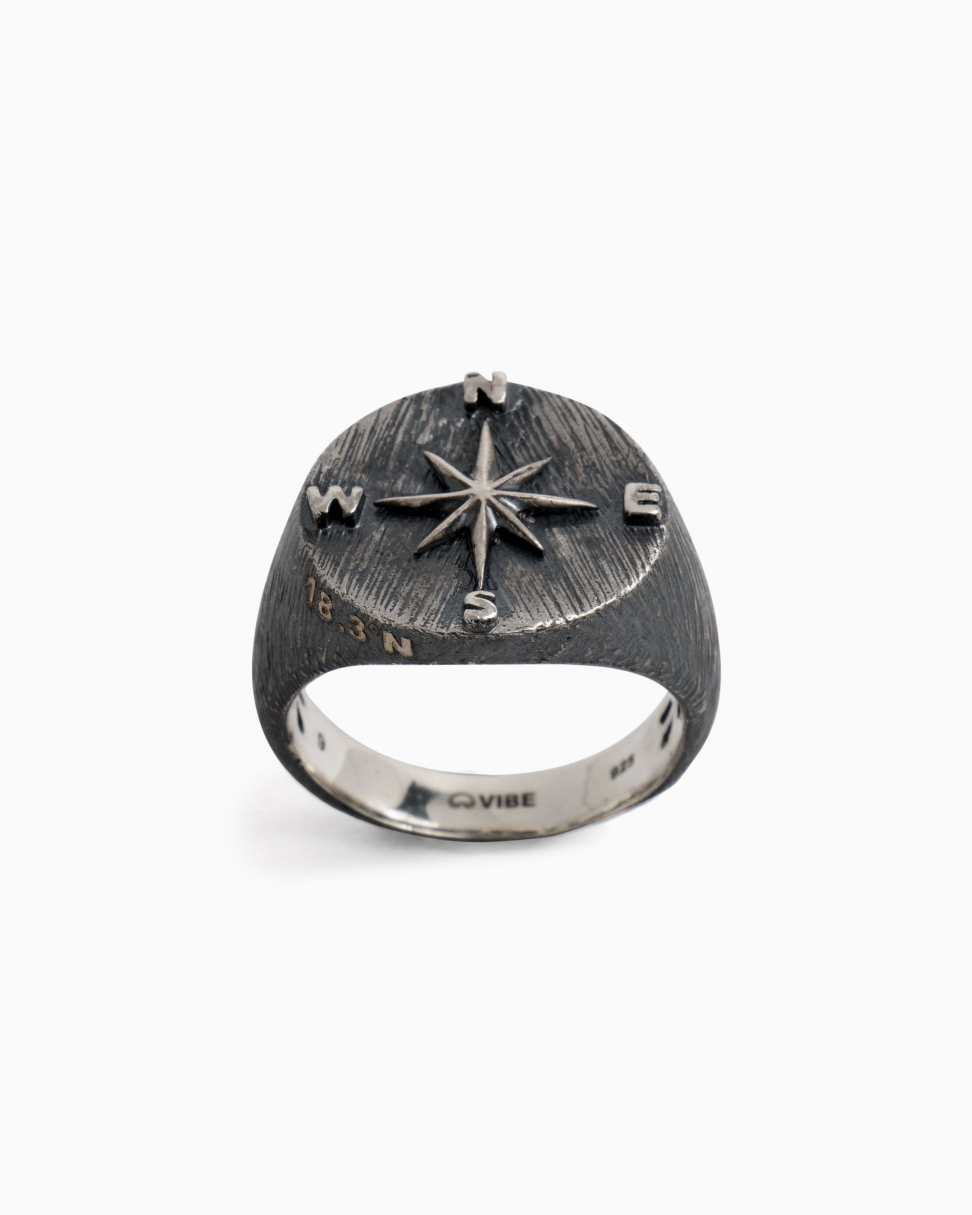 Channel your inner adventurer with the Compass Ring, a tribute to the spirit of the sea. Its unique compass face and marine-inspired texture, crafted with intricate cross-hatching and distressed details, make every piece as one-of-a-kind as the tides. Engraved with St. John’s coordinates on the side, it carries a piece of the island’s guiding spirit wherever you go. Handcrafted by Vibe artisans, the oxidized finish ensures no two rings are alike, each telling its own story.