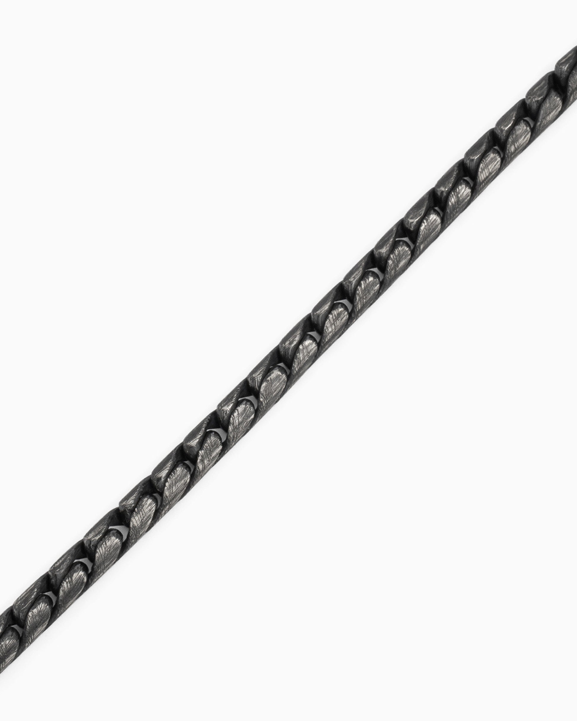 Crafted in oxidized sterling silver, this bracelet features chunky, rope-inspired links and a button-style clasp for secure closure. The clasp is detailed with a 14K solid gold compass rose front and center, and St. John's coordinates on the side, set against our signature marine texture—with cross-hatching and distressed details throughout. Barrel links on either side of the clasp also feature our marine texture and 14K gold wraps to bring balance to this signature Vibe design.