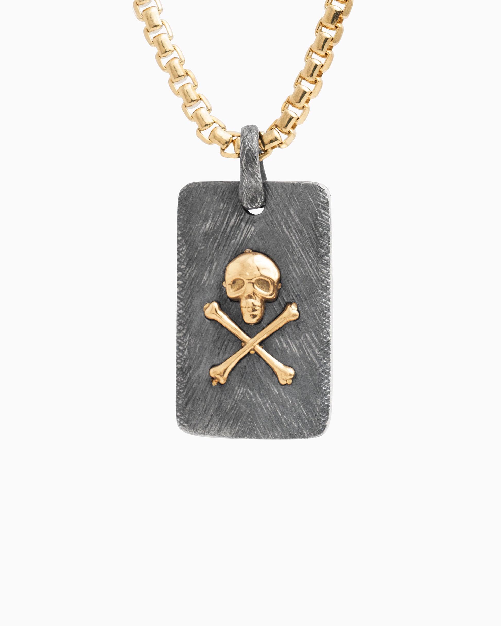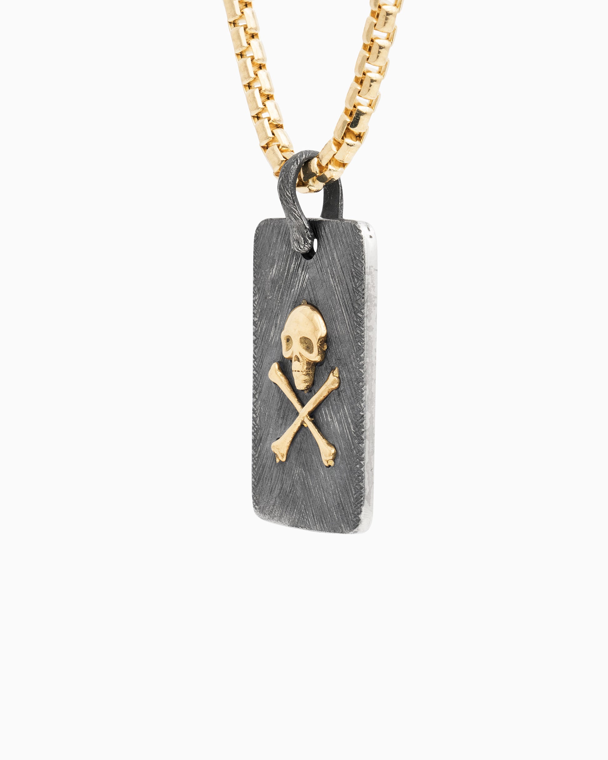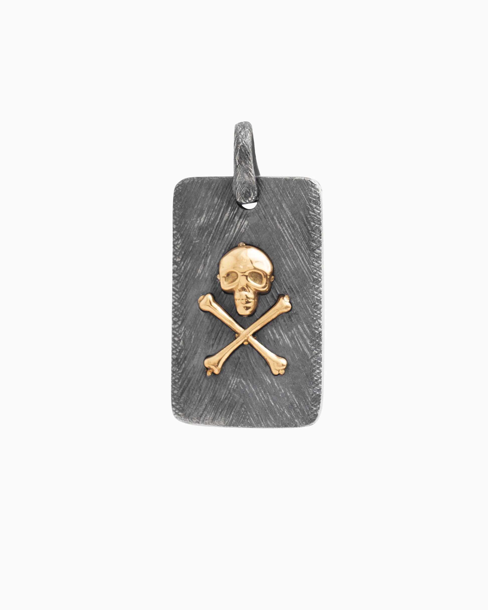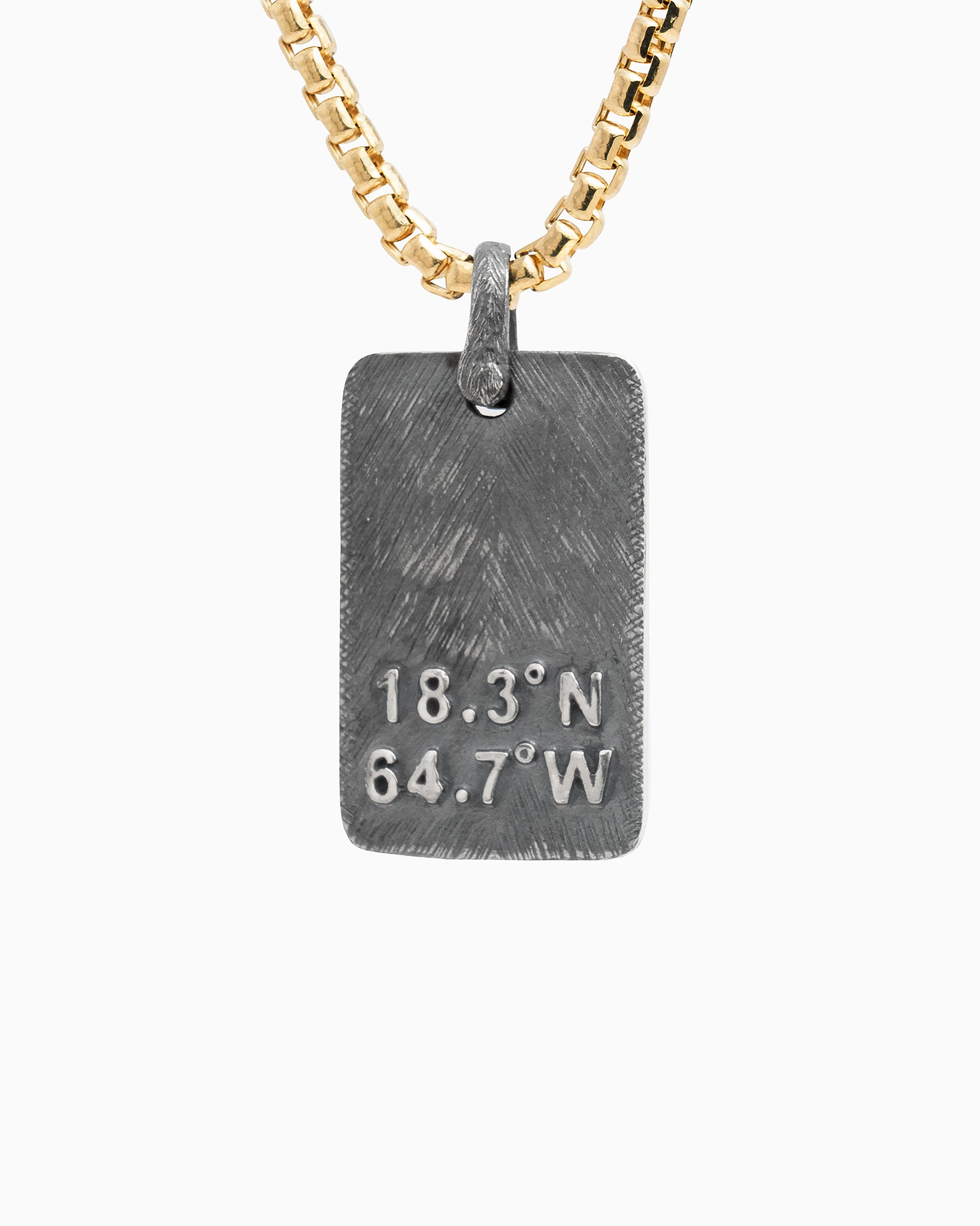 The Marine Texture Skull Pendant is a bold piece for those who carry the spirit of St. John with them. Handcrafted in oxidized sterling silver, it features our signature marine texture with cross-hatching and distressed details for an ocean-worn feel. A solid 14K gold skull sits at the center, while St. John coordinates are featured on the back as a lasting tribute to the island. With our oxidized finishes, no two are alike—each piece is uniquely handcrafted by Vibe artisans. Pair with your favorite chain, sold separately.