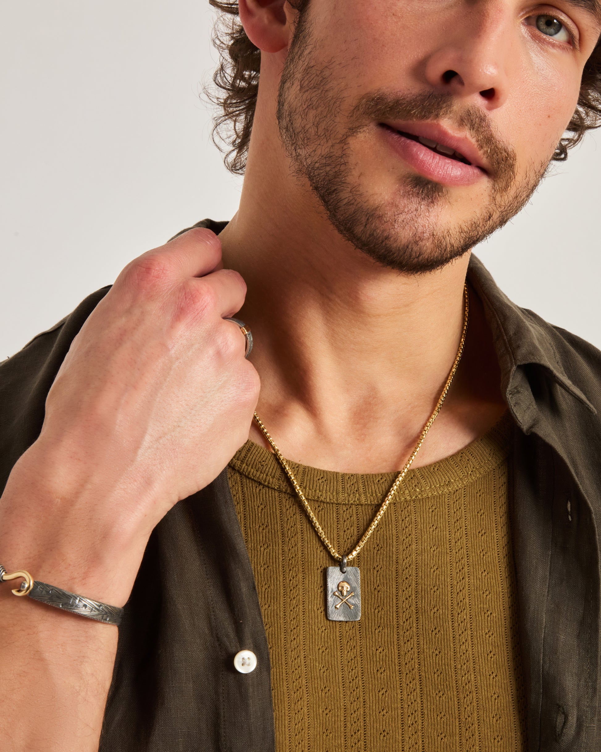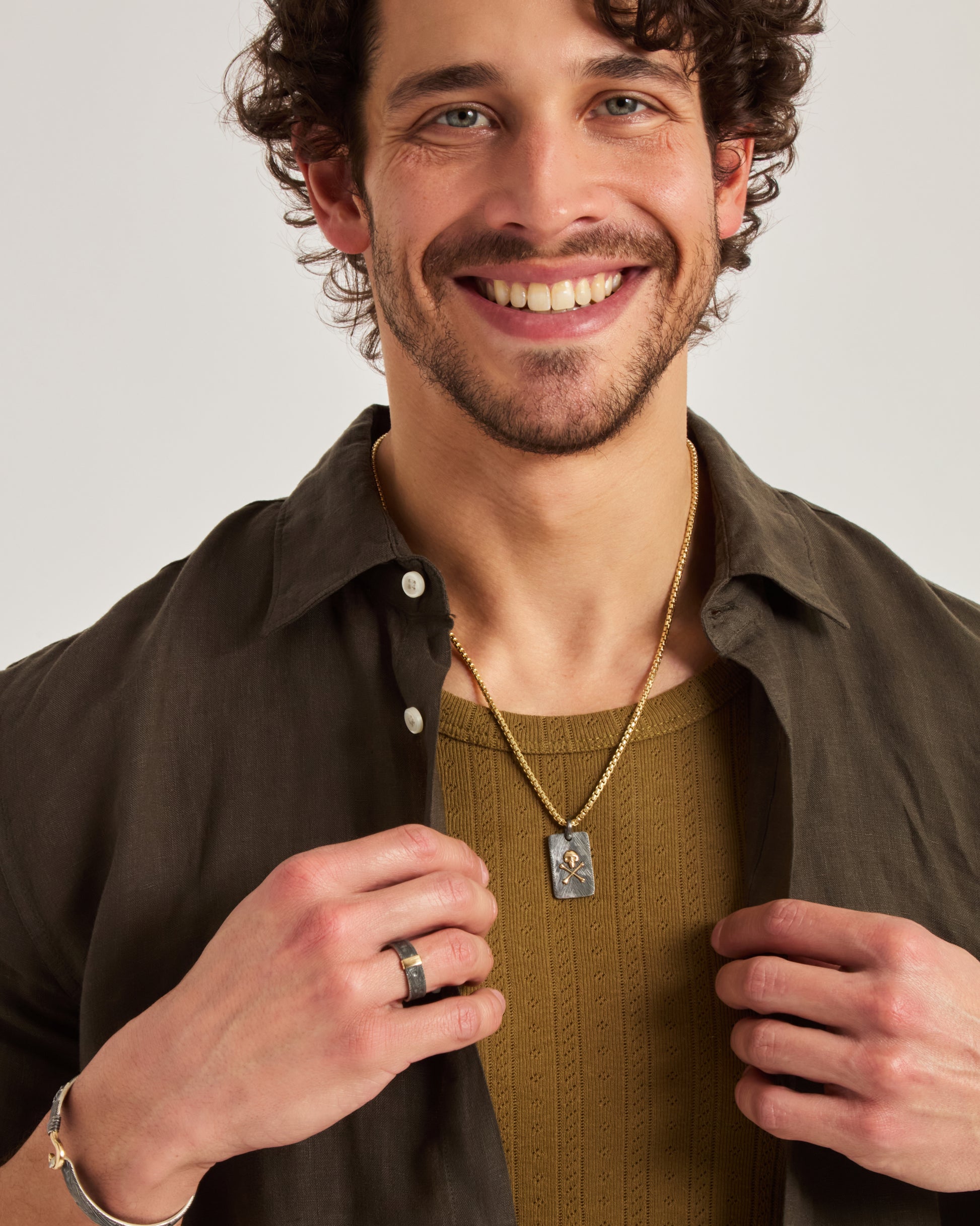 - Metal: Oxidized sterling silver with 14K solid gold