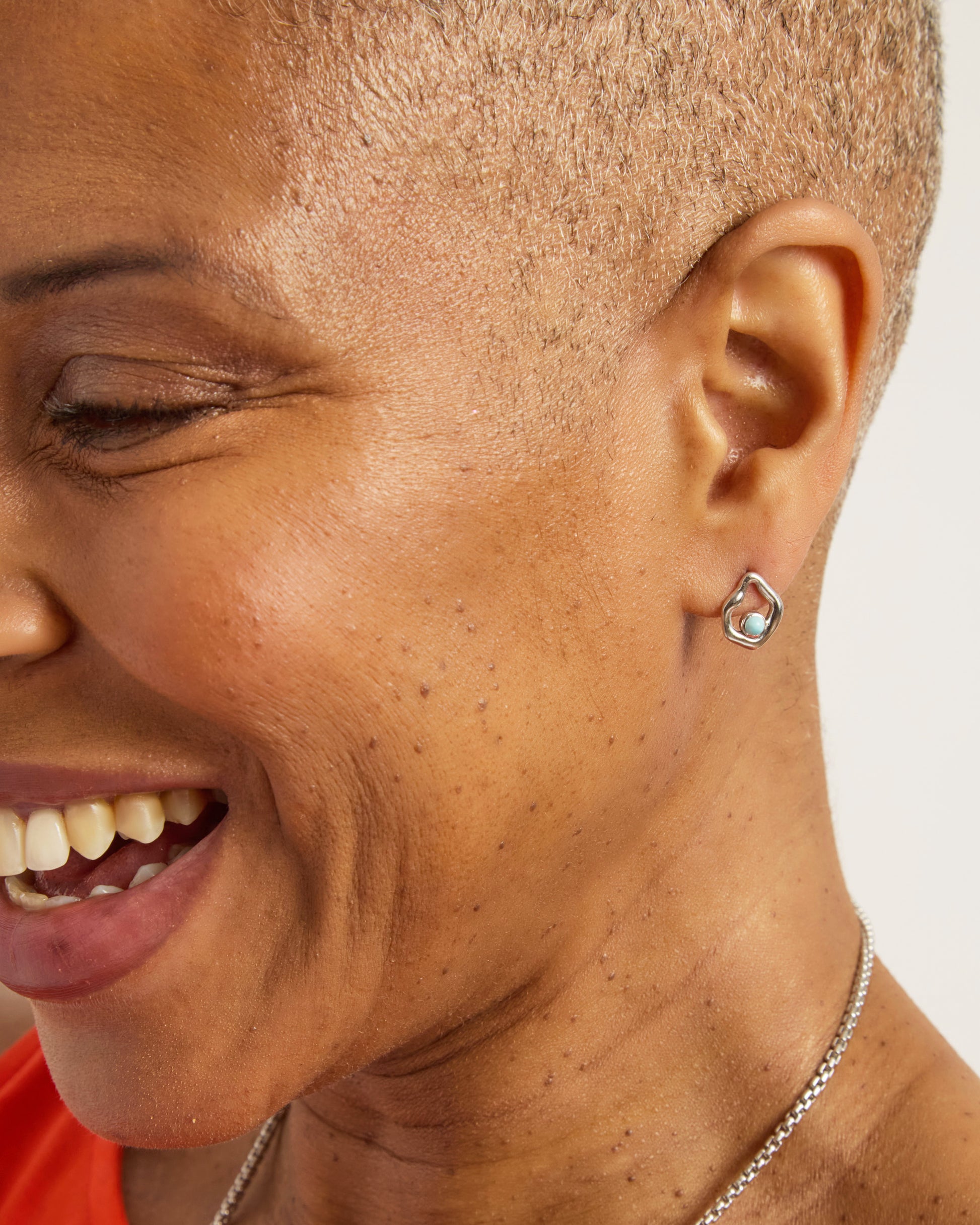 The Mermaid Chair Earrings feature an ocean-inspired sterling silver base with a larimar cabochon accent. This easy-to-wear earring will complement any everyday look.
