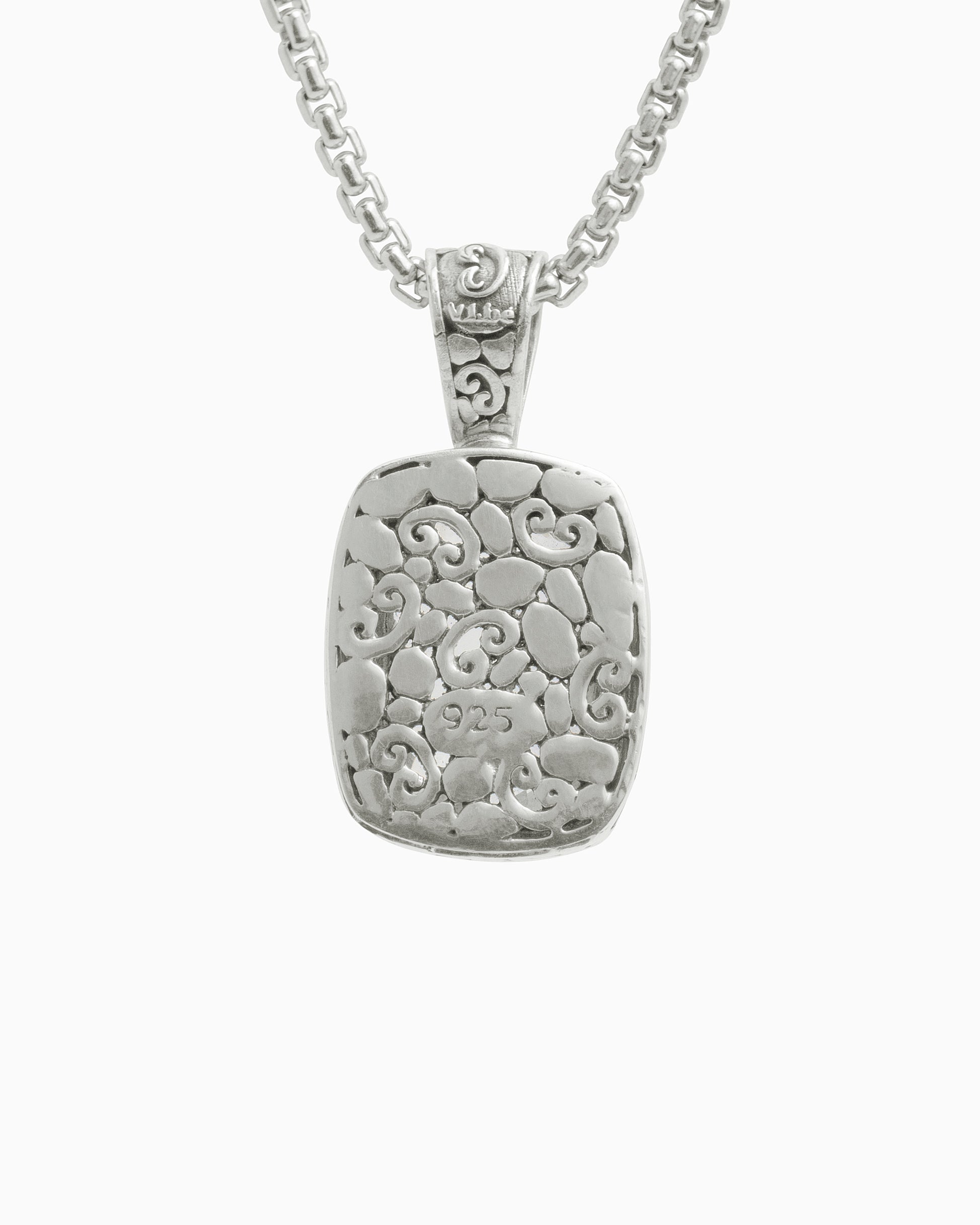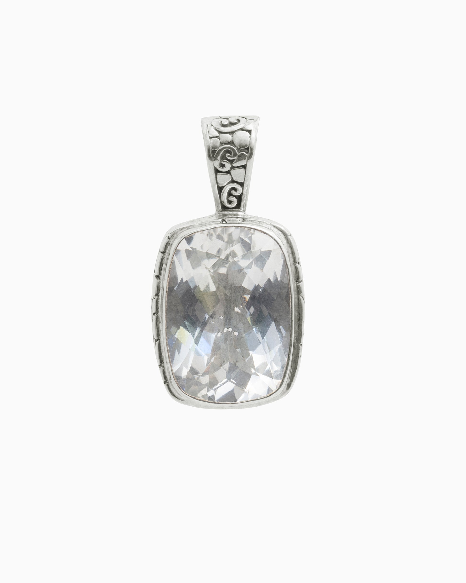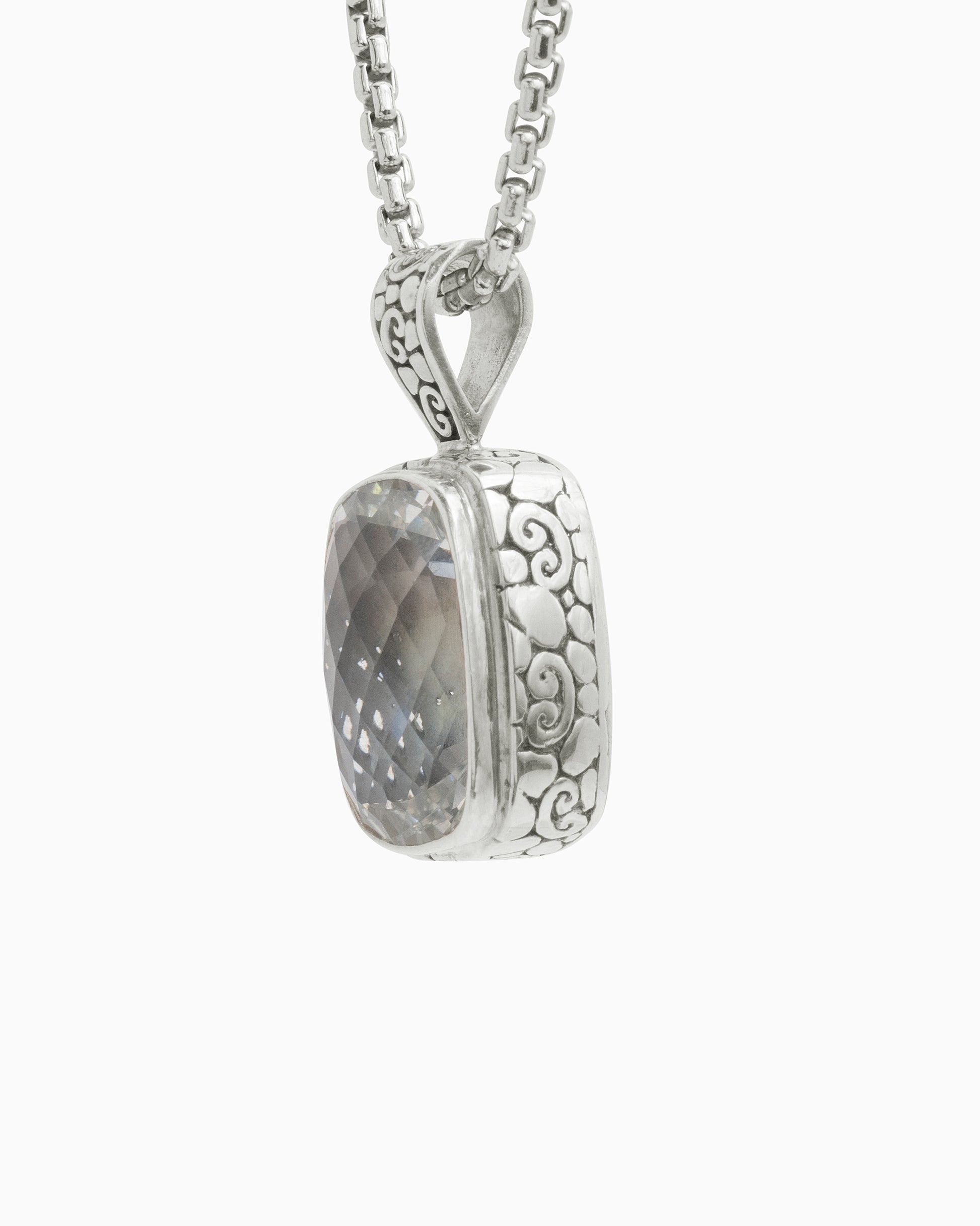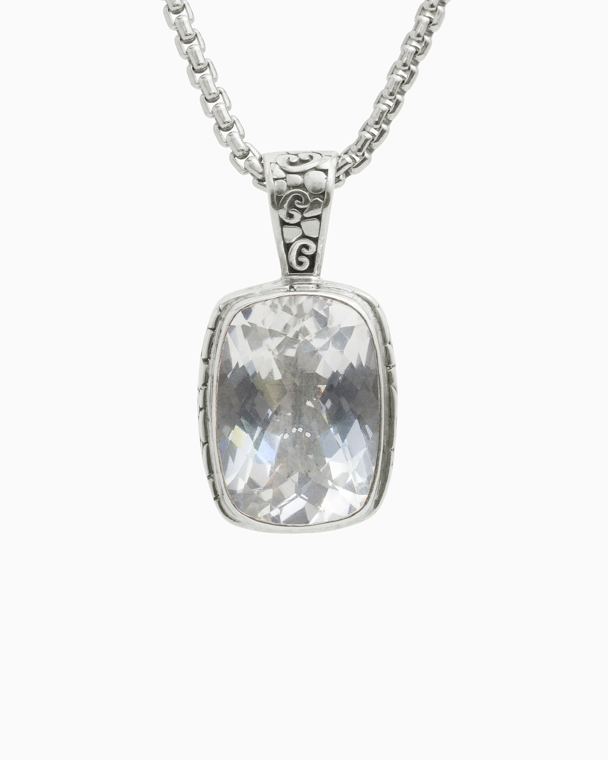 The North Star Stone Pendant is a statement piece that will add a playful touch to your look. Featuring a faceted white topaz stone set in sterling silver and our signature turtle texture with petroglyphs. Pair with your favorite chain, sold separately.