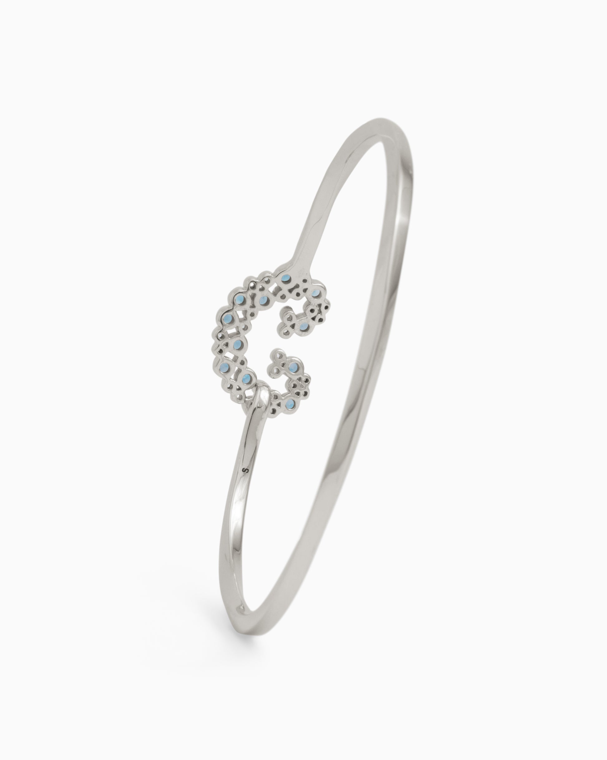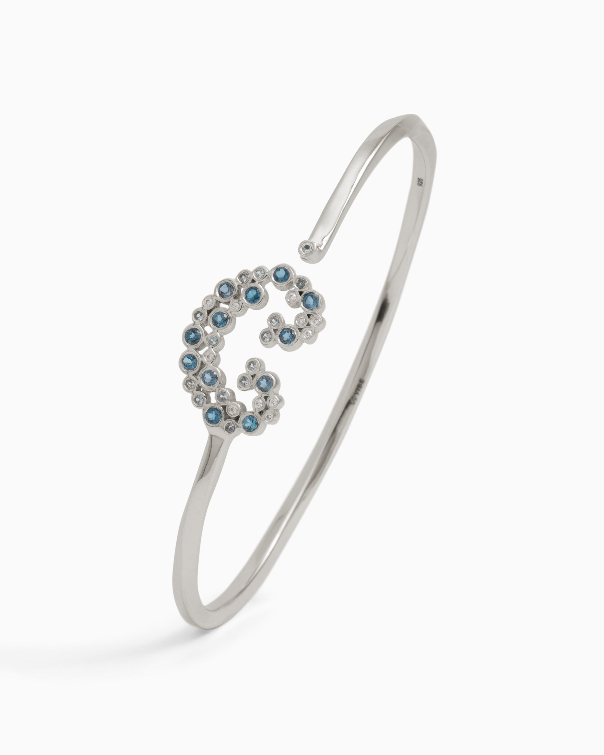 A playful take on our signature petroglyph, this bracelet is handcrafted in sterling silver and set with an array of London blue topaz, Hampton blue topaz, and white zircon stones. A bubbly accent piece that’s perfectly stackable, or eye-catching all on its own. Pairs beautifully with the matching Ocean Bubbles Petroglyph Pendant.