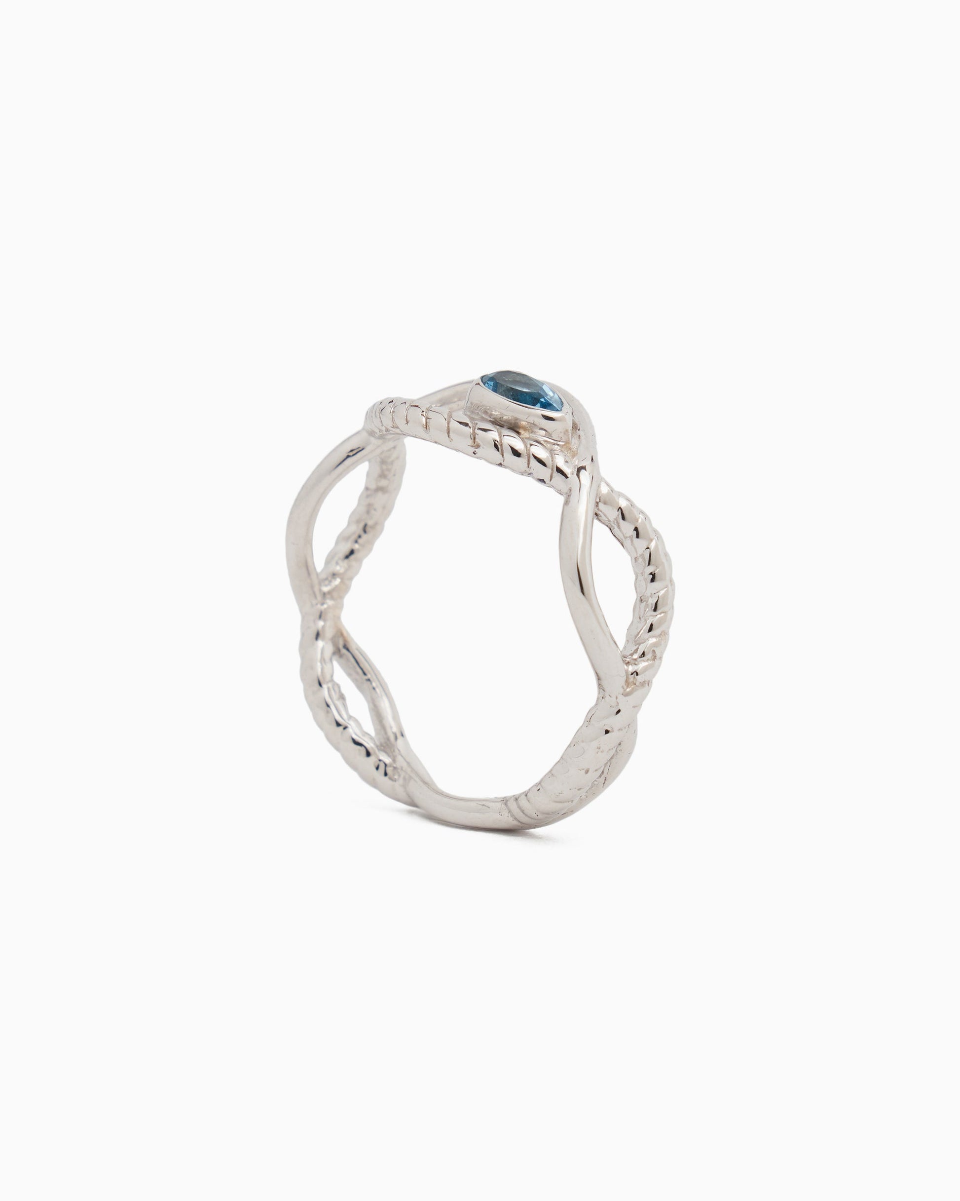 Follow the current of the ocean with the Ocean Current Ring. This unique piece is handcrafted from sterling silver with a wave and rope-inspired band and features a luminous Hampton blue topaz stone.
