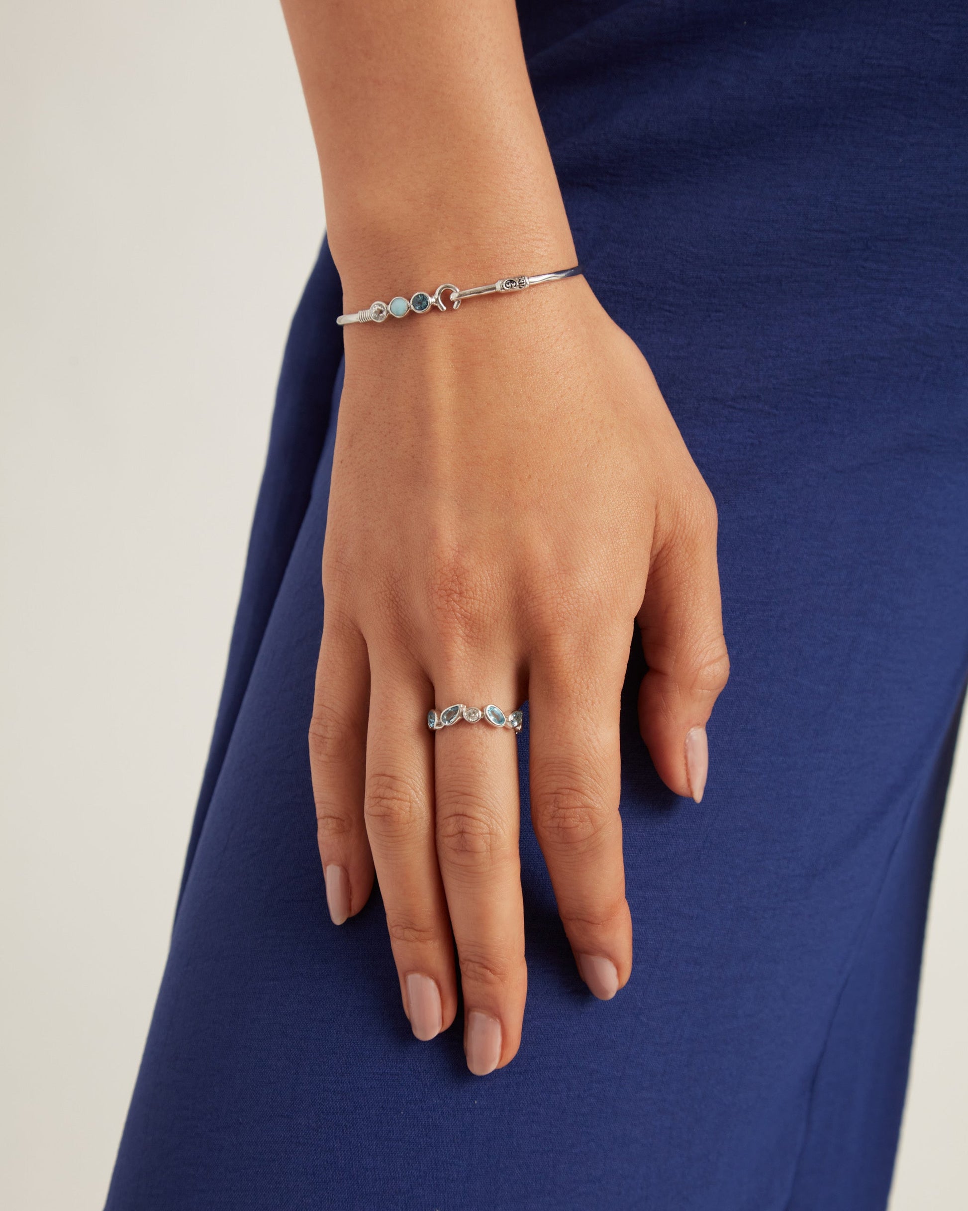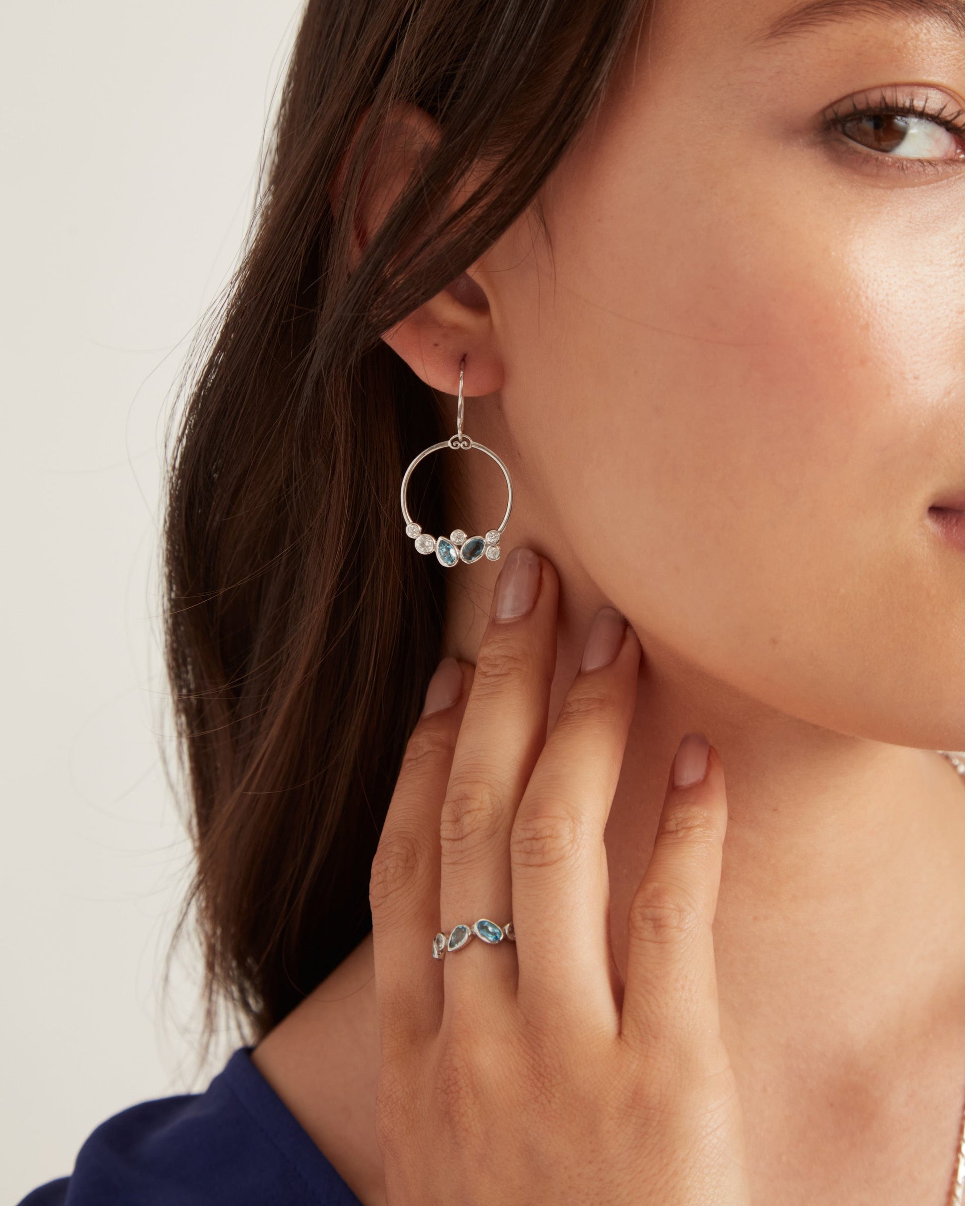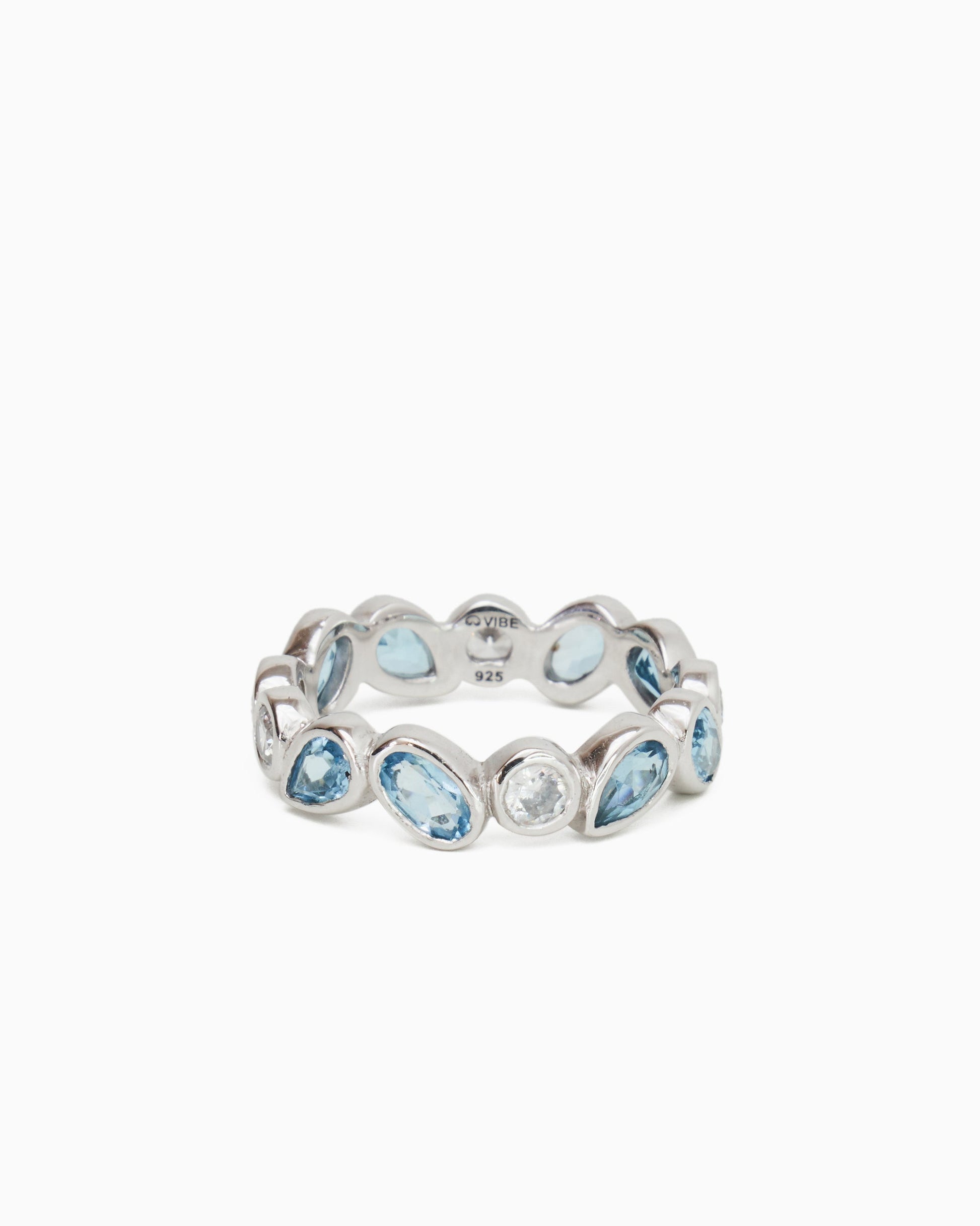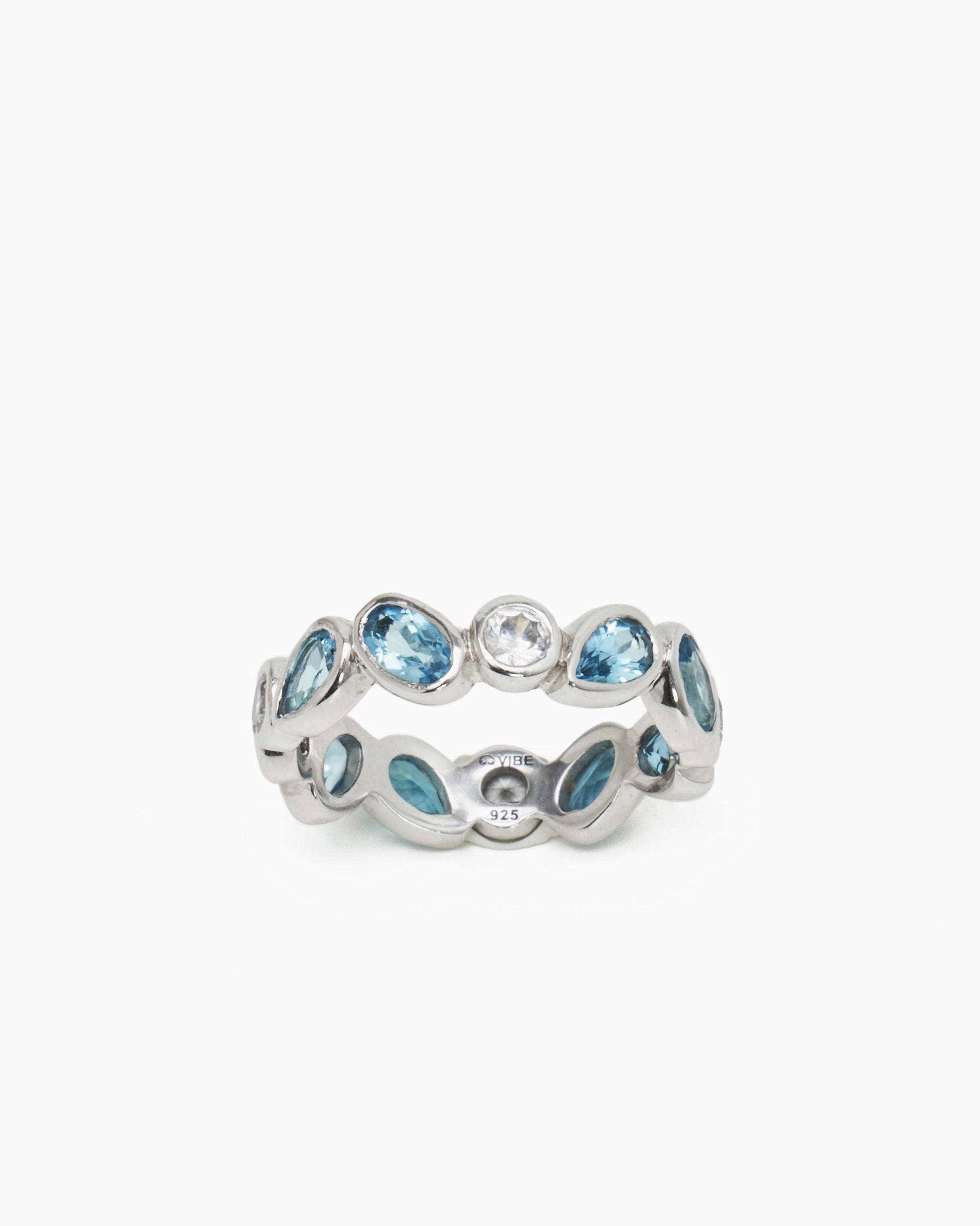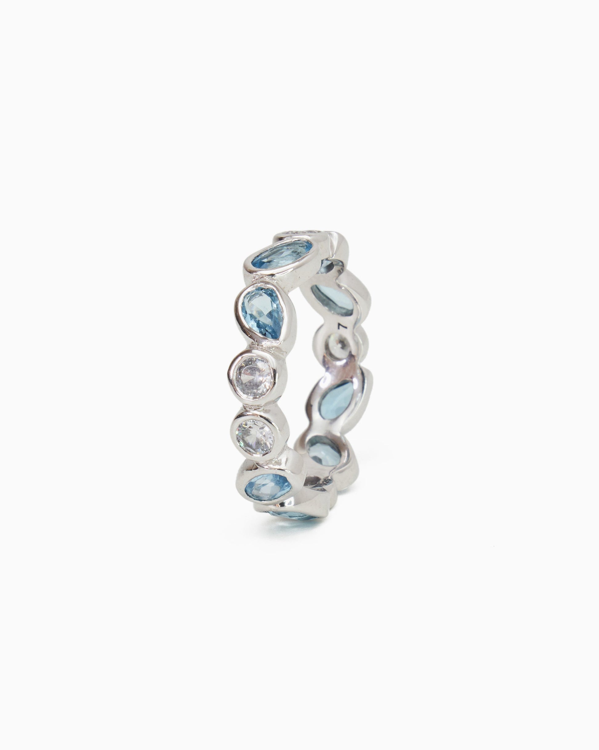 The Ocean Stone Ring features a contemporary design, adorned with an array of uniquely shaped Hampton blue topaz and white zircon stones. Inspired by the ocean, this ring effortlessly elevates your everyday style with its modern and meaningful essence.
