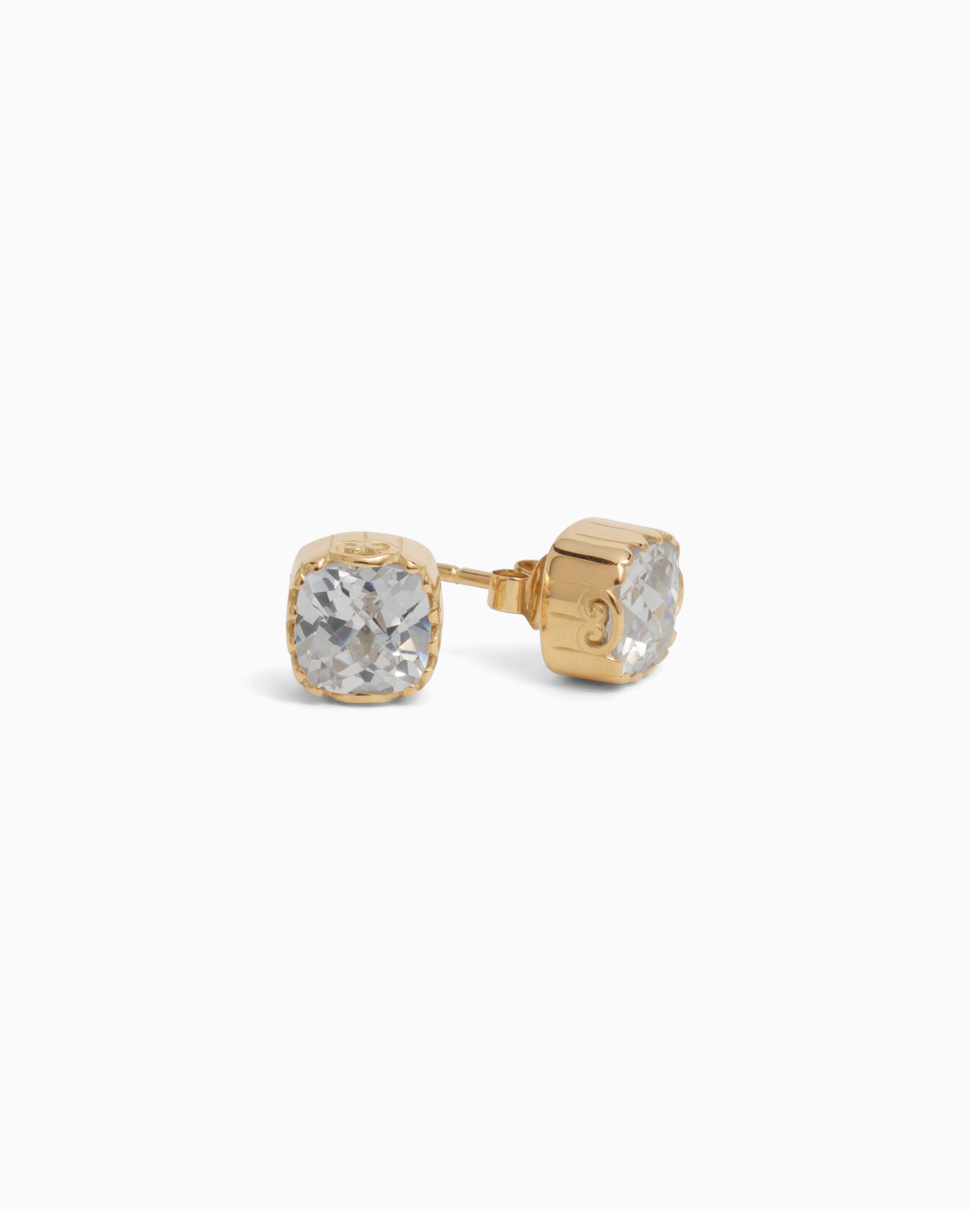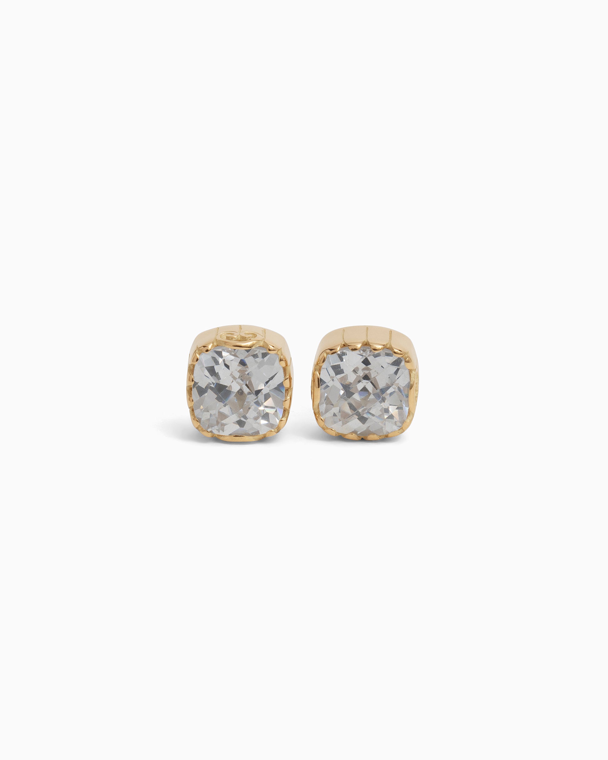 The Ocean Stone Studs are handcrafted in 14K solid gold and feature a faceted white zircon stone in a wave-like setting. With a petroglyph replica on the side of each stud, these earrings are the perfect addition to your everyday jewelry collection that will be a constant reminder of the beautiful island.