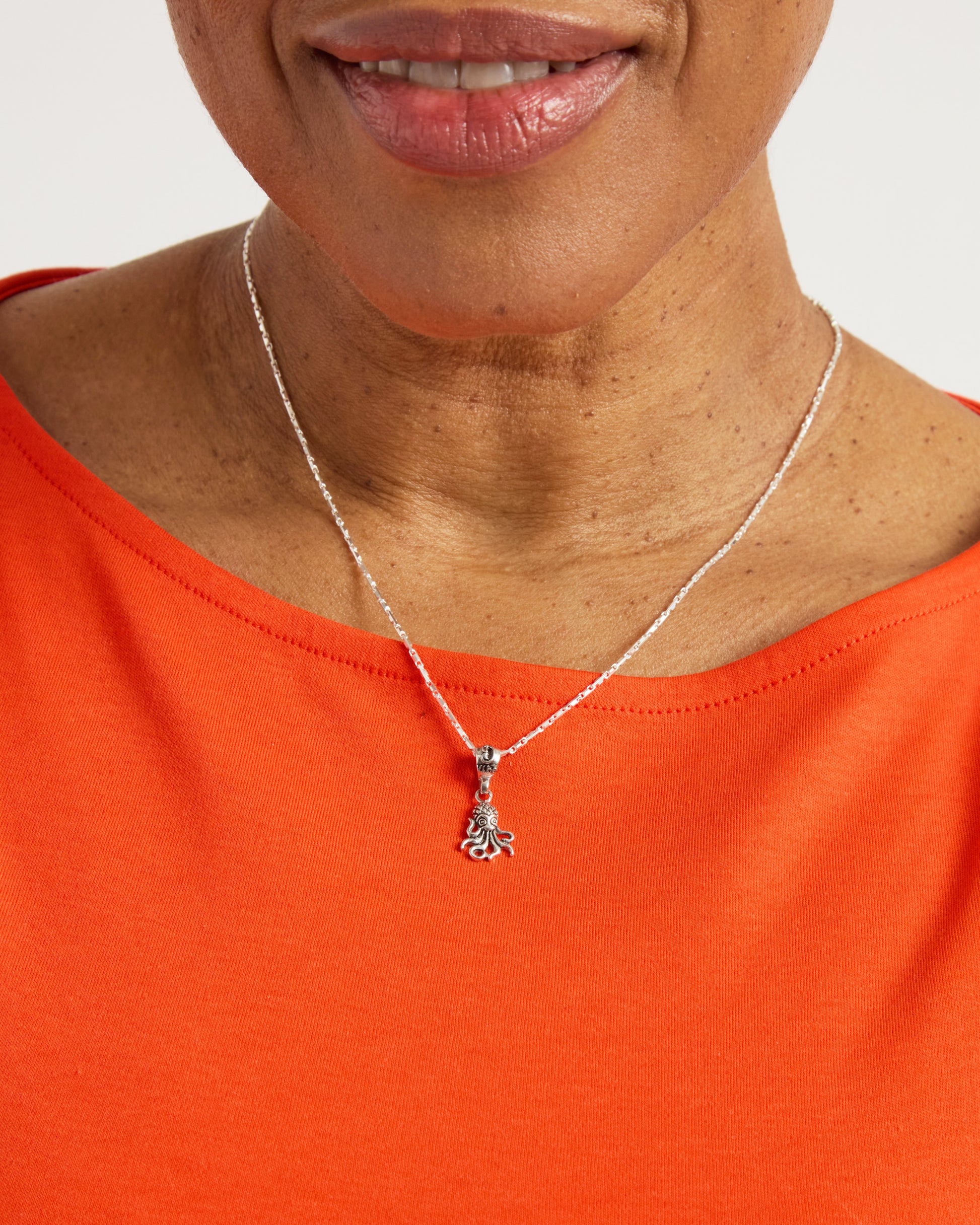 Vibe's whimsical sterling silver Octopus Charm is perfect for those who love the ocean and is a wonderful reminder of time spent on St. John. Octopi are symbolic of diversity and insight. Pair with your favorite hook bracelet or dainty chain, sold separately.