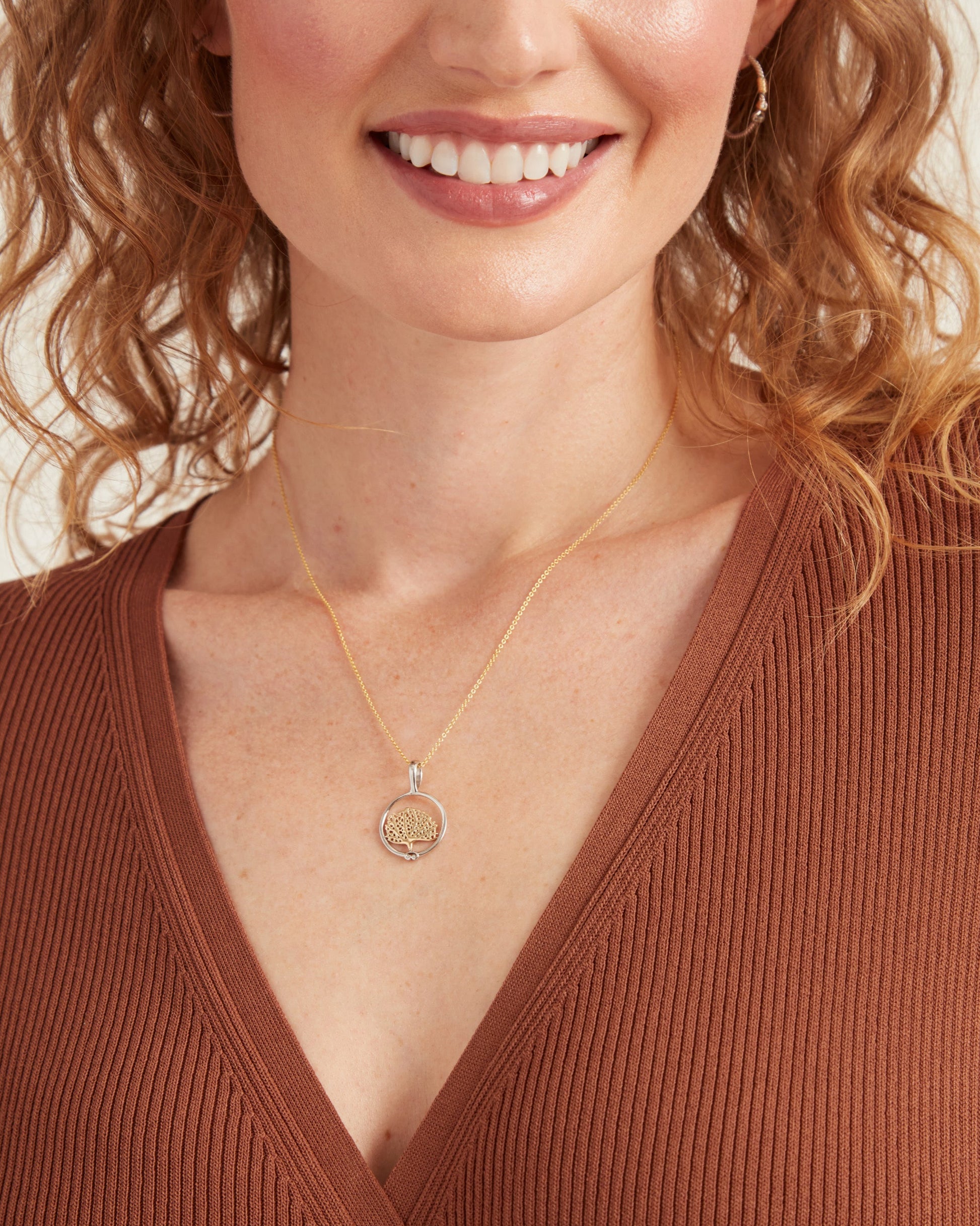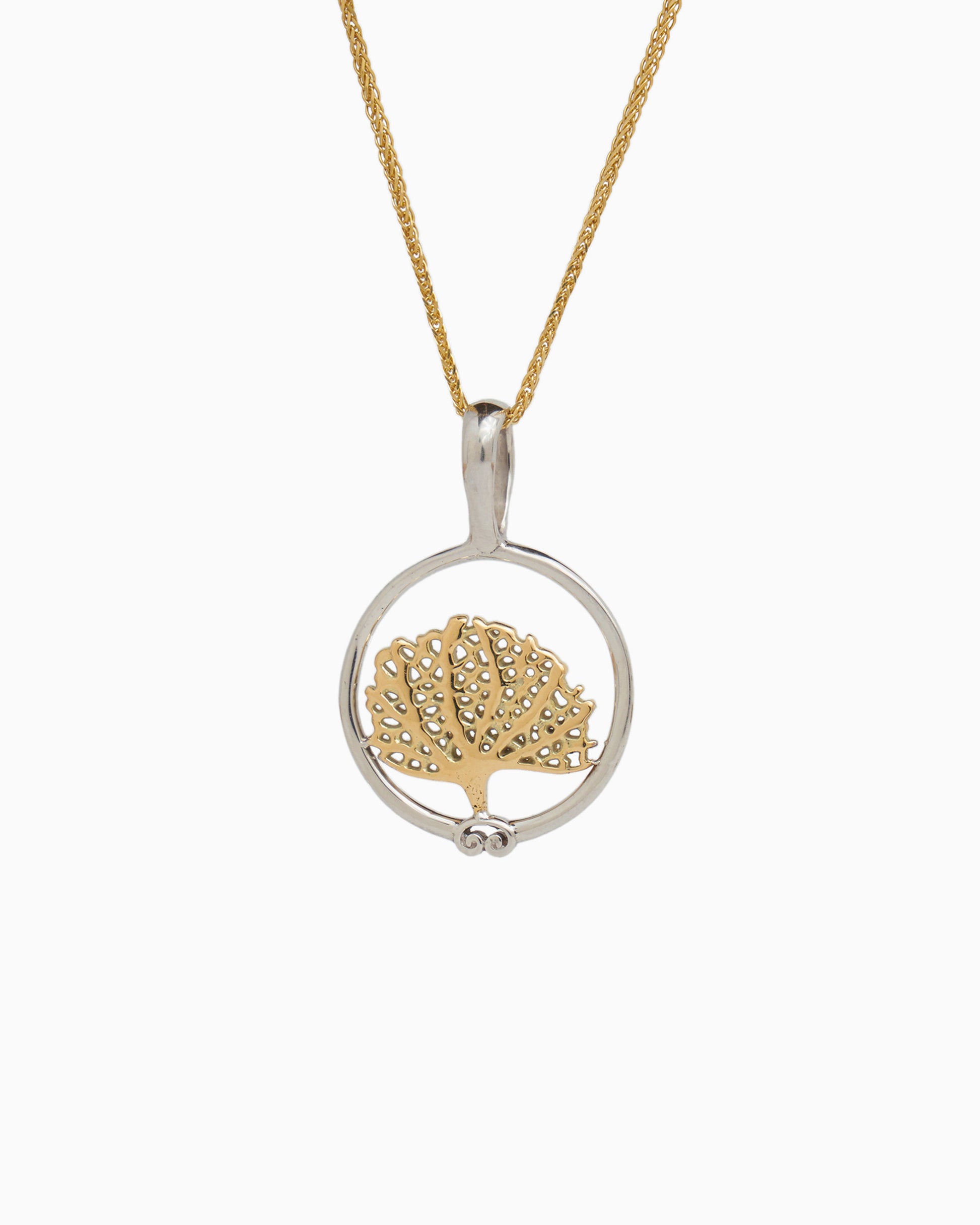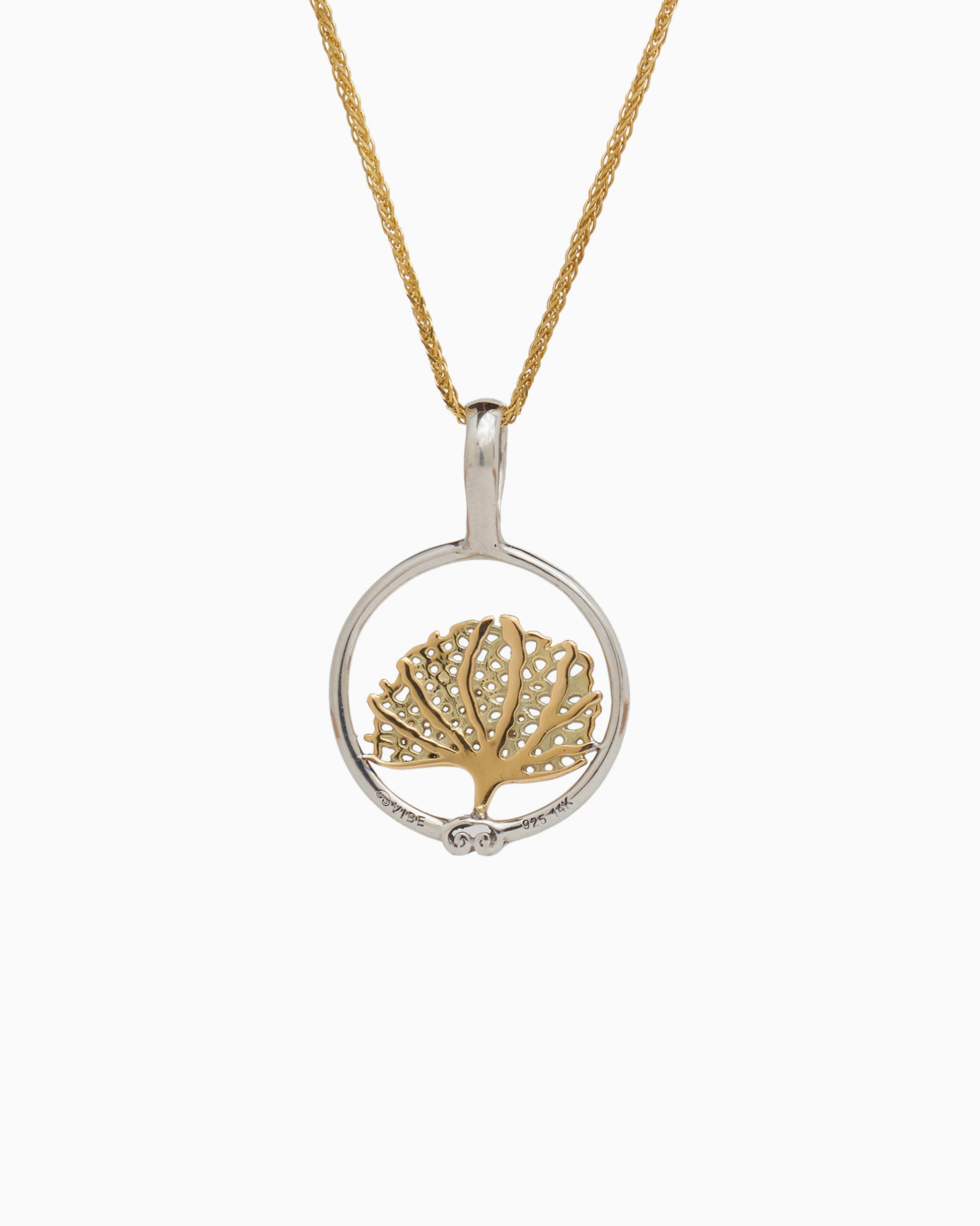 The One Love Sea Fan Pendant is an ocean-inspired piece handcrafted from hammered sterling silver and 14K solid gold. Part of our One Love collection, this pendant features an eternal round circle of love with a 14K gold sea fan centerpiece.
