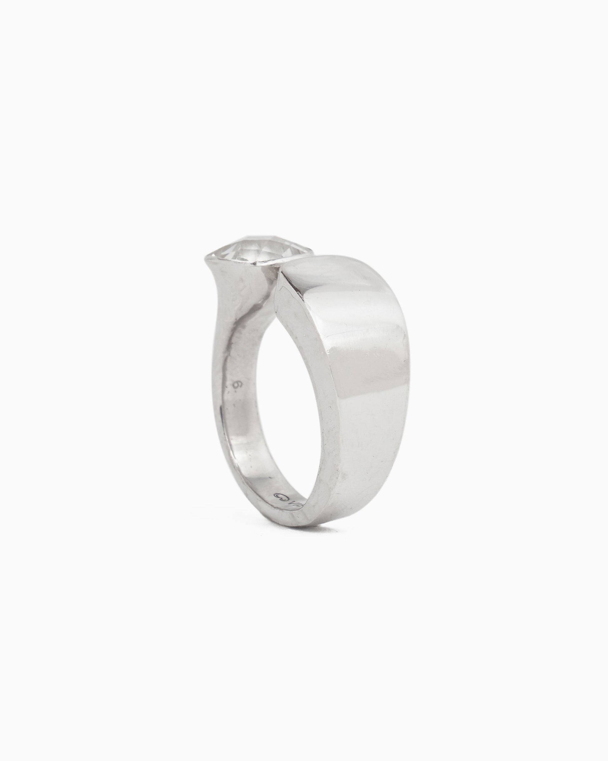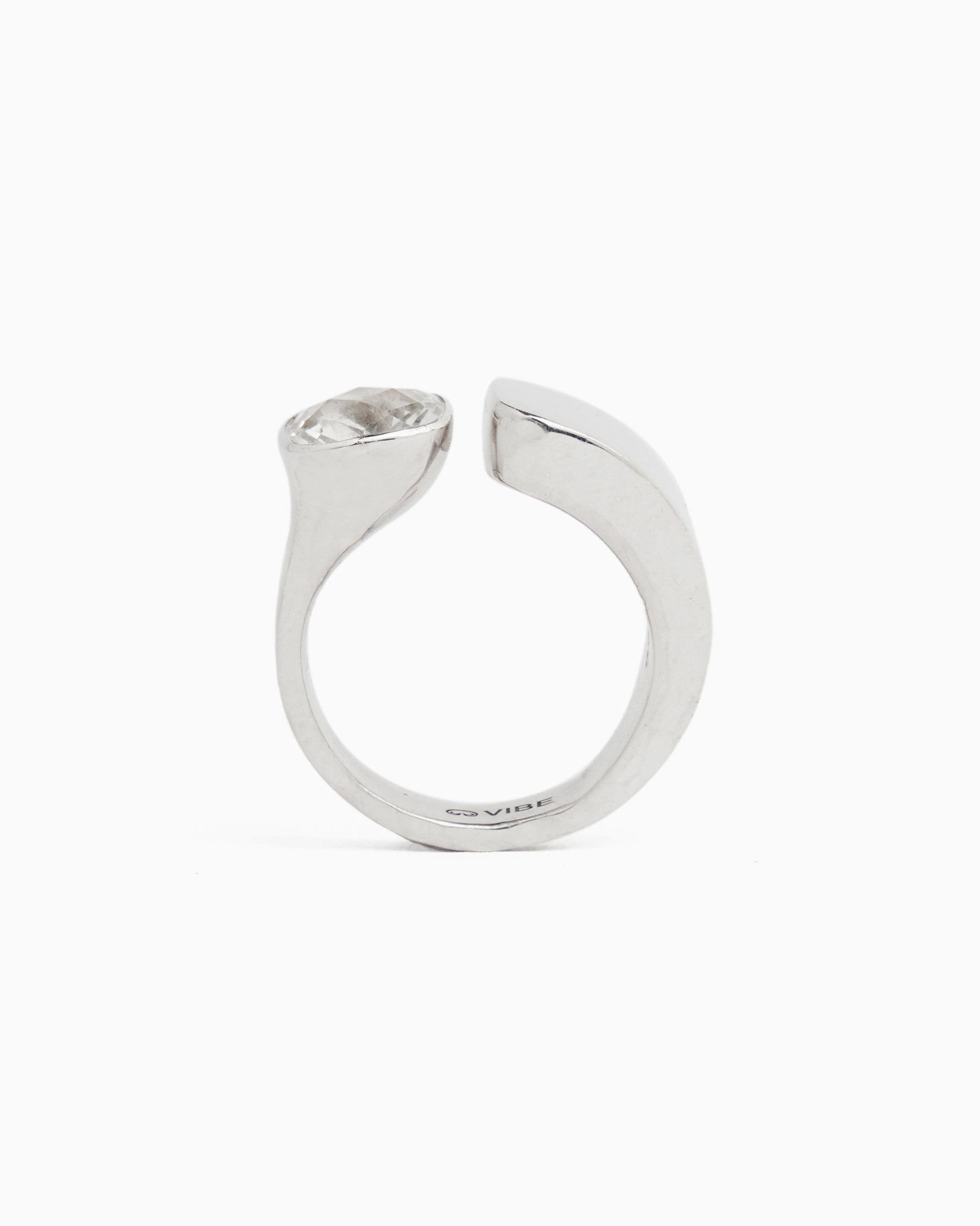 The Open Band Stone Ring is handcrafted with sterling silver and features a faceted white zircon stone. The opening in the center adds a unique touch. Elevate your style effortlessly by adding this versatile ring to your collection, ensuring you always have the perfect finishing touch for any outfit.