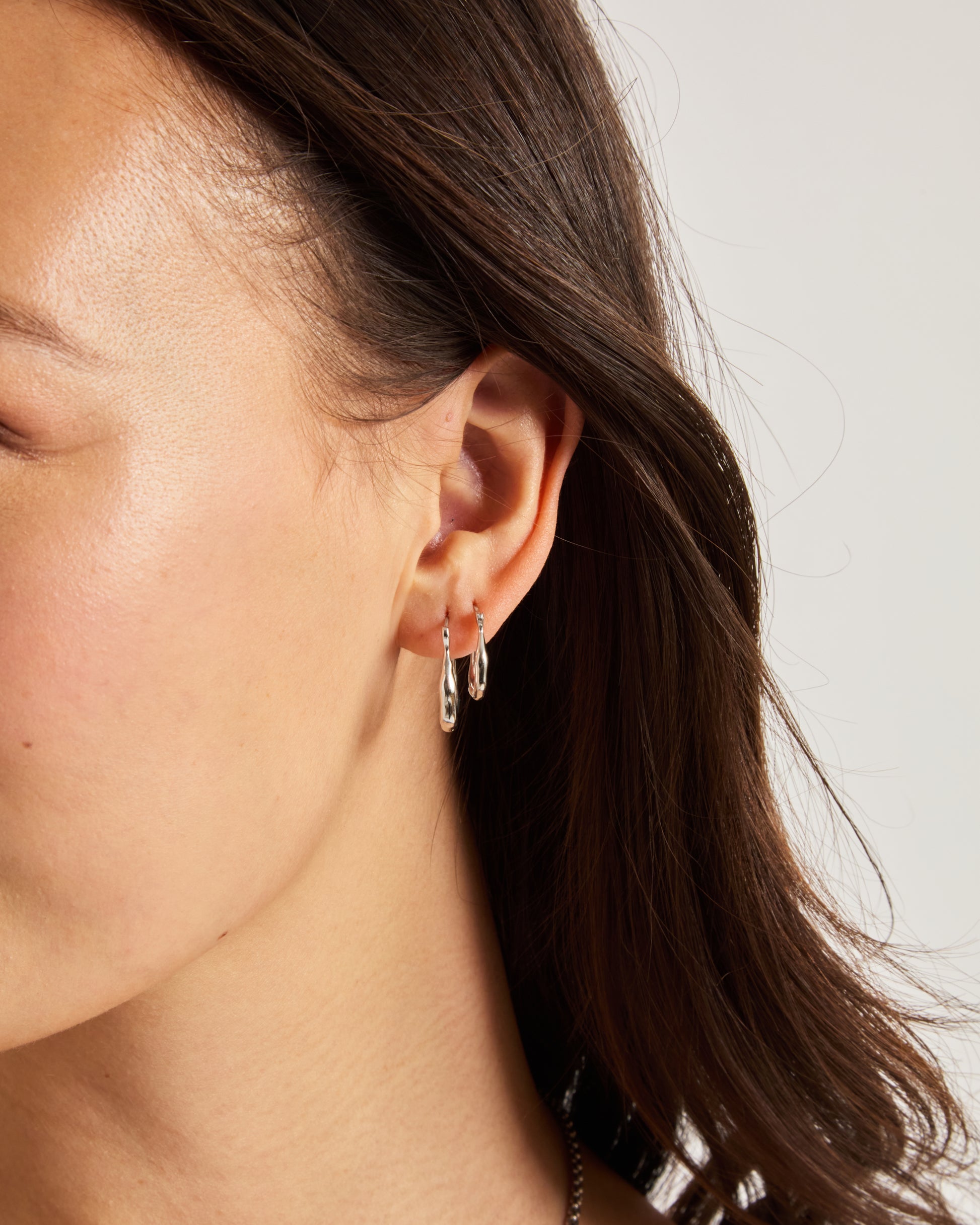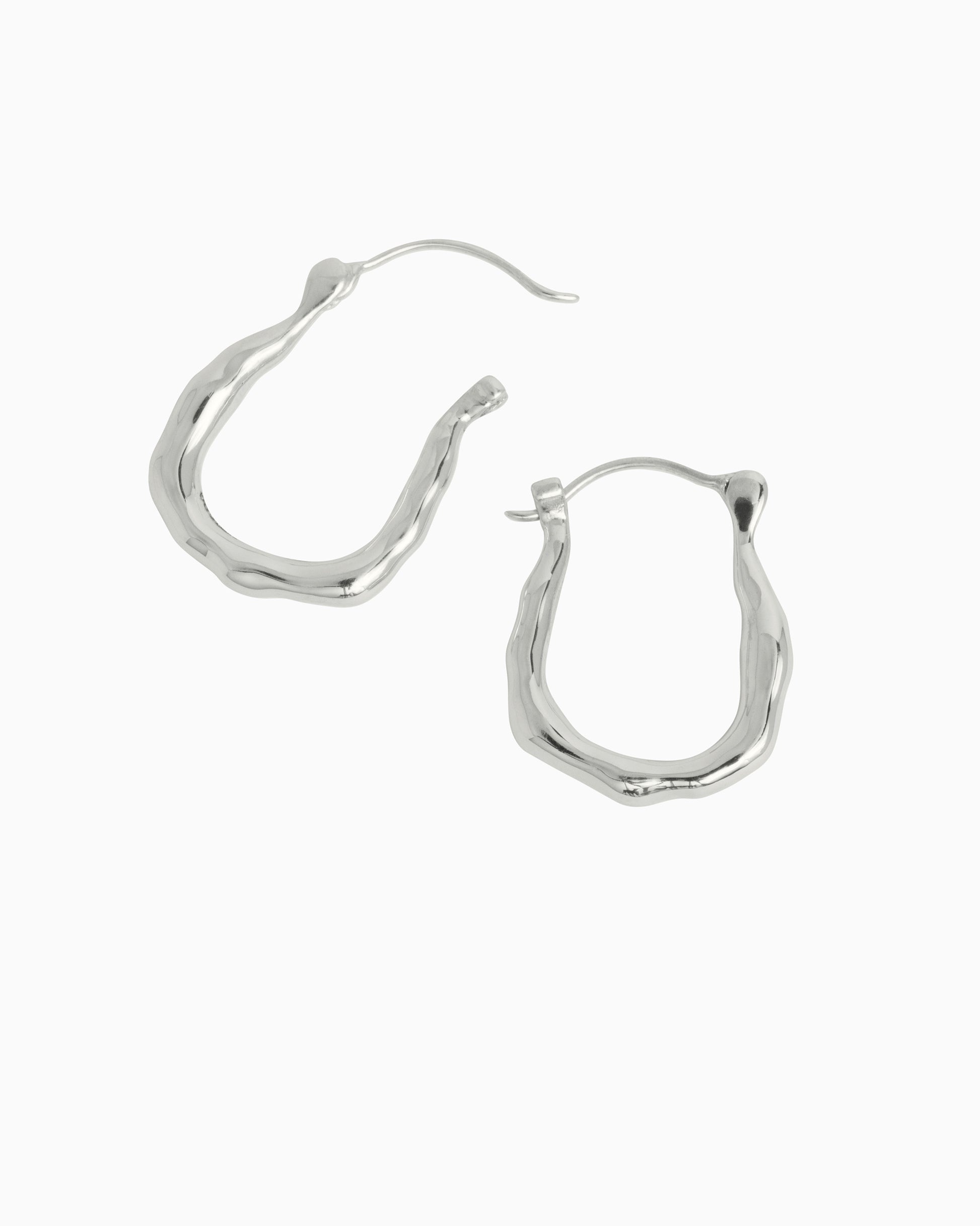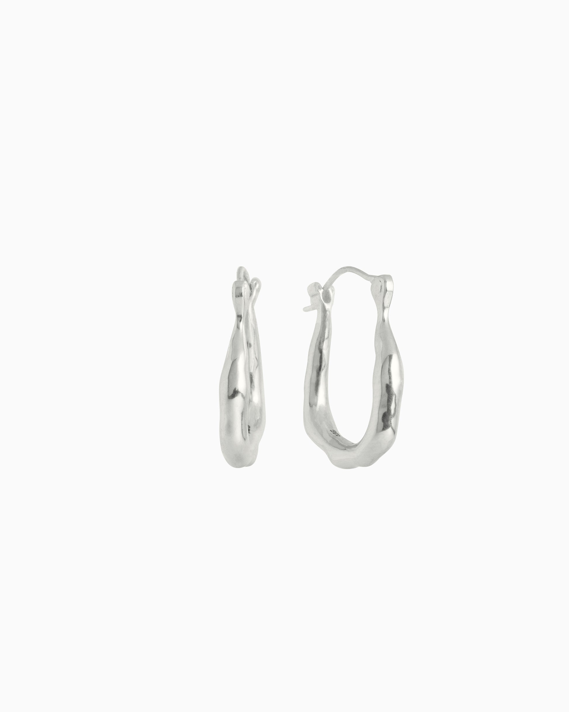 The Organic Hammered Hoop Earrings are crafted in sterling silver with a fluid, sculptural shape and a soft hammered finish that catches the light from every angle. Lightweight and easy to wear, these hoops offer an effortlessly modern take on a classic silhouette—perfect for everyday styling or layering with other earrings.
