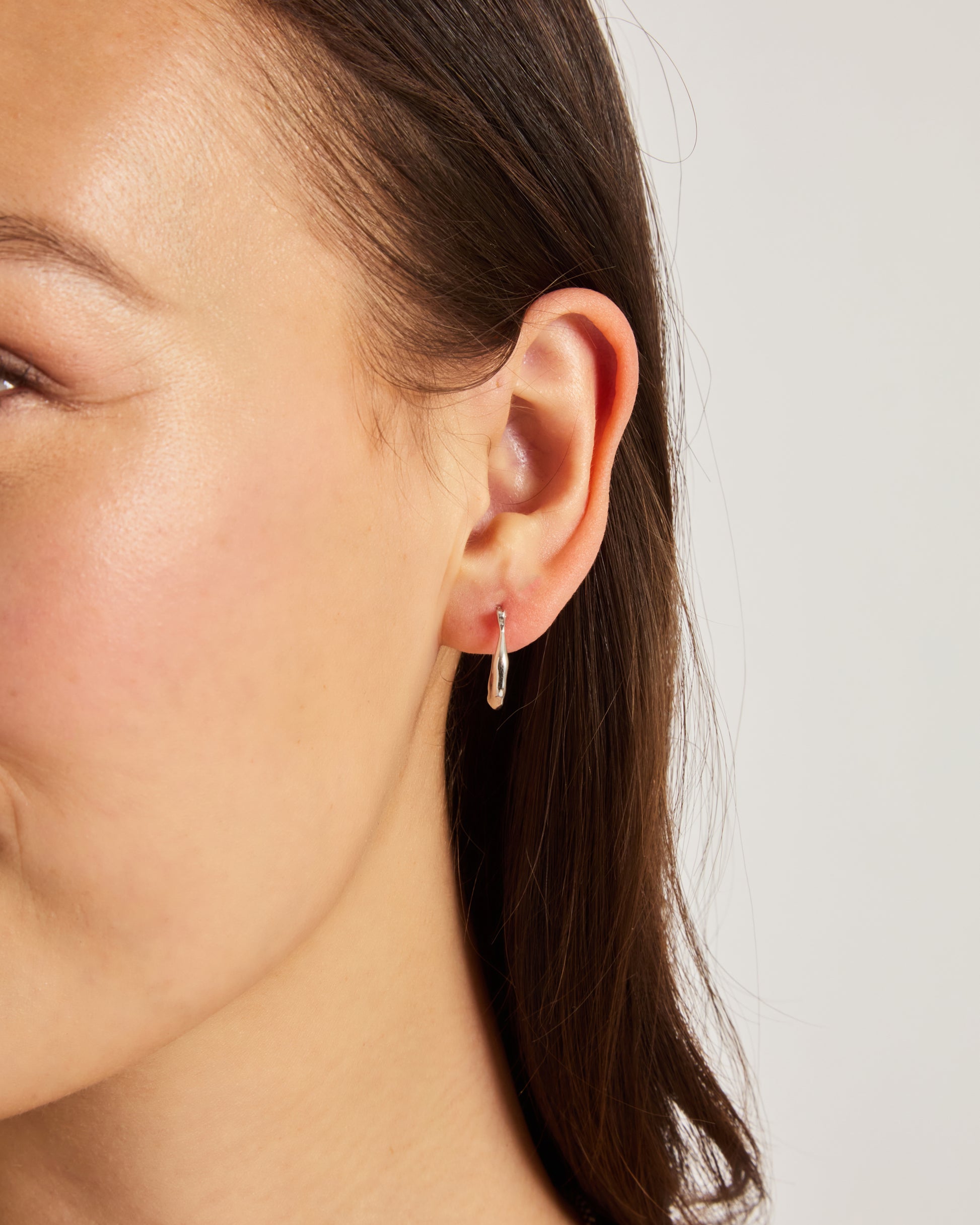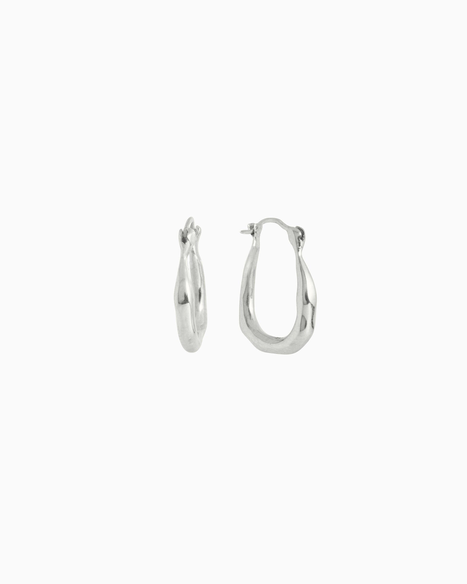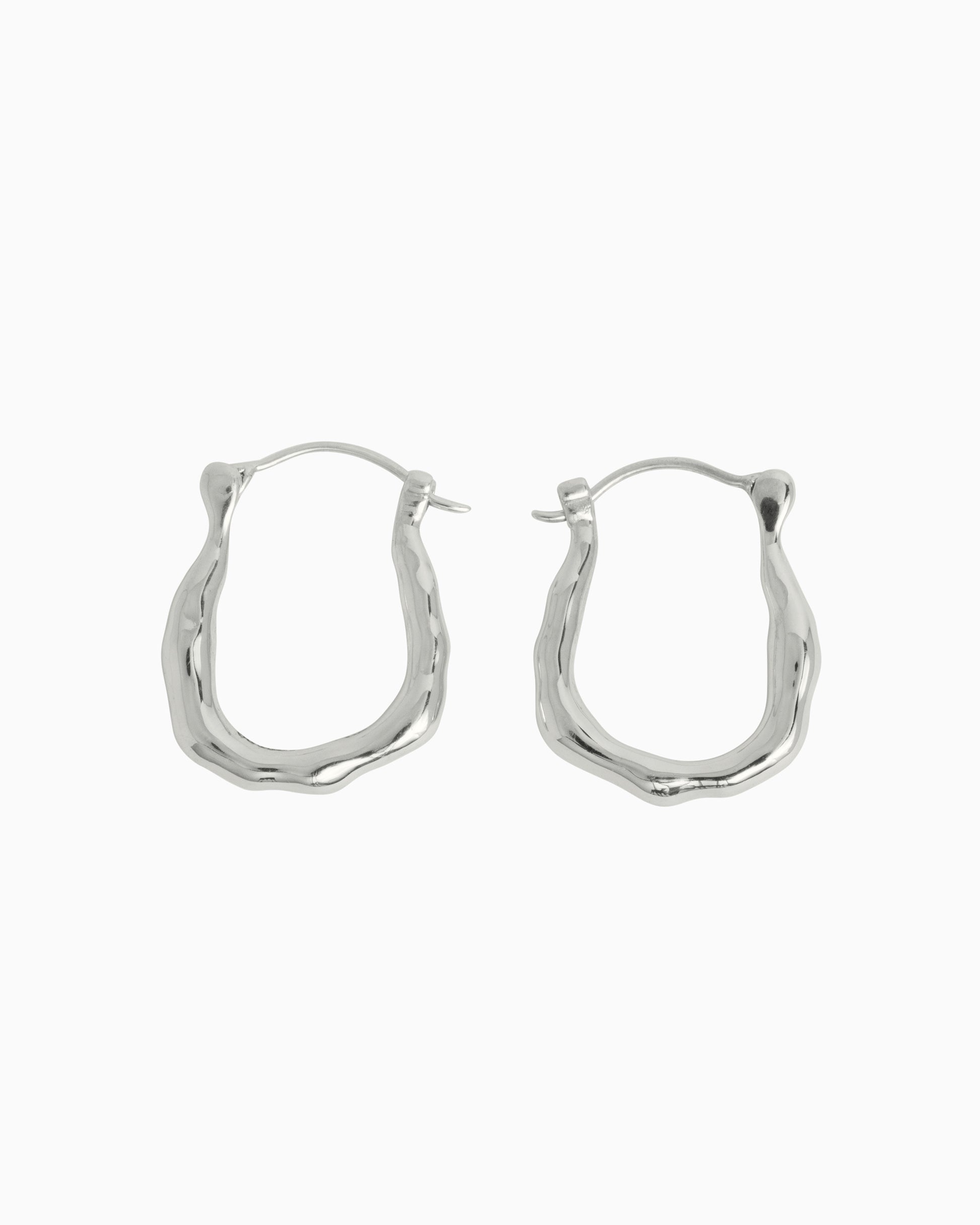 The Organic Hammered Hoop Earrings are crafted in sterling silver with a fluid, sculptural shape and a soft hammered finish that catches the light from every angle. Lightweight and easy to wear, these hoops offer an effortlessly modern take on a classic silhouette—perfect for everyday styling or layering with other earrings.