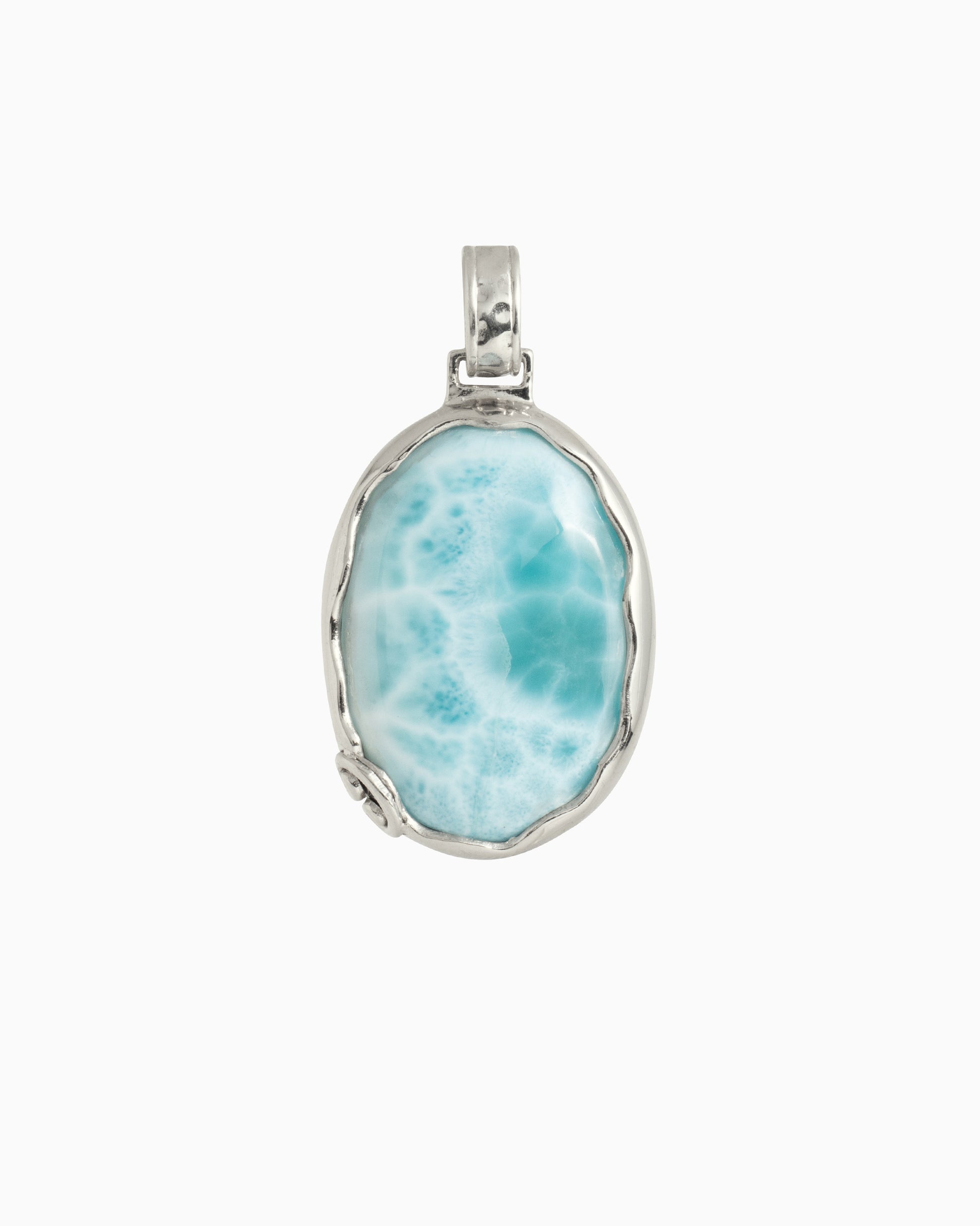 Oval Larimar Pendant with Open Petroglyph