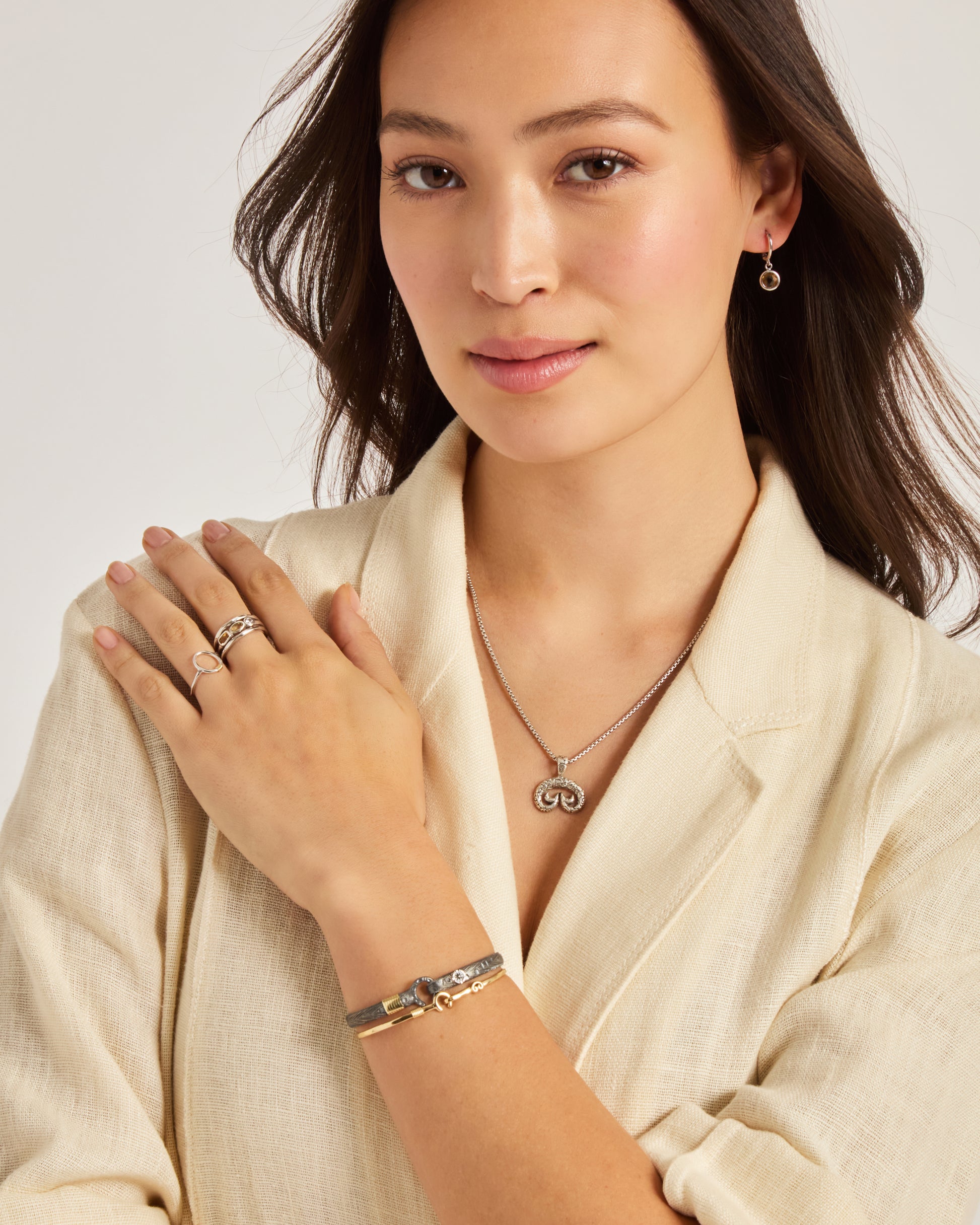 The Hammered Petroglyph Pendant is handcrafted in sterling silver and proudly showcases the symbolic island petroglyph with its surface delicately hammered to evoke the tranquil rhythm of ocean currents. Pair with your favorite chain, sold separately.