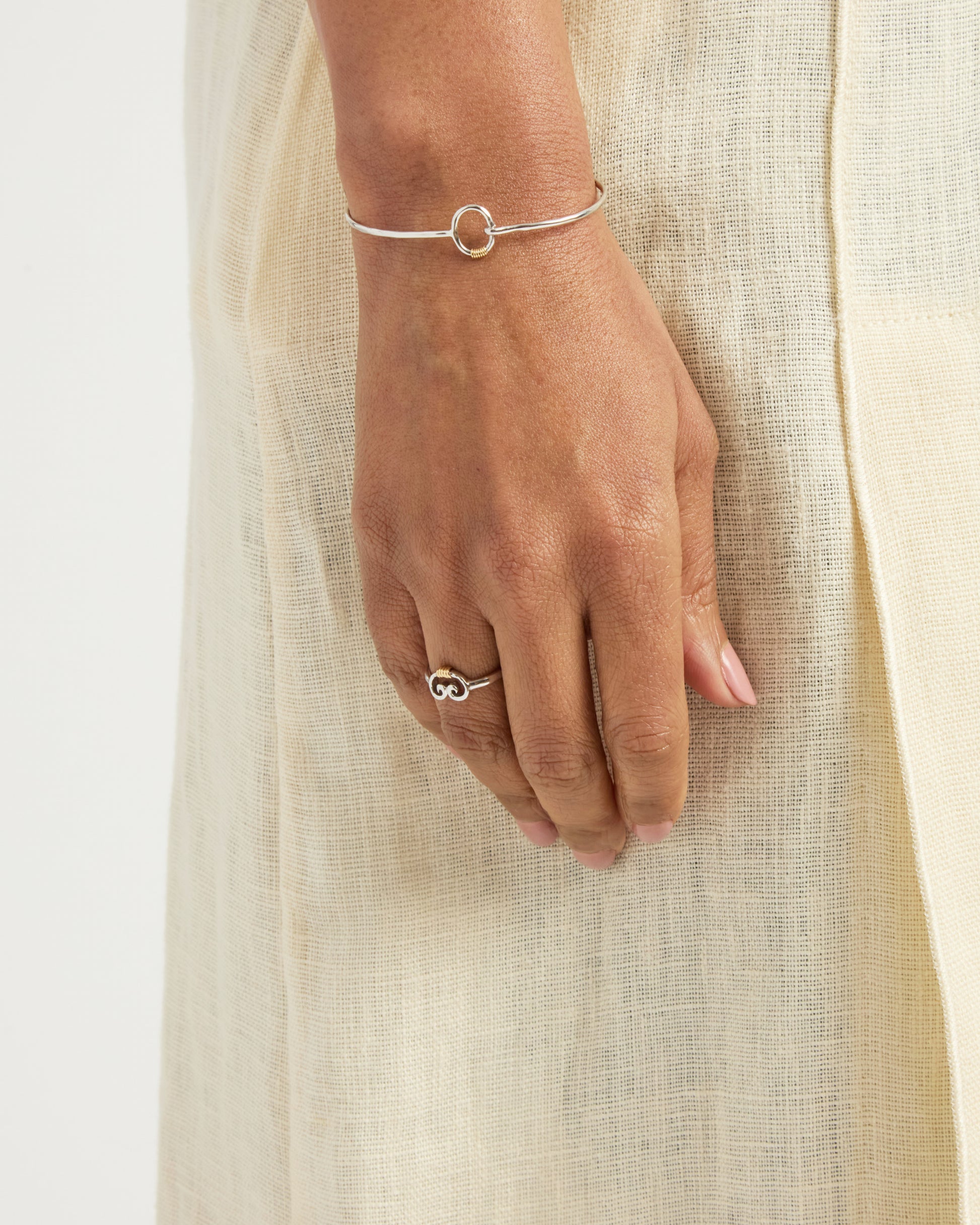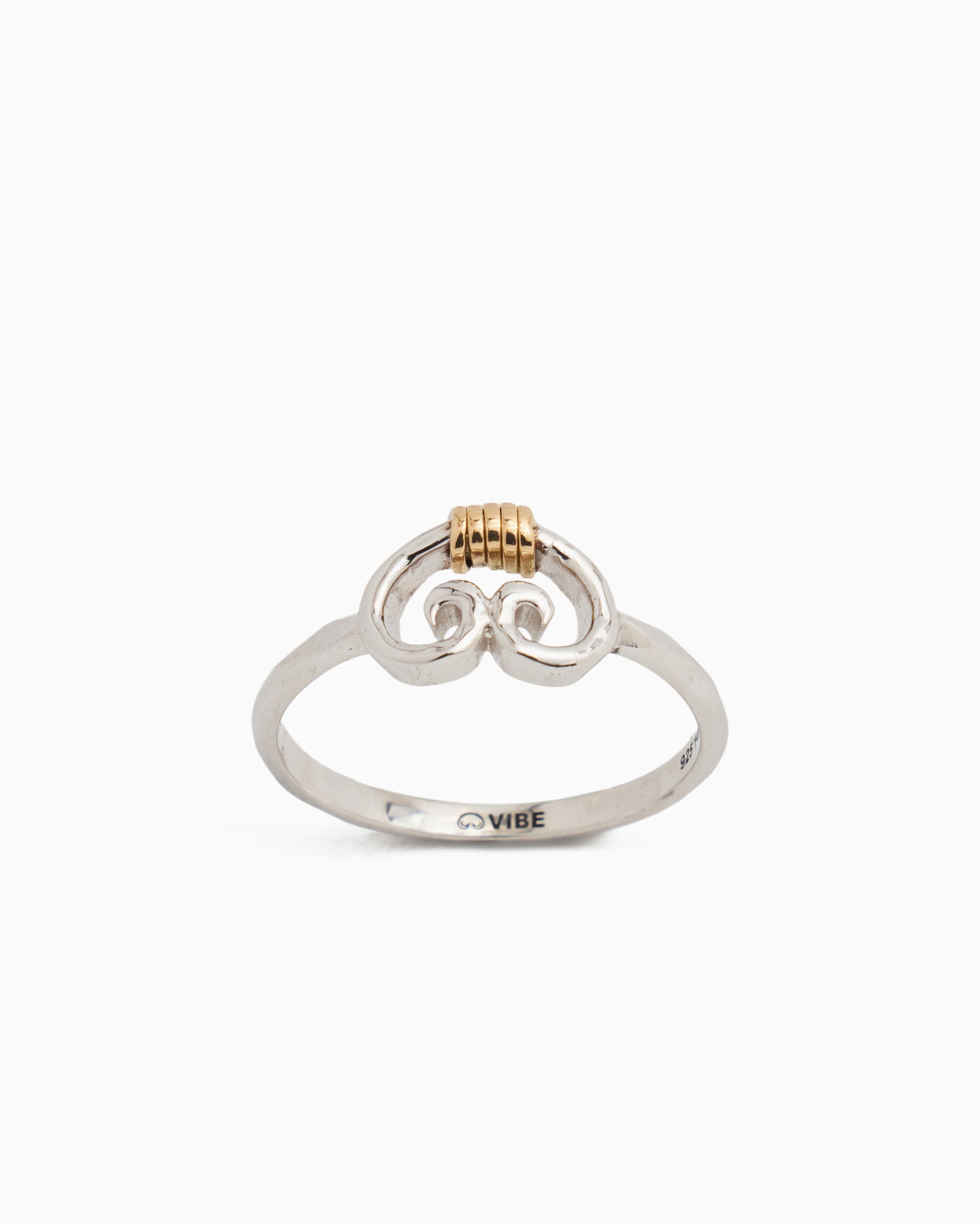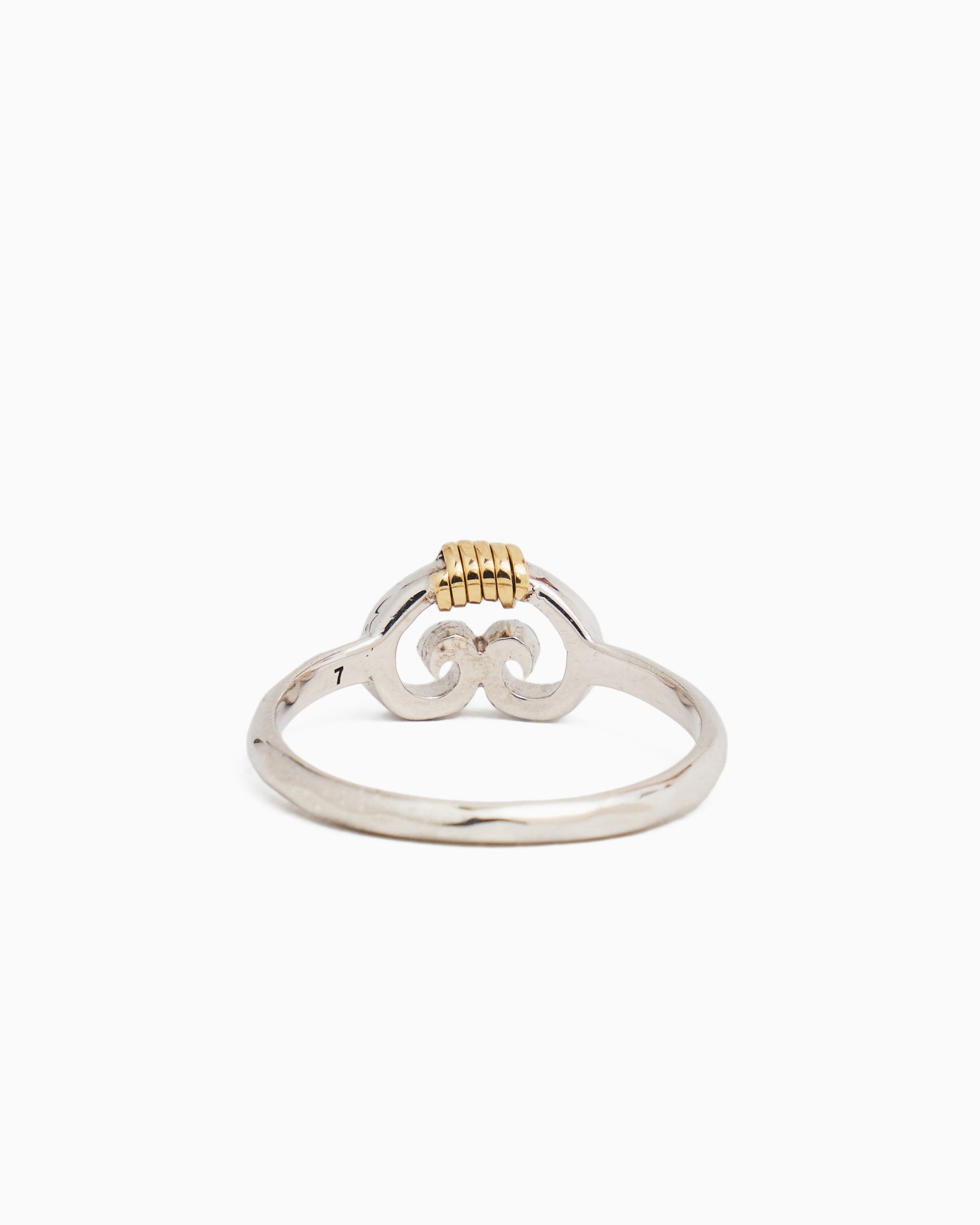 Seamlessly add the Petroglyph Ring to your everyday style. It is handcrafted with sterling silver and features 14K solid gold good luck wraps. This ring is versatile enough to be worn solo or stacked with other pieces.