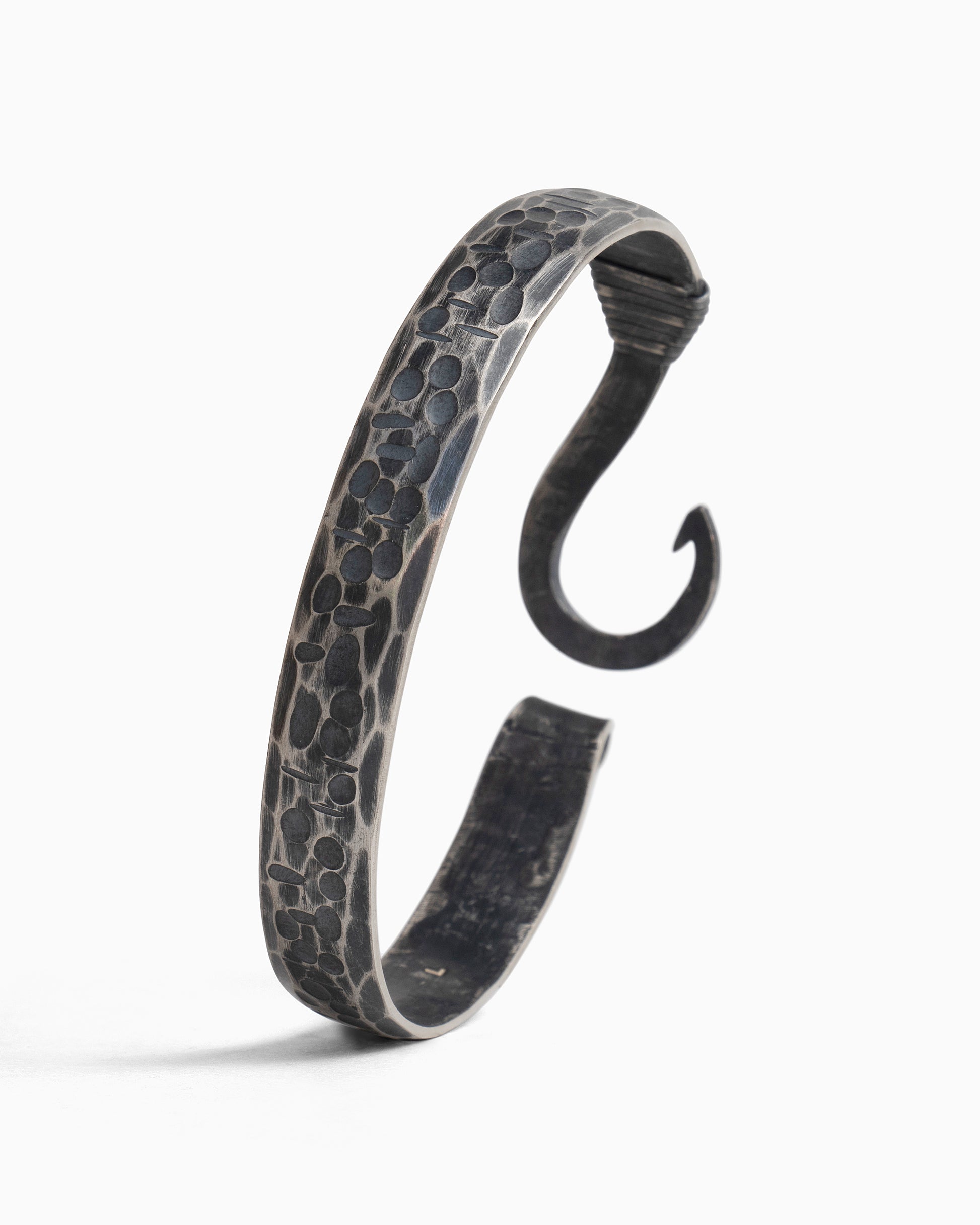 In Caribbean tradition, the fish hook design symbolizes love and hope. Fishermen's wives wore hooks facing their hearts, wishing for their husbands' safe return from the sea. With our oxidized finishes, no two are alike; each original piece is handcrafted by Vibe artisans, and markings and shades will vary.