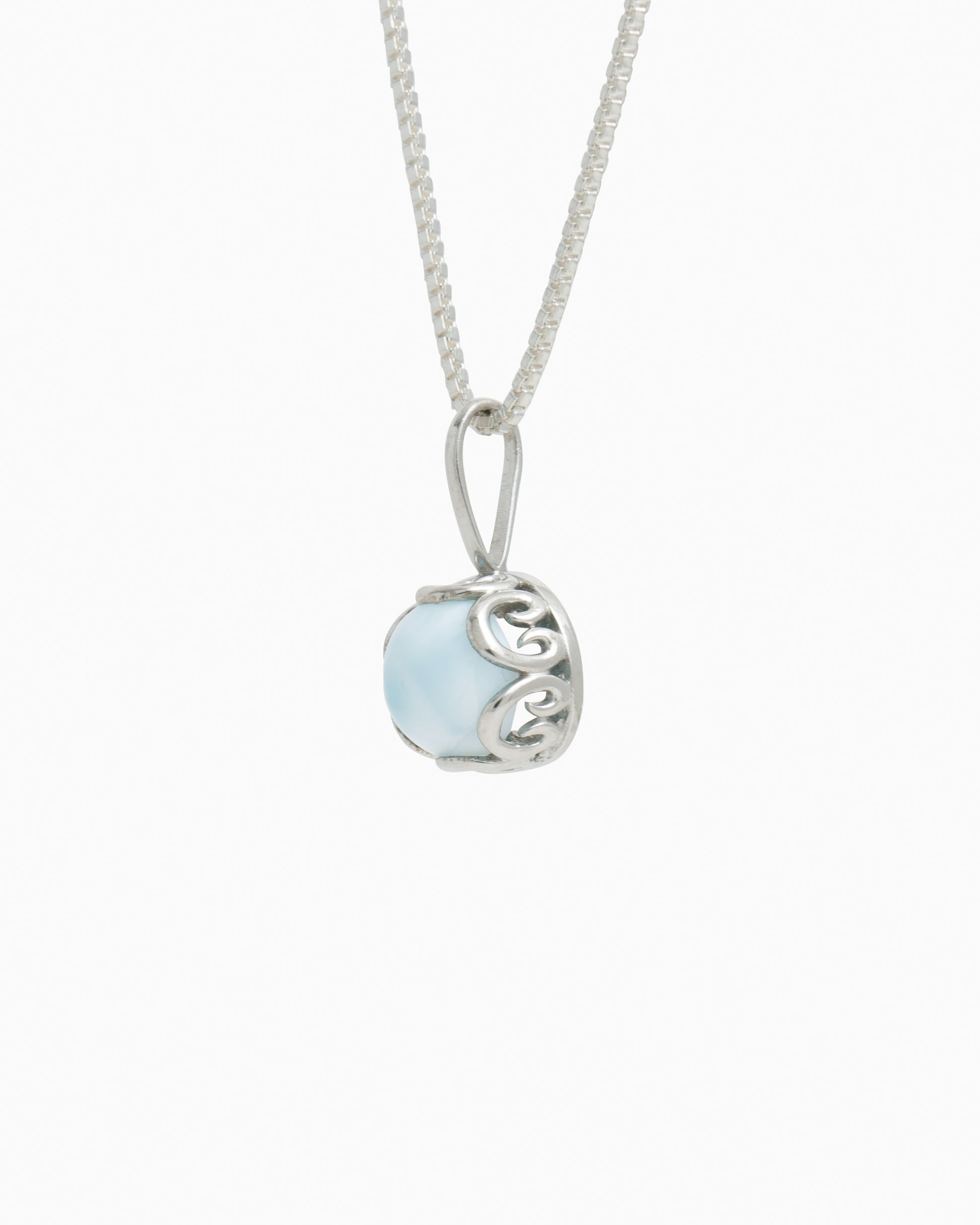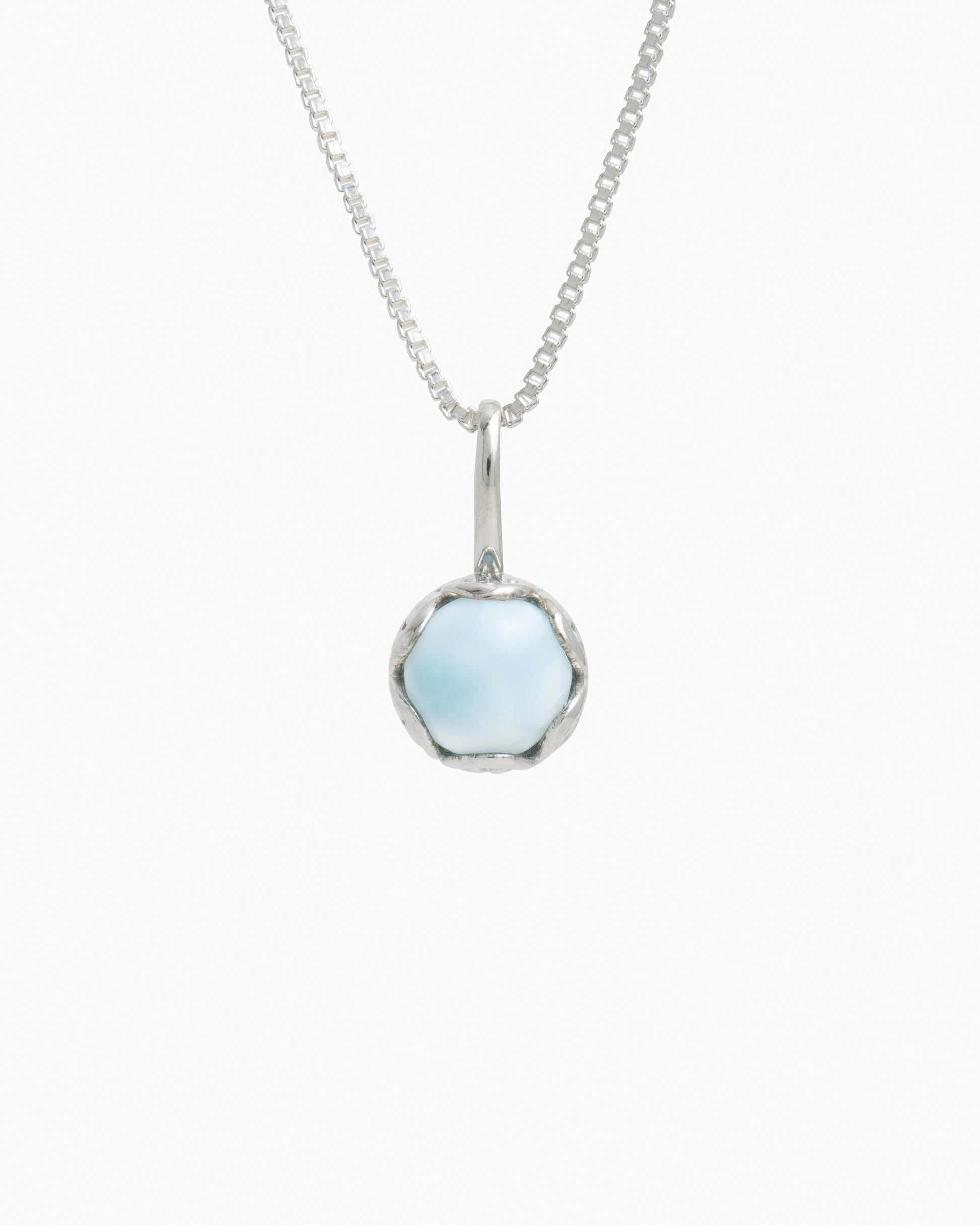 The Princess Petroglyph Stone Pendant is a great addition to your jewelry collection. Handcrafted from sterling silver, this pendant showcases a round larimar cabochon with intricate petroglyph detailing around its base. Its versatile design allows you to effortlessly pair it with casual everyday outfits or use it as the perfect finishing touch for your night-out ensemble. Pair with your favorite chain, sold separately.