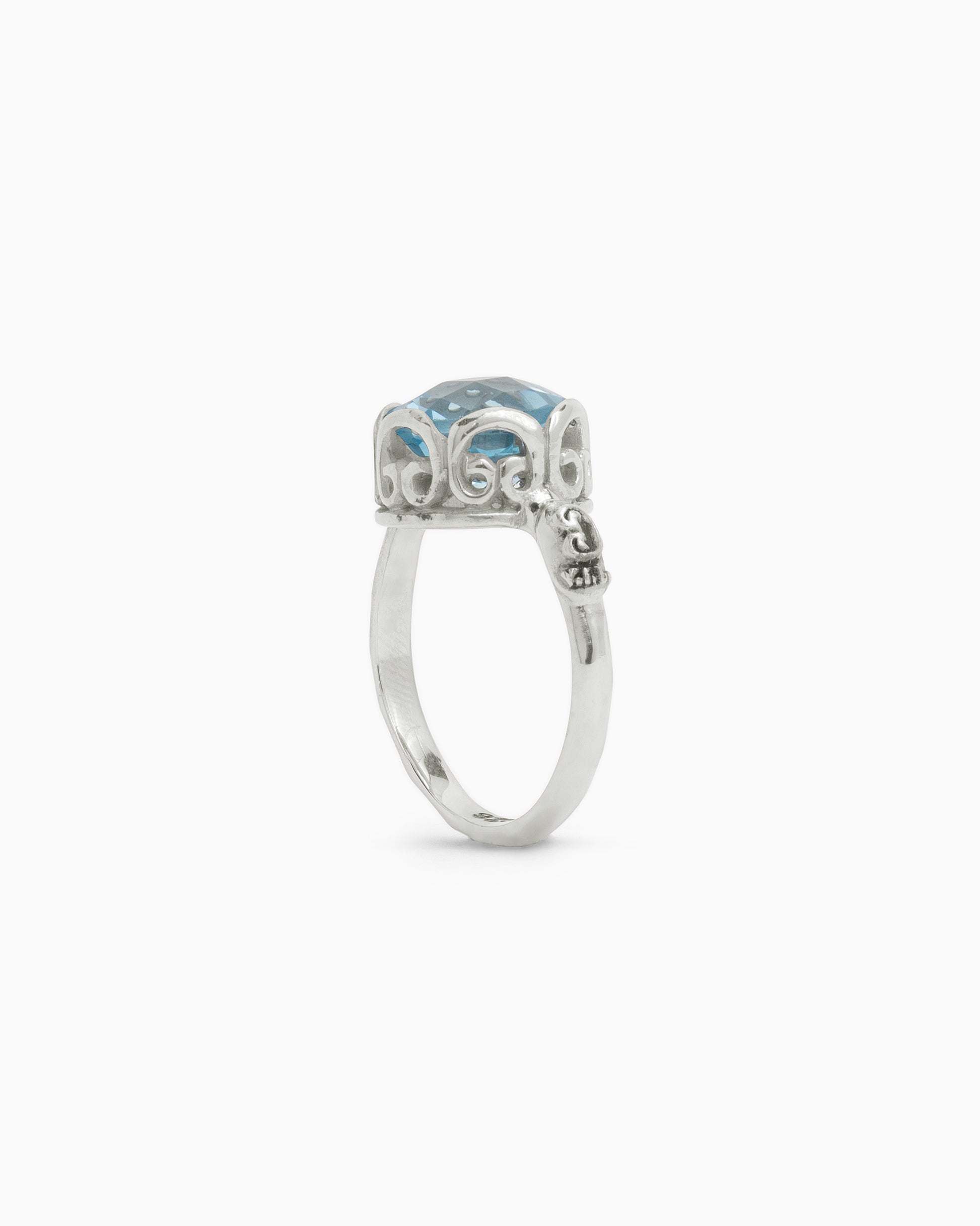 The Princess Petroglyph Stone Ring is a great addition to your jewelry collection. Handcrafted from sterling silver, this ring showcases a faceted round sky blue topaz stone with intricate petroglyph detailing around its base. Its versatile design allows you to effortlessly pair it with casual everyday outfits or use it as the perfect finishing touch for your night-out ensemble. Pair with the Large Princess Petroglyph Stone Studs to complete the look.