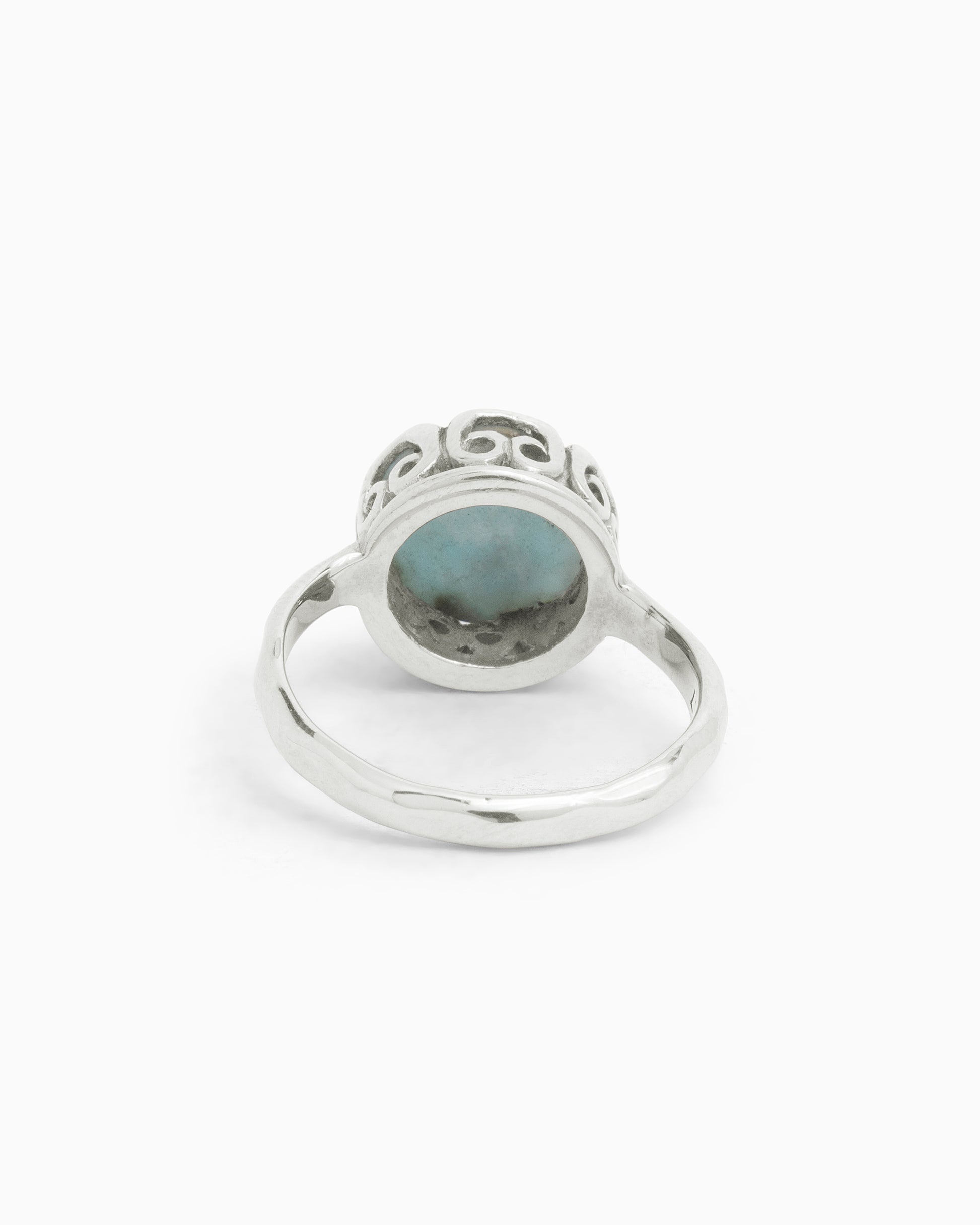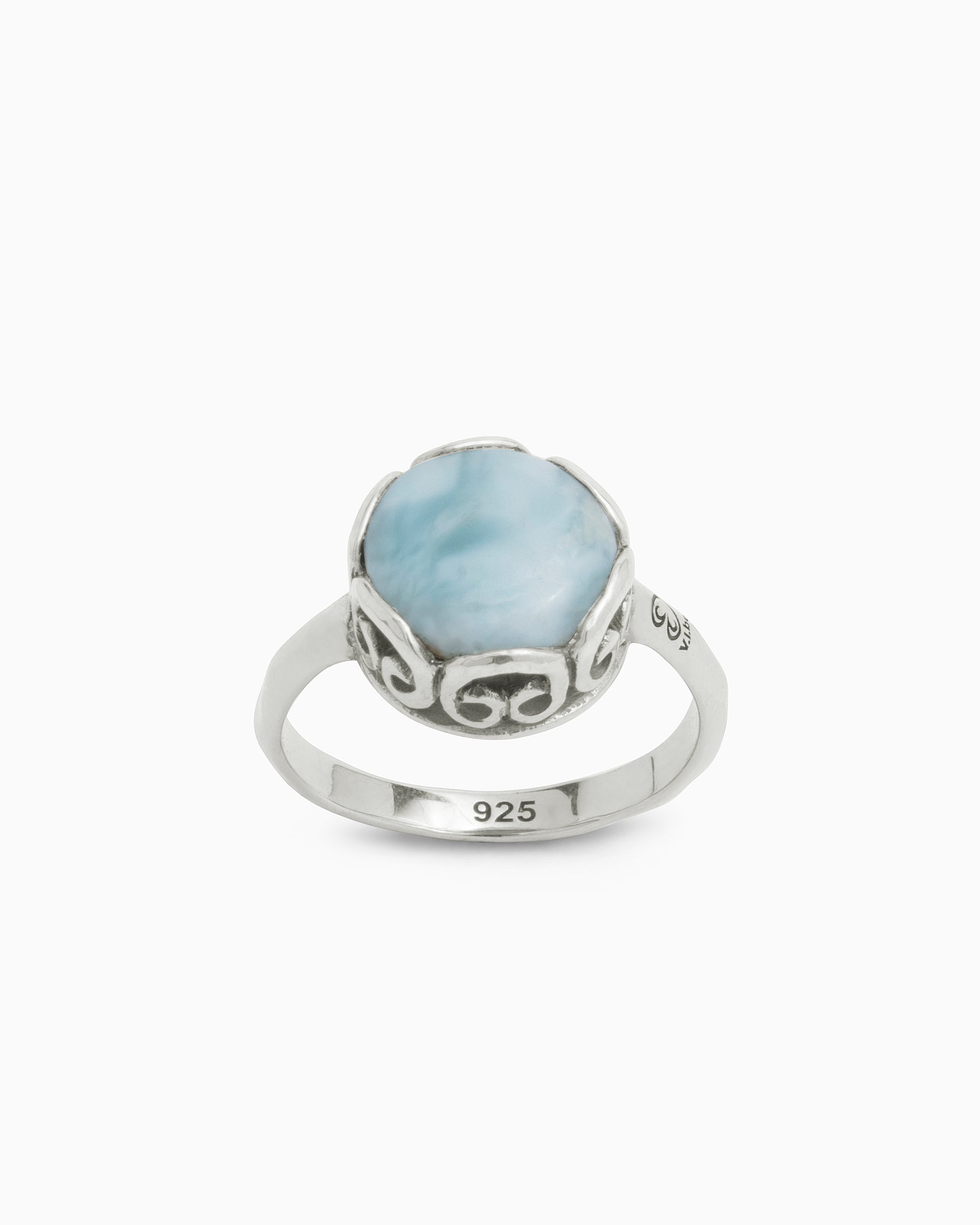 The Princess Petroglyph Stone Ring is a great addition to your jewelry collection. Handcrafted from sterling silver, this ring showcases a faceted round larimar cabochon with intricate petroglyph detailing around its base. Its versatile design allows you to effortlessly pair it with casual everyday outfits or use it as the perfect finishing touch for your night-out ensemble. Pair with the Princess Petroglyph Stone Studs and Pendant to complete the look.