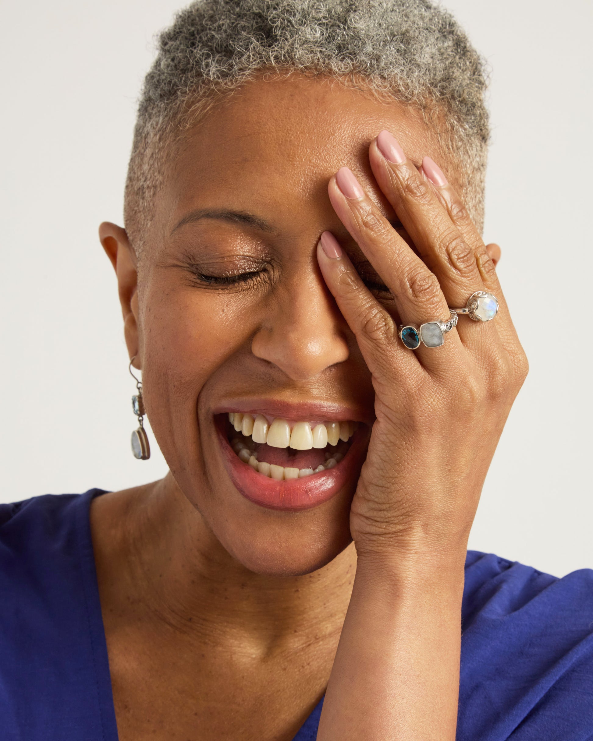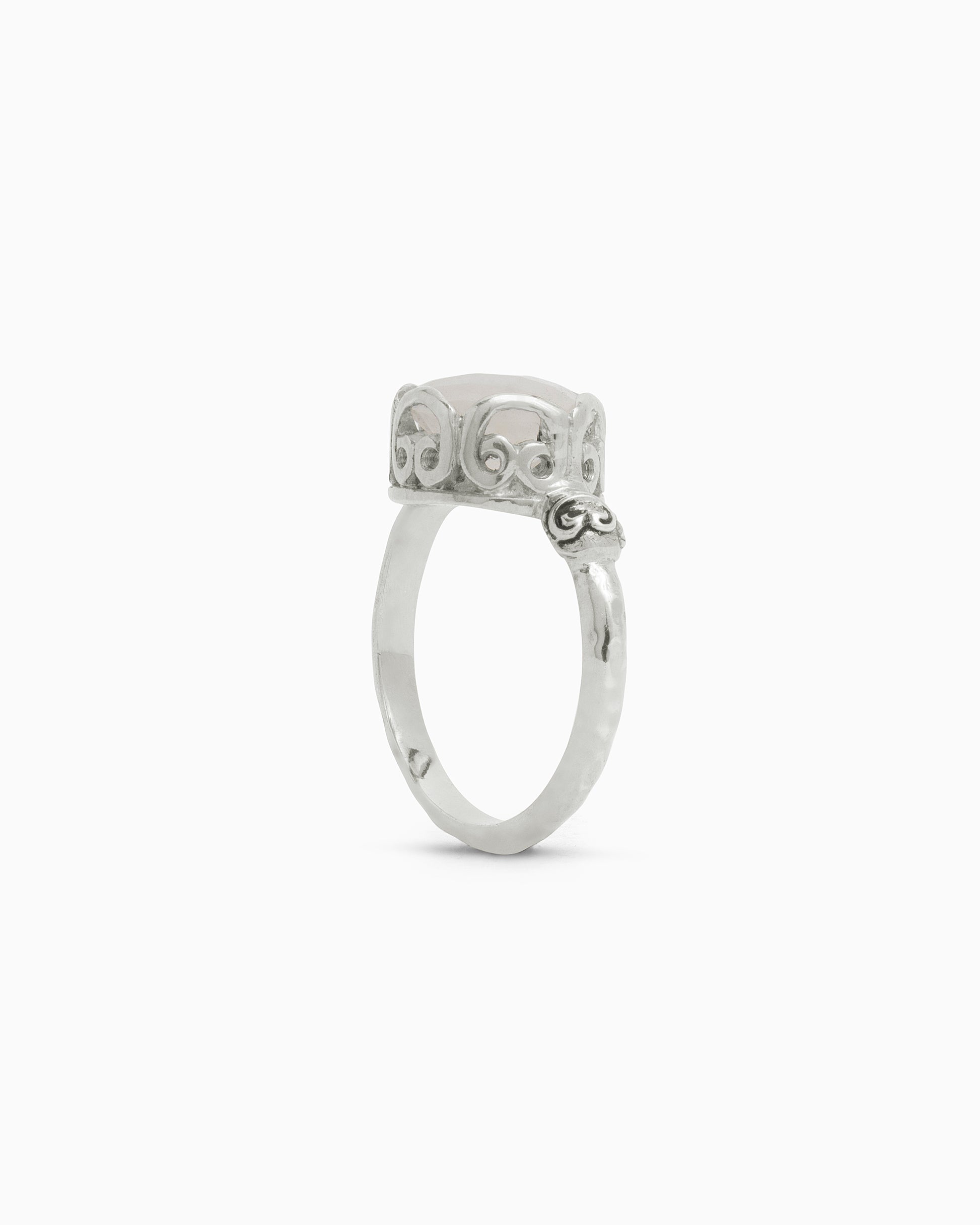 The Princess Petroglyph Stone Ring is a great addition to your jewelry collection. Handcrafted from sterling silver, this ring showcases a faceted round moonstone stone with intricate petroglyph detailing around its base. Its versatile design allows you to effortlessly pair it with casual everyday outfits or use it as the perfect finishing touch for your night-out ensemble. Pair with the Large Princess Petroglyph Stone Studs to complete the look.