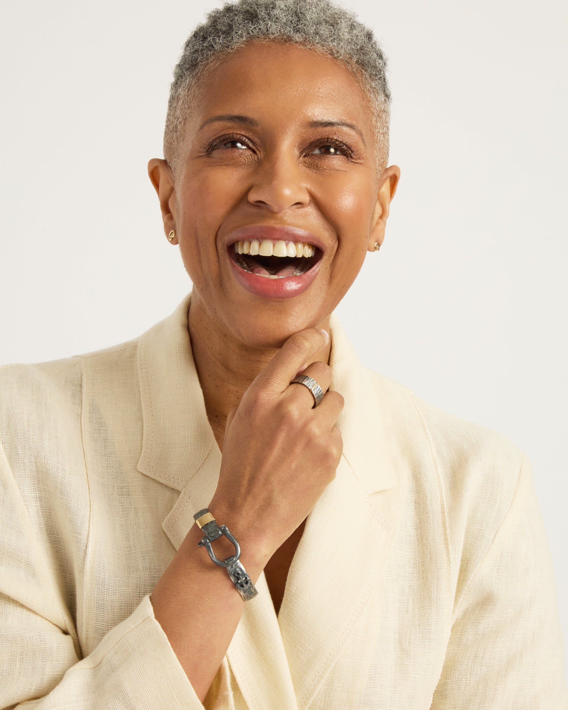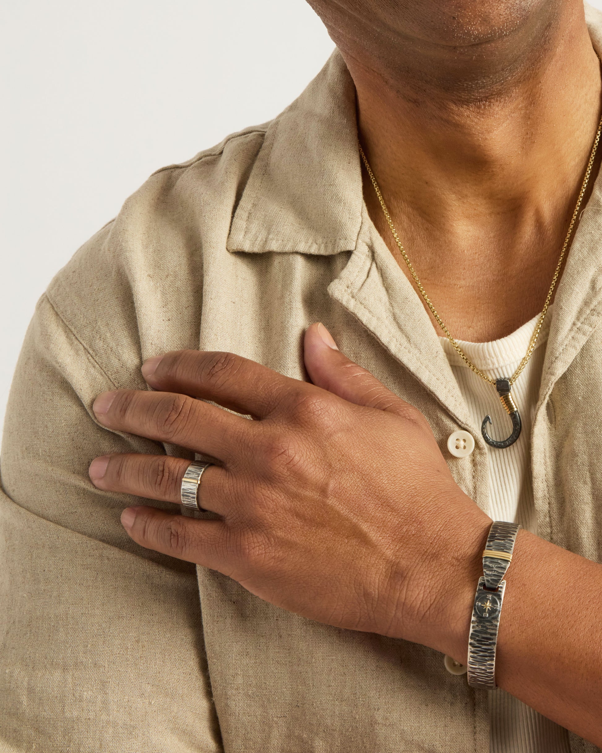 - Metal: Oxidized sterling silver with 14K gold accent