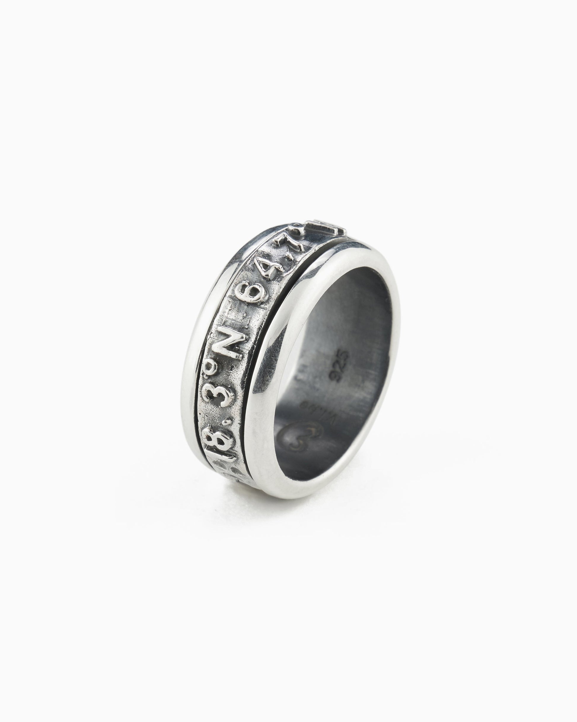 The Spinner Ring with St. John Coordinates is handcrafted from oxidized sterling silver with our exclusive pirate texture and features the St. John island coordinates. This ring is tailored for individuals seeking more than just a statement piece; its spinning feature adds a playful touch to your look, making it a unique choice. With our oxidized finishes, no two are alike! Each original piece is handcrafted by Vibe artisans and markings and shades will vary.