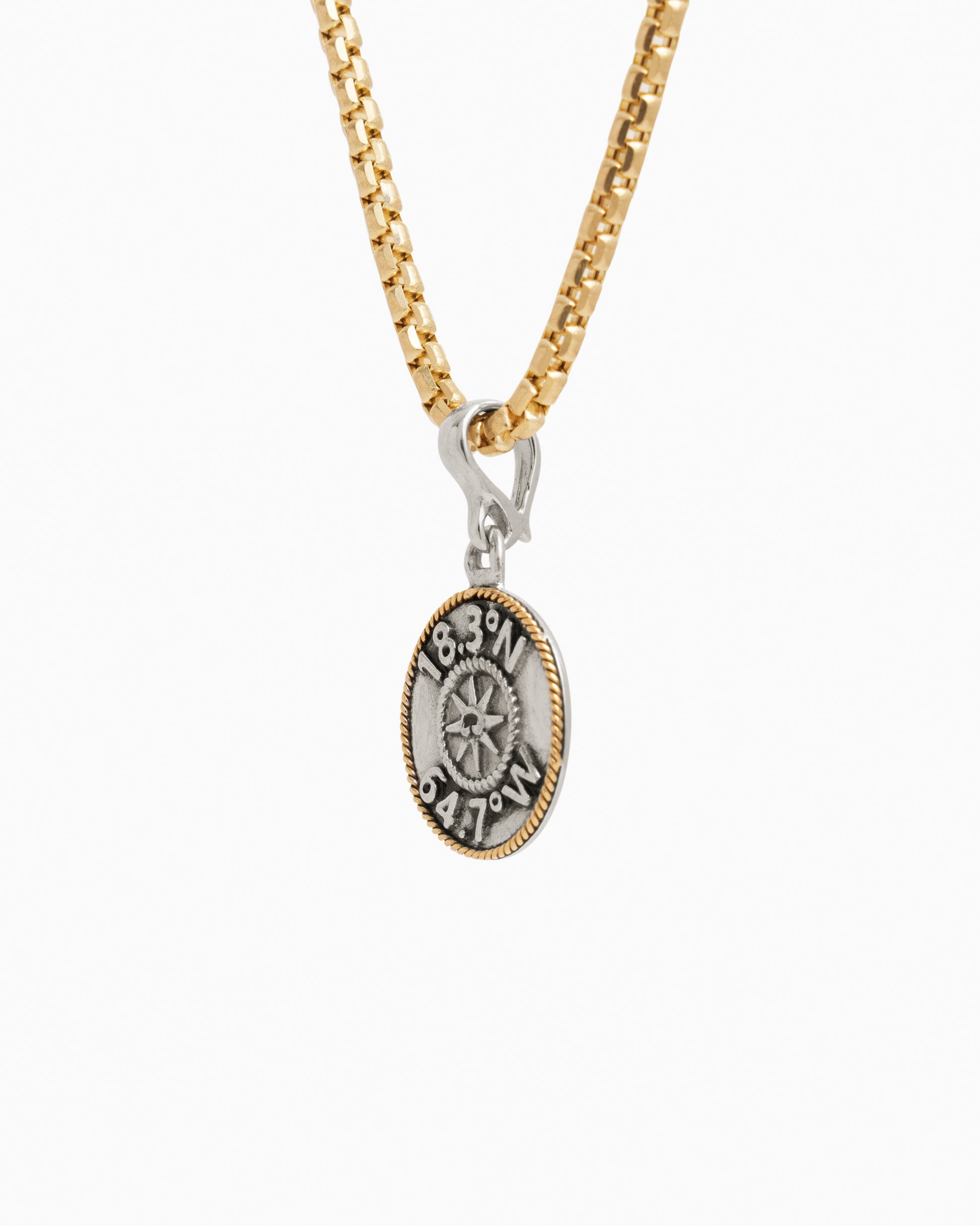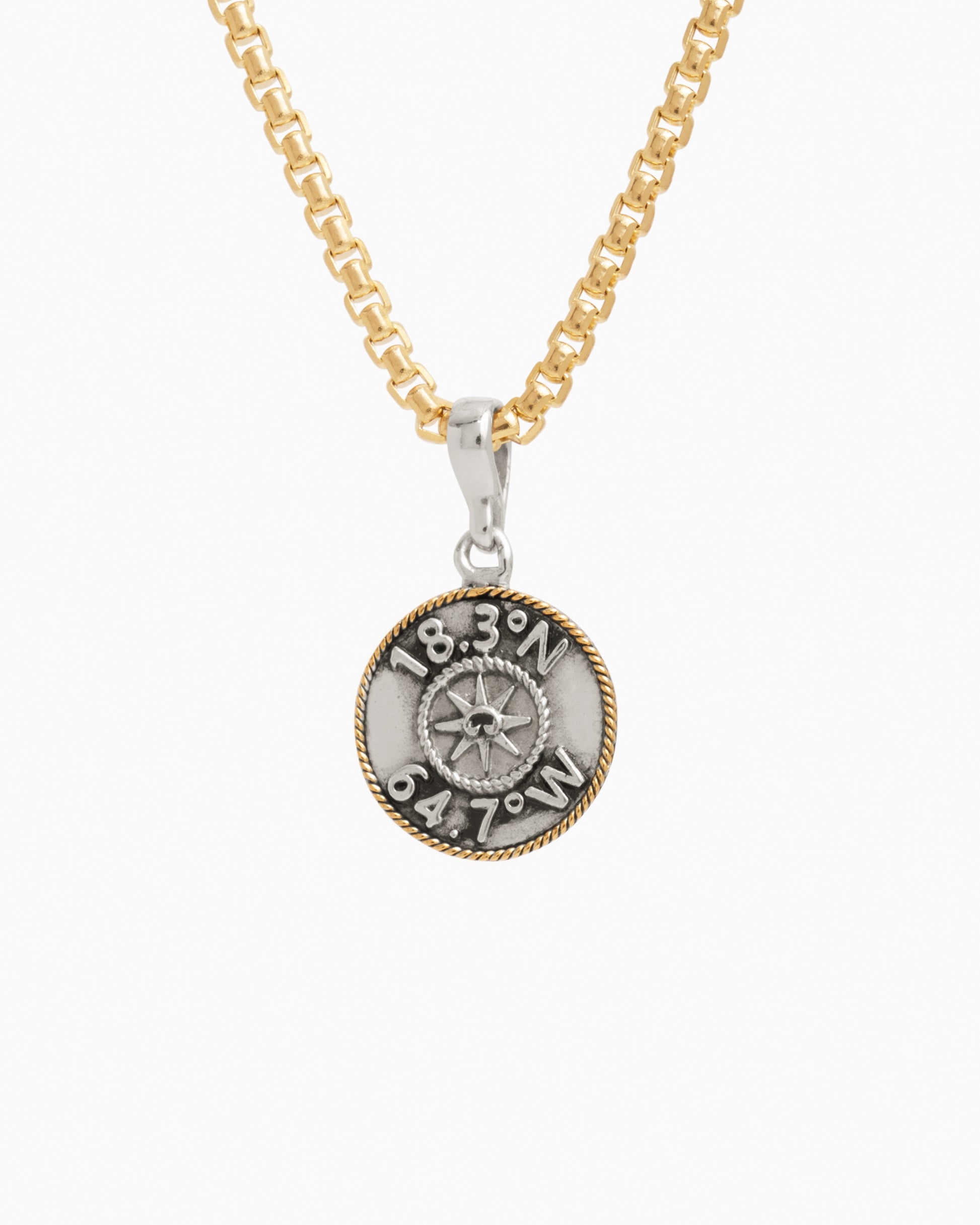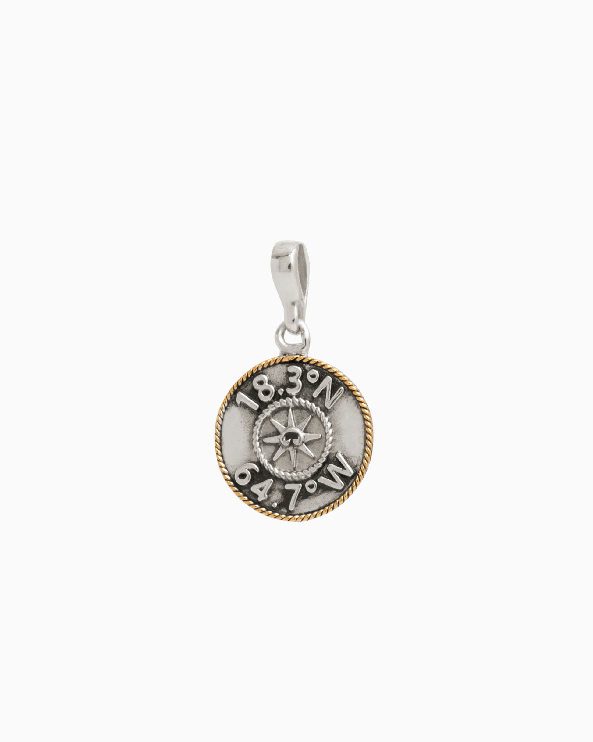 No matter where in the world you find yourself, one look at Vibe's sterling silver St. John Coordinates Medallion Charm and you will find yourself reminiscing about time spent on St. John. From the replica of the iconic petroglyph in the center to the St. John coordinates, this medallion brings big memories in a small design. Pair with your favorite hook bracelet or dainty chain, sold separately.
