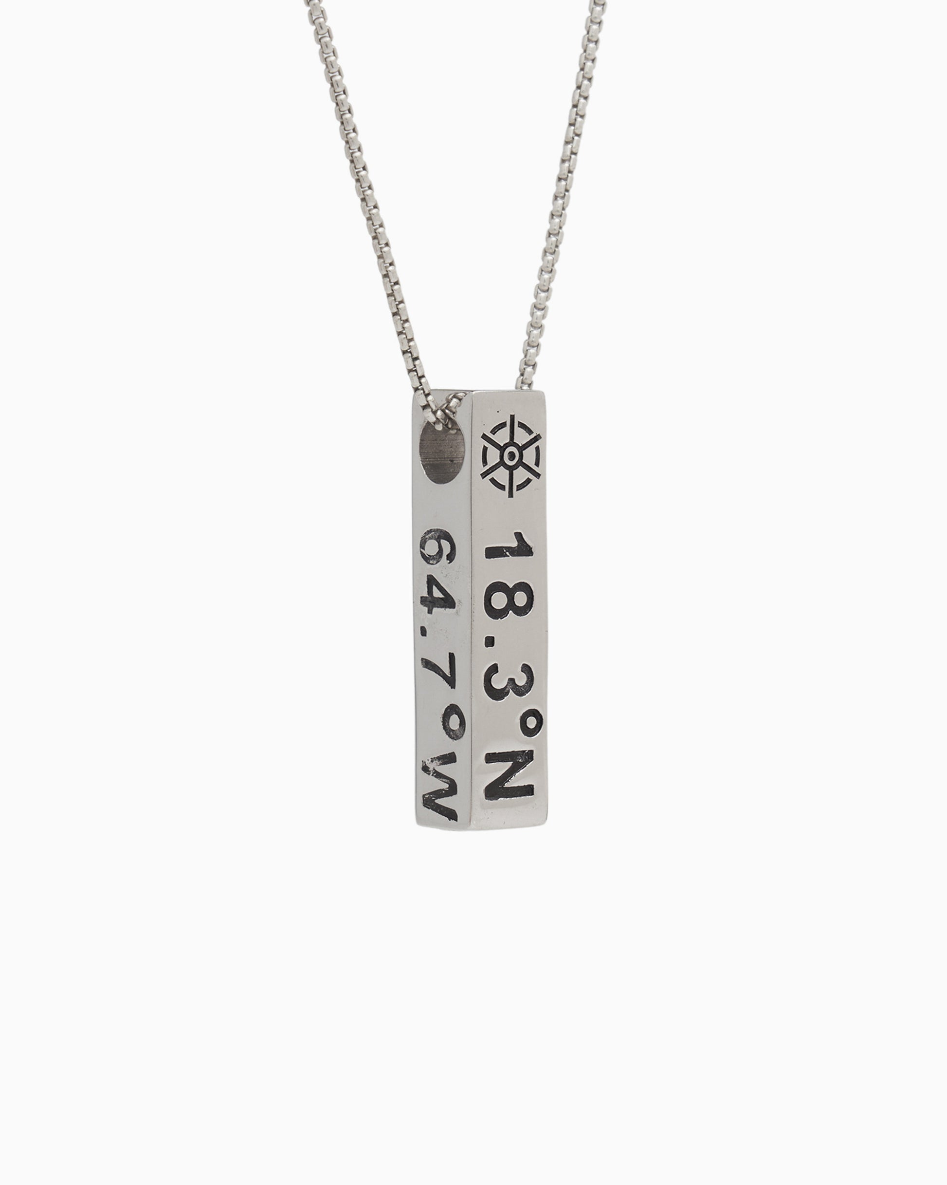 Rediscover your blissful retreat with the St. John Coordinates Pendant. Featuring the St. John coordinates and handcrafted in gently hammered sterling silver. Pair with your favorite chain, sold separately.