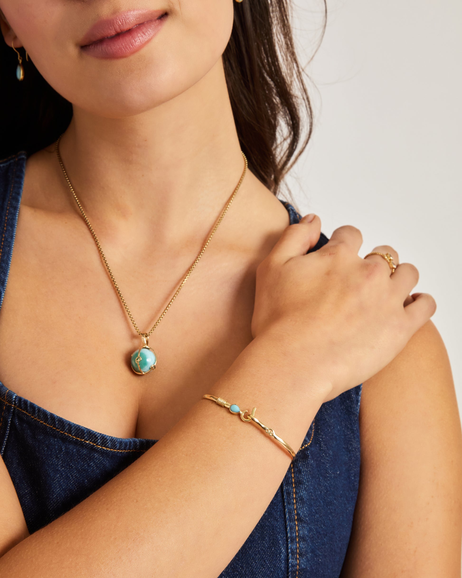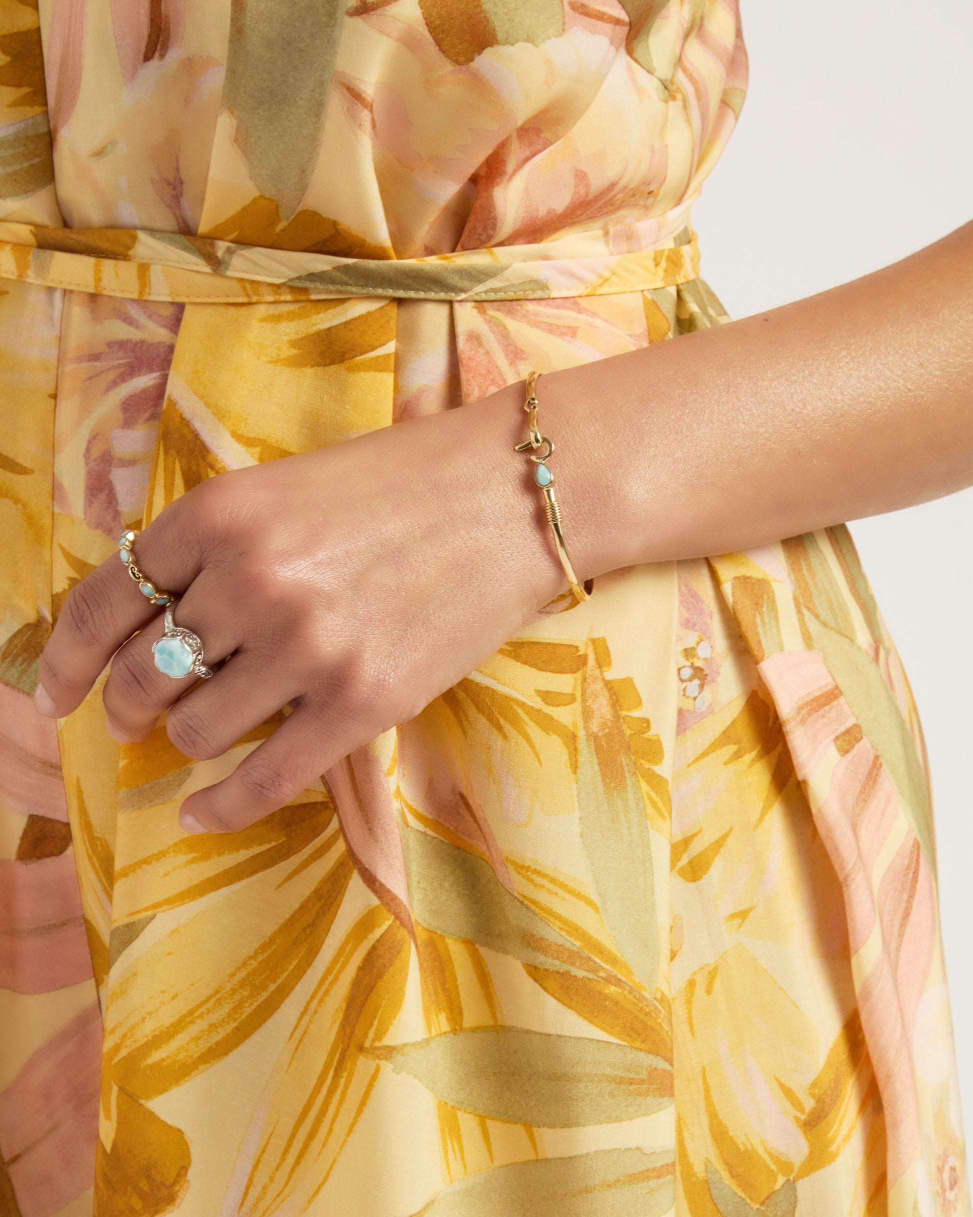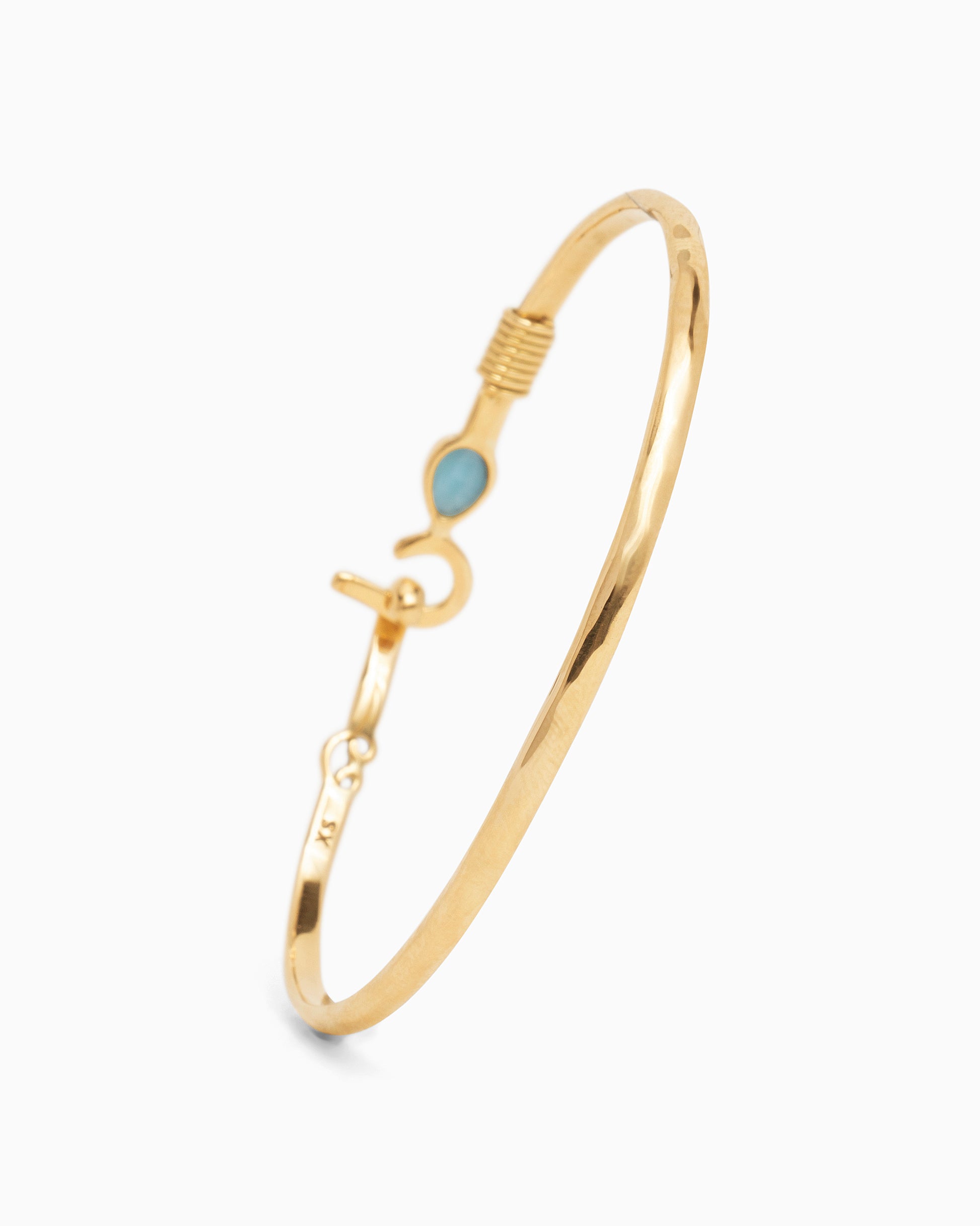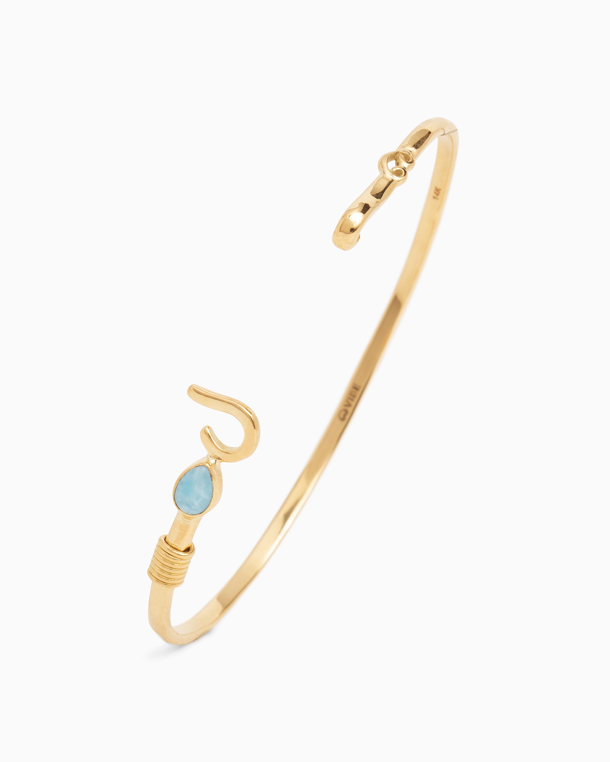 A Vibe signature, the St. John Hook Bracelet is fashioned in gently hammered 14K solid gold with a pear-shaped larimar cabochon and 14K gold "J" hook clasp.