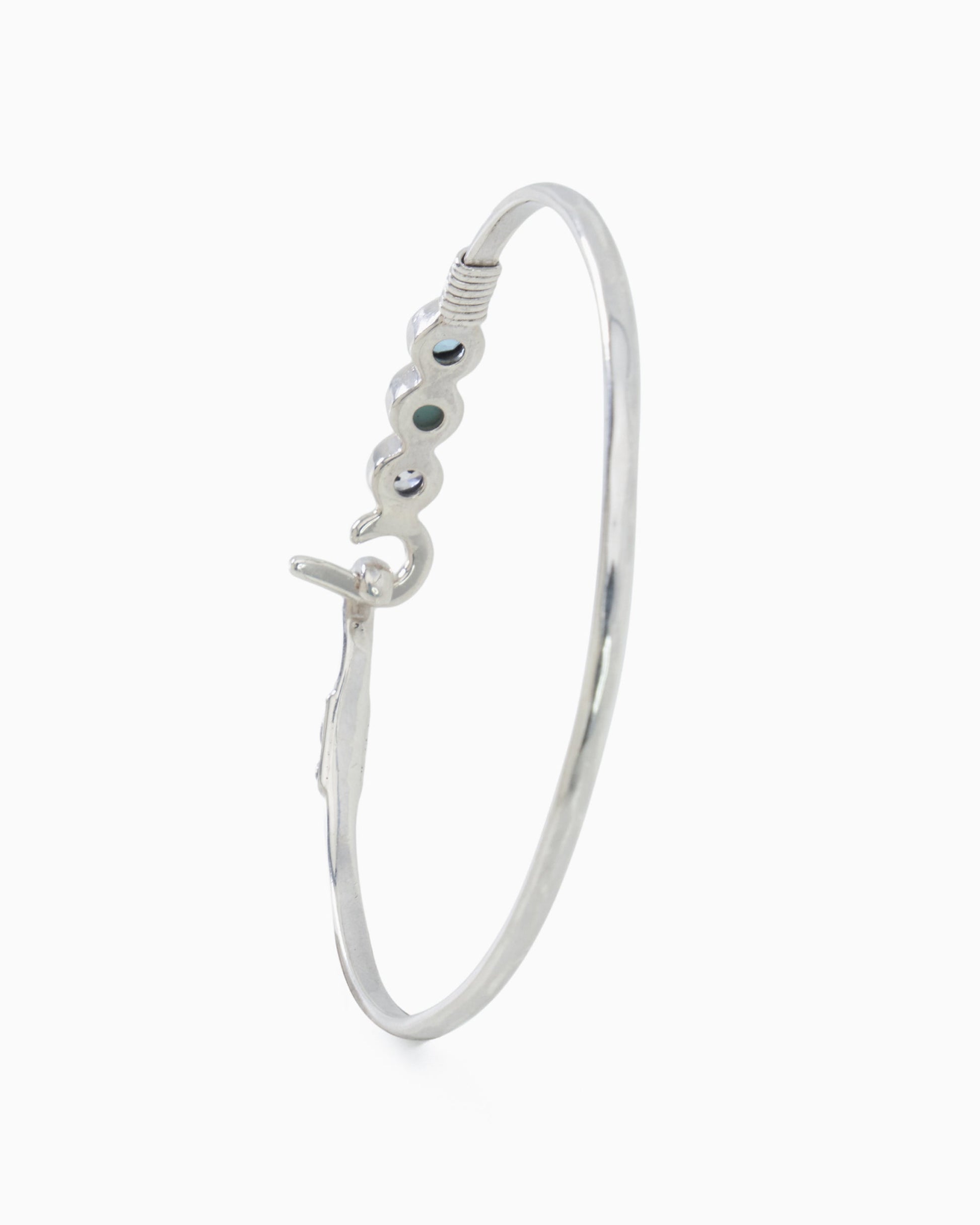 A Vibe signature, the St. John Hook Bracelet with Triple Stones is fashioned in gently hammered sterling silver with three faceted stones and a "J" hook clasp to honor the island of St. John. Each stone is a tribute to one of the three iconic U.S. Virgin Islands: St. John, St. Thomas, and St. Croix. Featuring a replica of the St. John petroglyph and seven good luck wraps, solo or stacked, it is sure to be a favorite piece. Found in many of our designs, Vibe’s seven good luck wraps represent love, laughter, happiness, good fortune, health, unity, and peace. In the Caribbean tradition, wear your hook facing in to keep love close to your heart, and facing out if you are open to a new love in your life. Wear this piece on its own or stack it with other bracelets for a layered look.