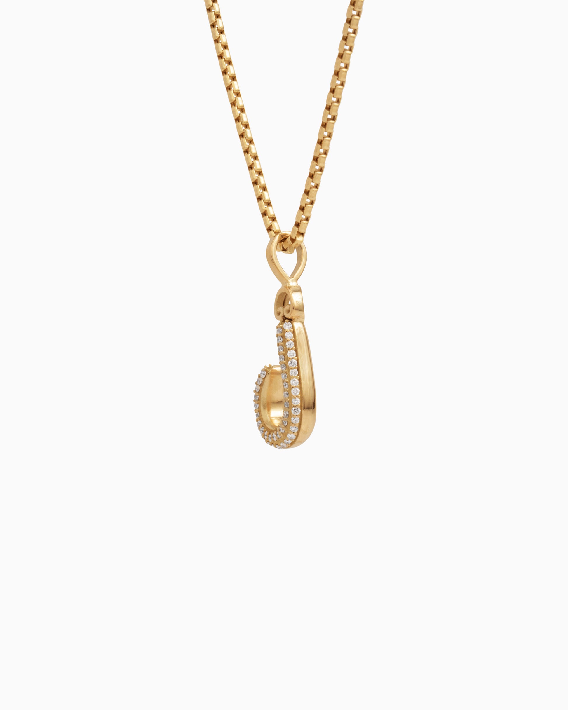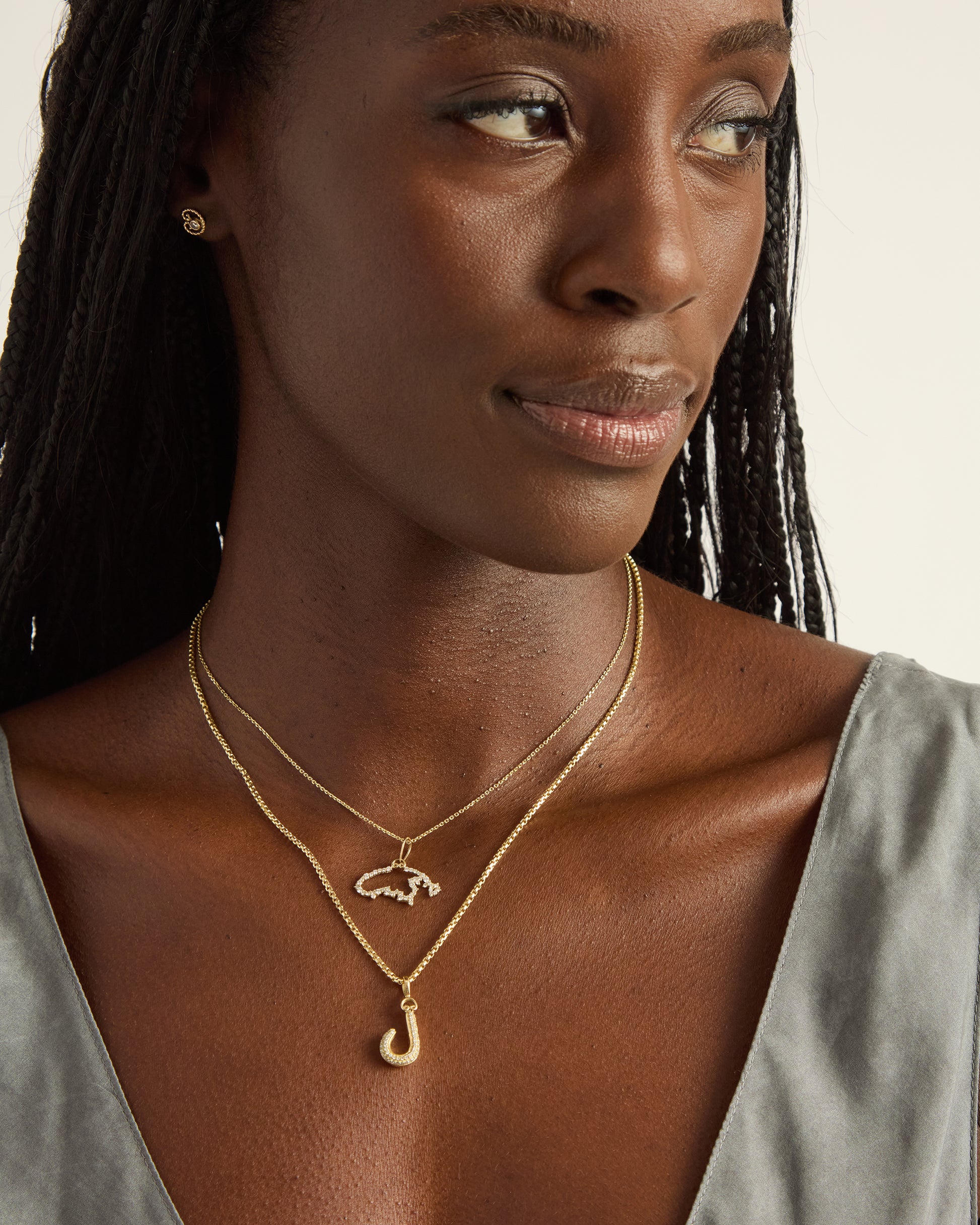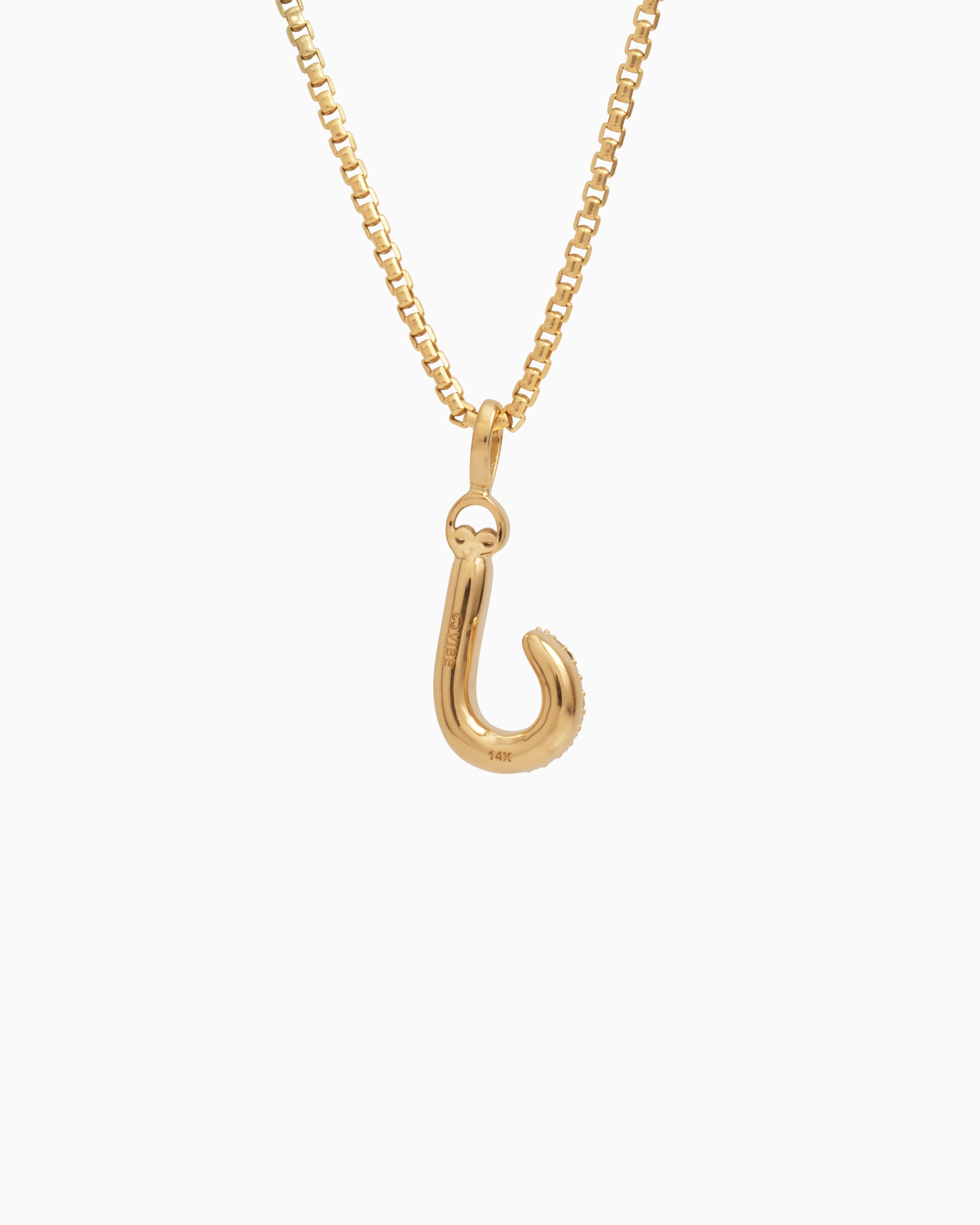 The St. John Hook Pendant with Diamonds is crafted in solid 14K gold, featuring our signature “J” hook design to honor the island of St. John, fully set with pavé diamonds for a striking combination of brilliance and symbolism. A petroglyph detail at the top adds a meaningful Vibe touch. Pair with your favorite Vibe chain, sold separately.