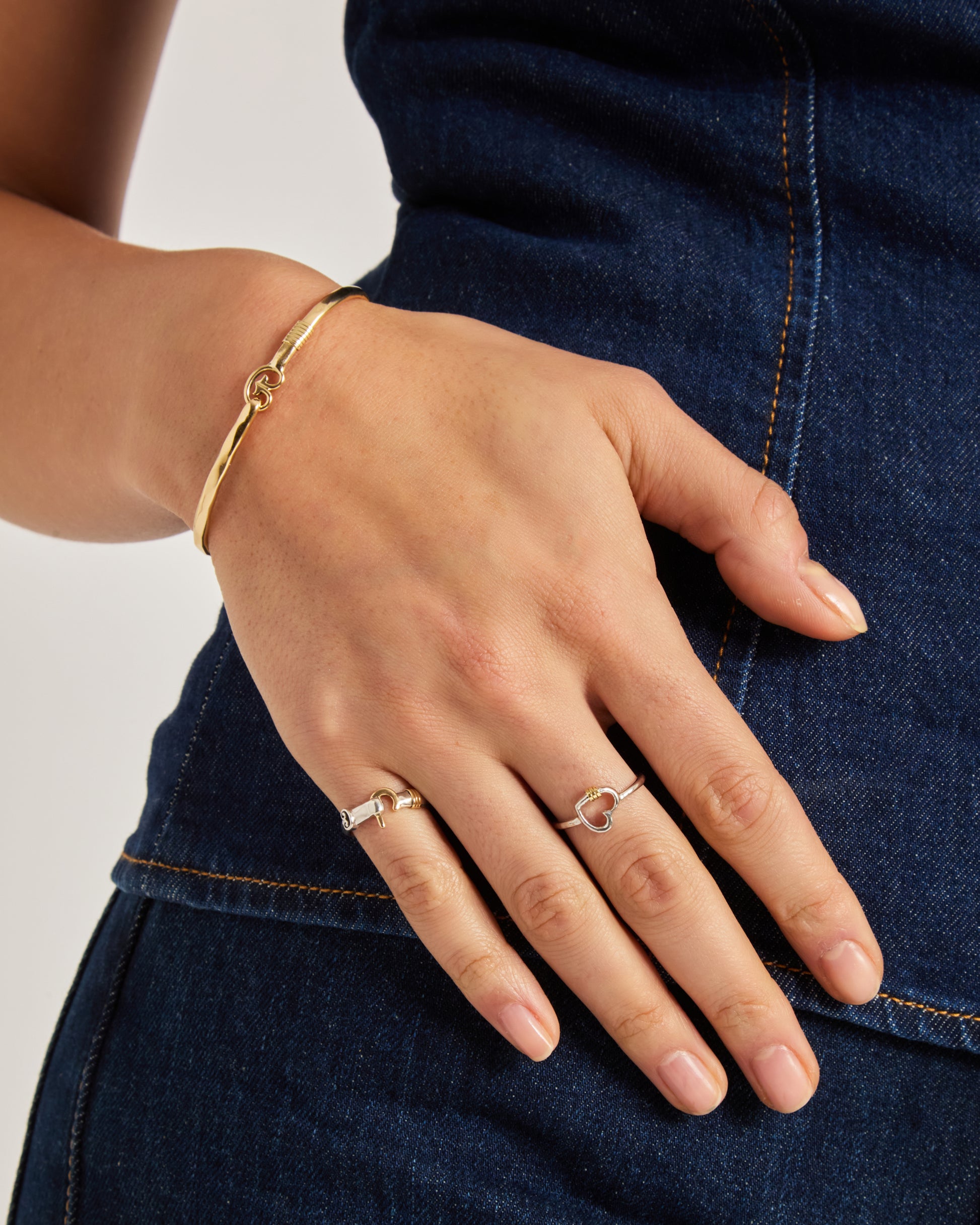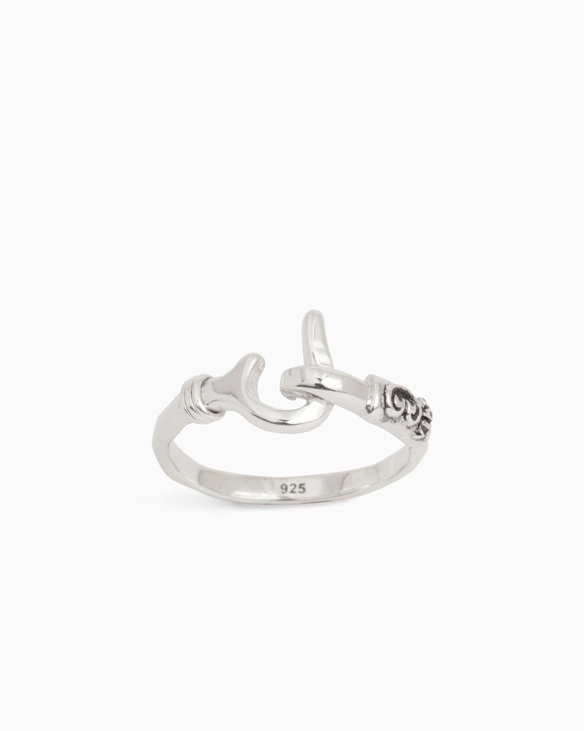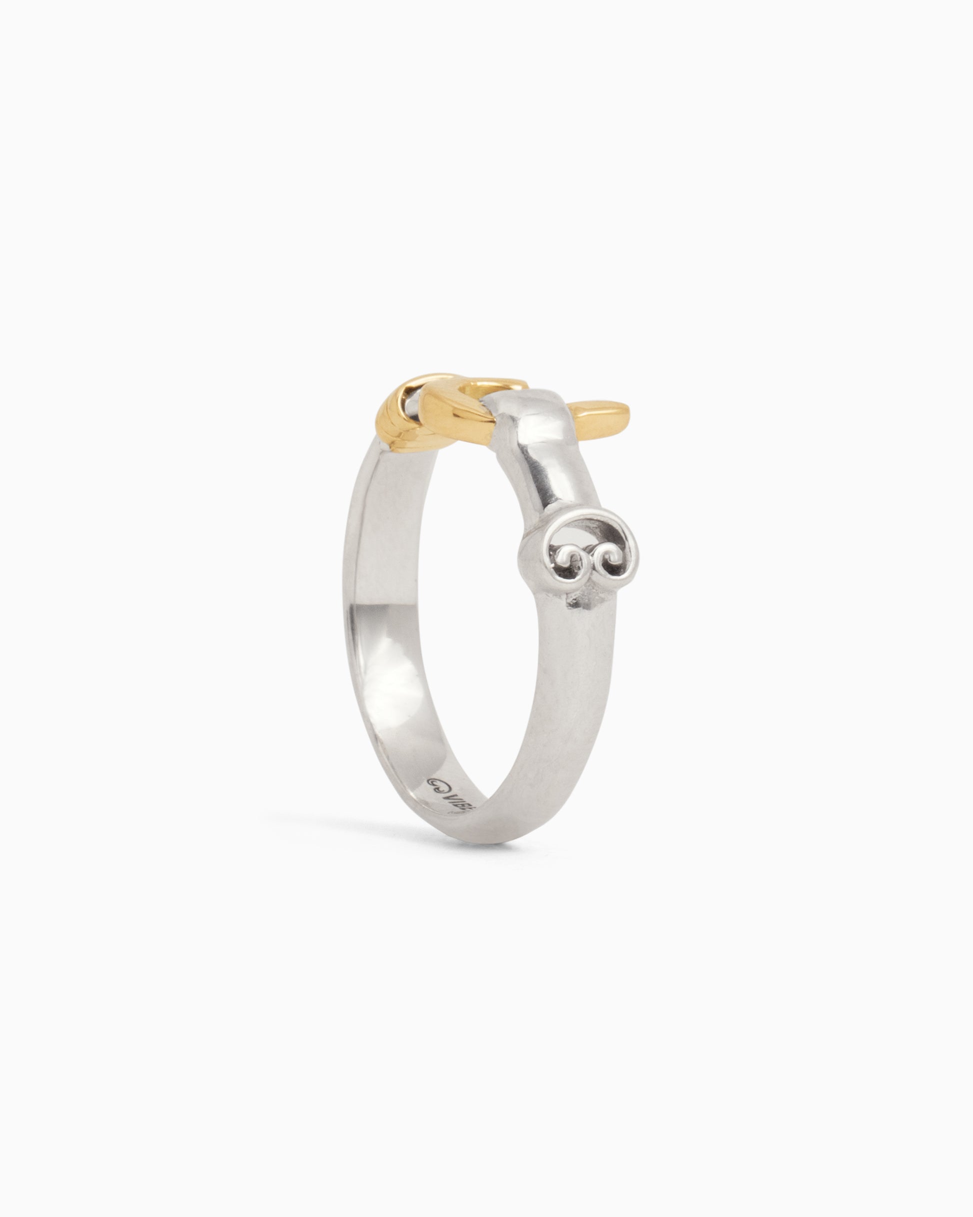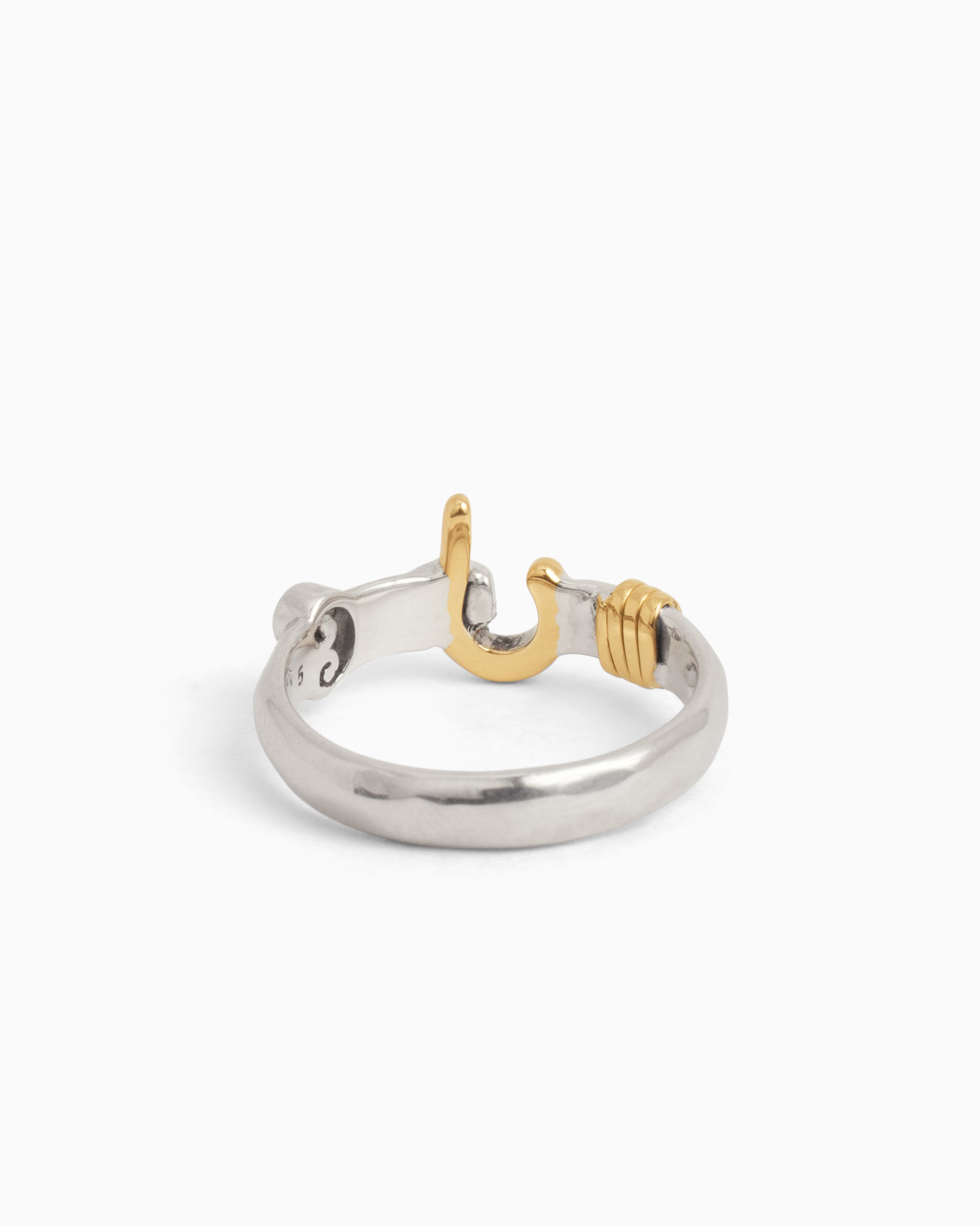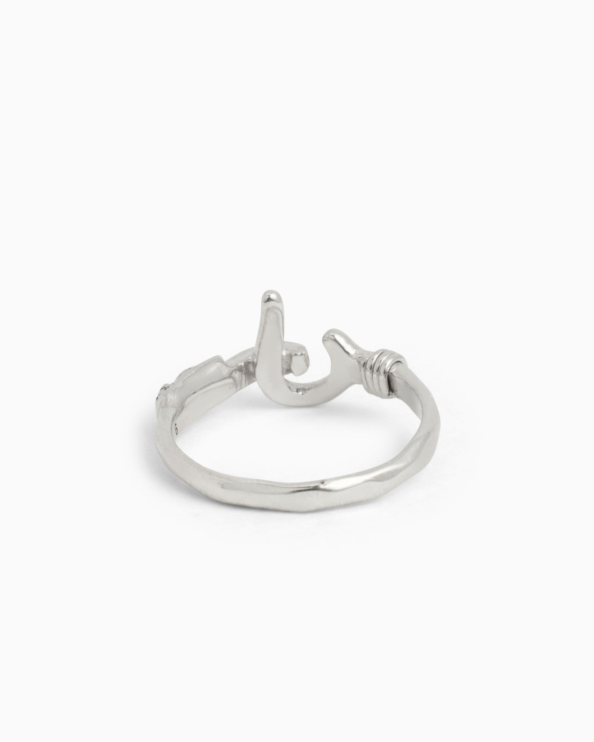 A Vibe signature, the St. John Hook Ring is handcrafted in gently hammered sterling silver and showcases a captivating larimar cabochon, a distinctive "J" hook, and a replica of the St. John petroglyph. Its three good luck wraps serve as positive affirmations to draw into your life, such as health, happiness, and prosperity. In Caribbean tradition, wear the hook inward to keep love close, or outward to attract new love.