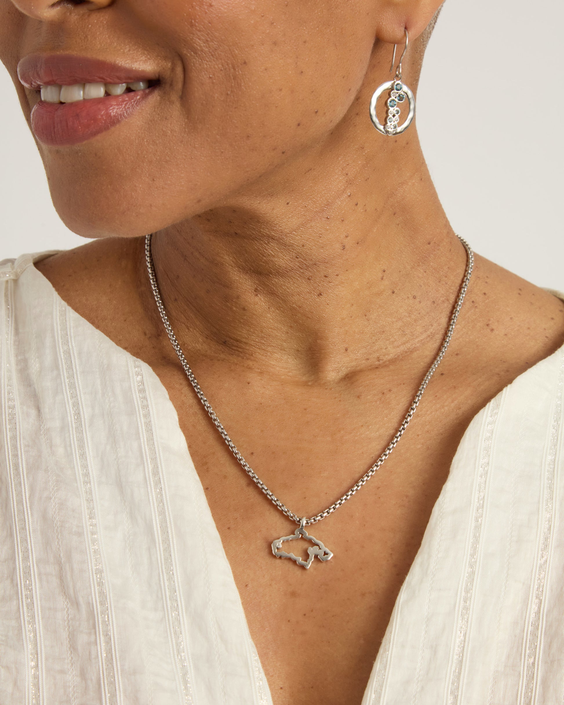 Bring the island wherever you go with our St. John Map Pendant, a piece handcrafted from sterling silver. This pendant features a thick outline of St. John, with a faceted diamond at the heart of Cruz Bay, a beloved island destination. Let this pendant serve as a reminder to chart your own path and be inspired by the allure of exploration. Pair with your favorite chain, sold separately.