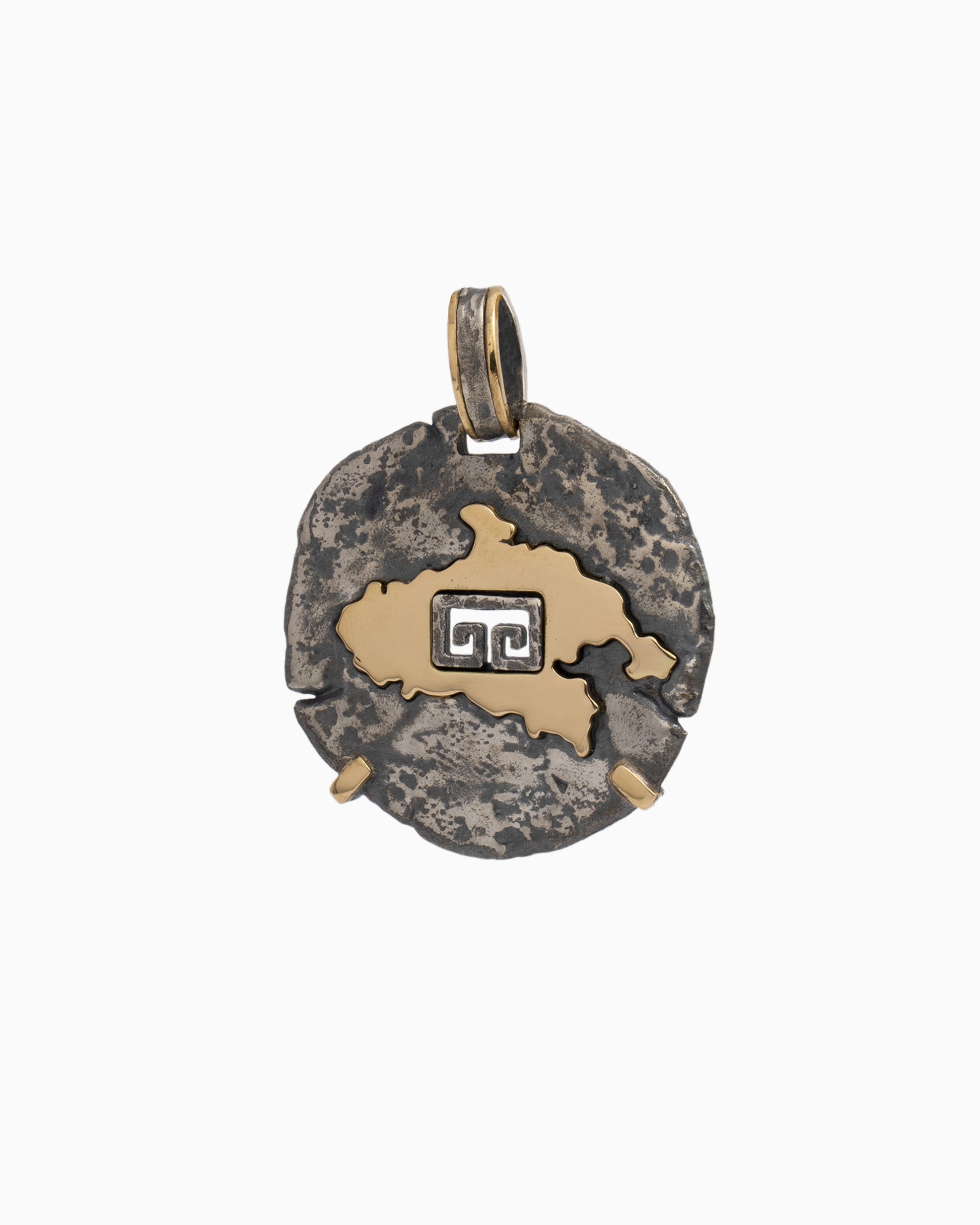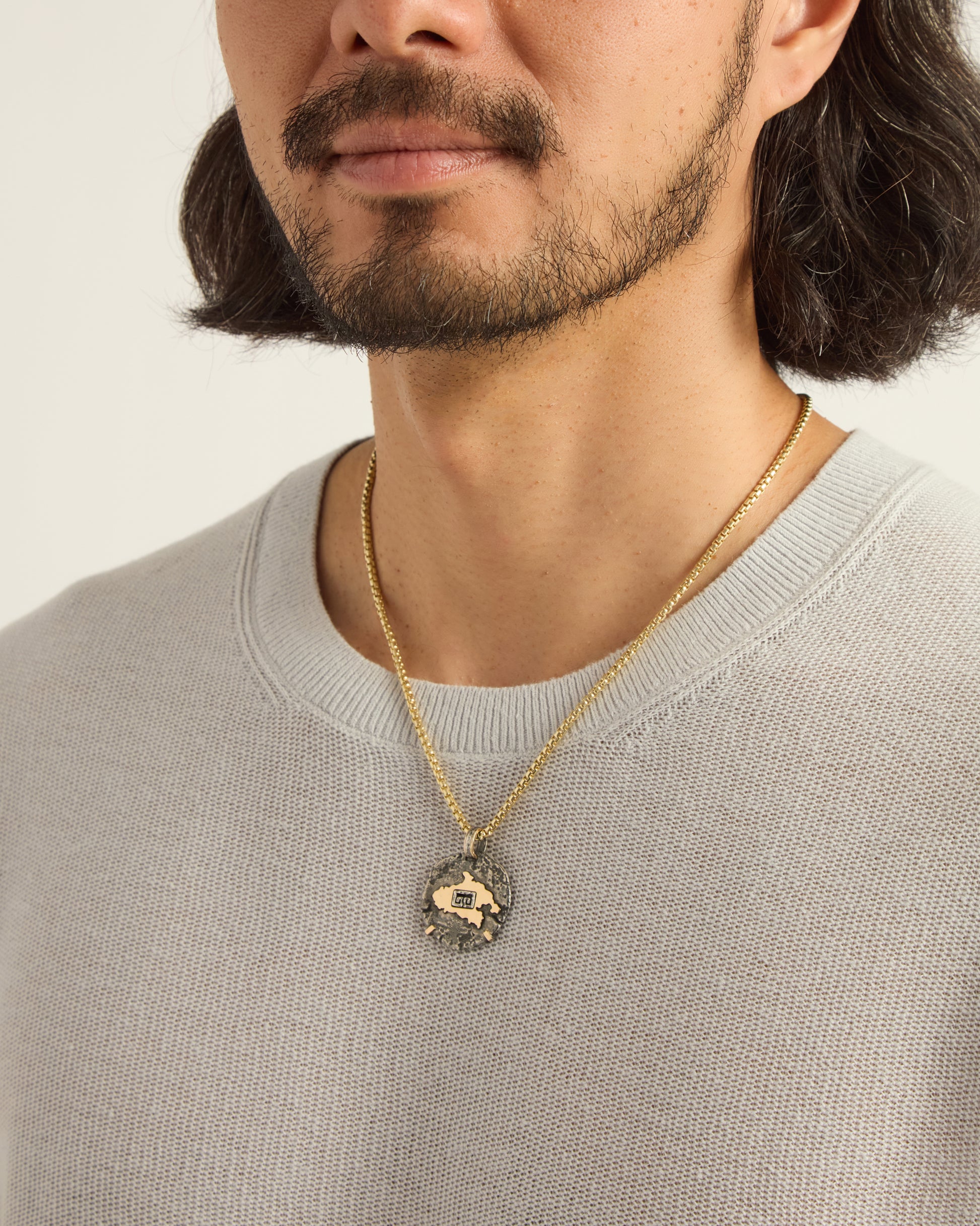 A tribute to the island’s rich history and the people who have inhabited it, the St. John Treasure Coin Pendant is crafted in oxidized sterling silver with a timeworn, antique-style texture that evokes the look of an old-world coin. A solid 14K gold silhouette of St. John is layered on top, featuring a petroglyph detail at the center as a nod to the island’s cultural roots.